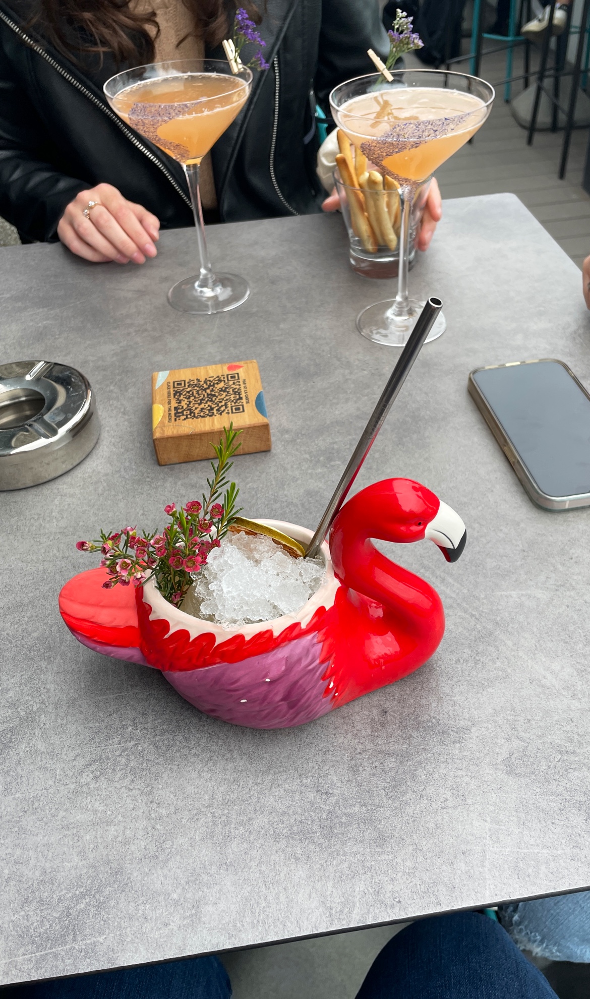 Lieu sympa pour prendre un verre, Cocktail assez spéciale çà dépend des goûts, tapas à partager. Belle vue, personnel sympathique. Pas de boisson chaudes.
