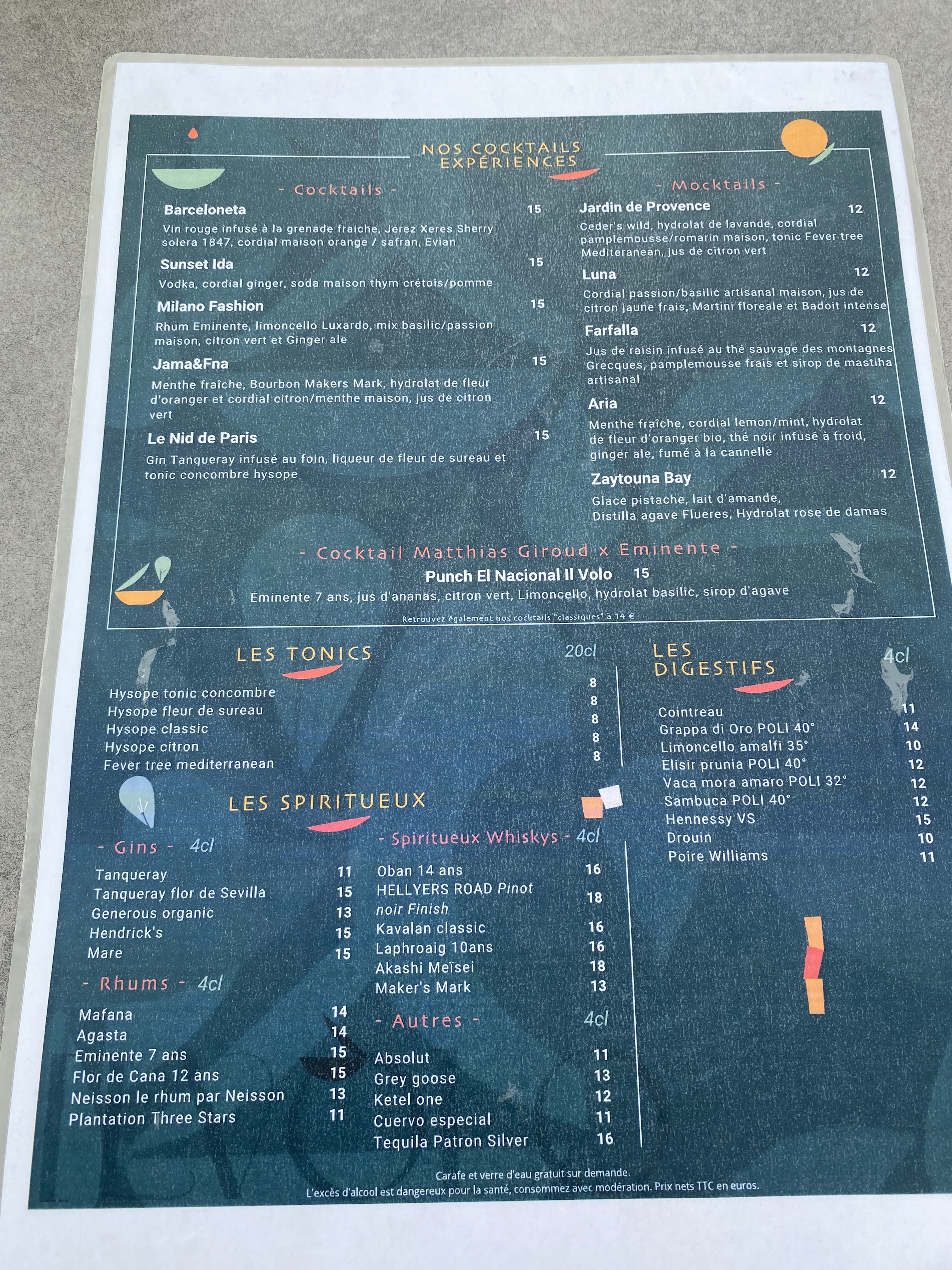 Cocktails délicieux, petit + pour les cocktails sans alcool ! Le jardin de Provence était vraiment délicieux, hâte de revenir !!