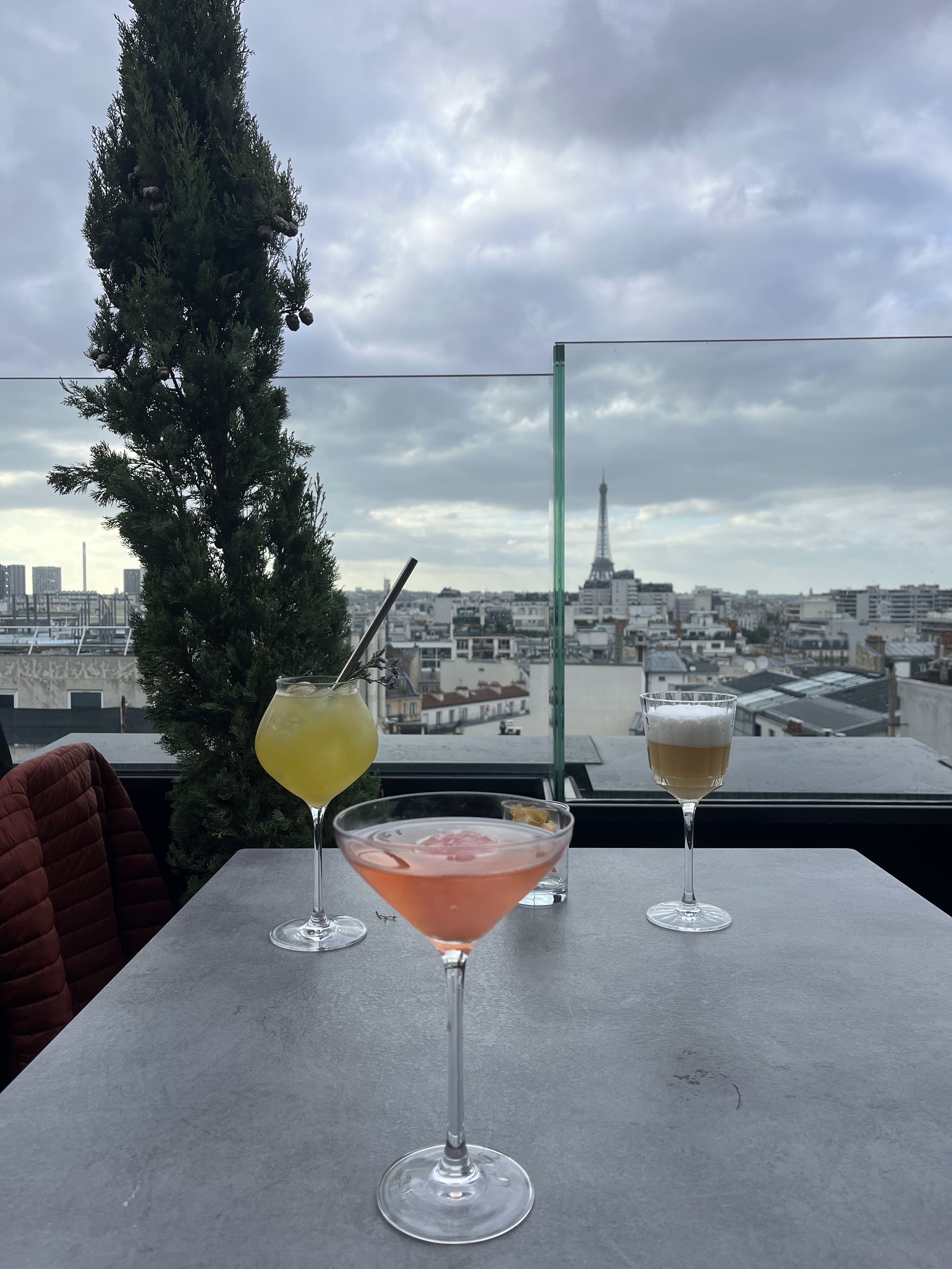 Excellent cocktail. Très bien dosé. Très originaux. Pour le décor, une vue magnifique sur les toits de Paris et la tour Eiffel..Très Emily in Paris.