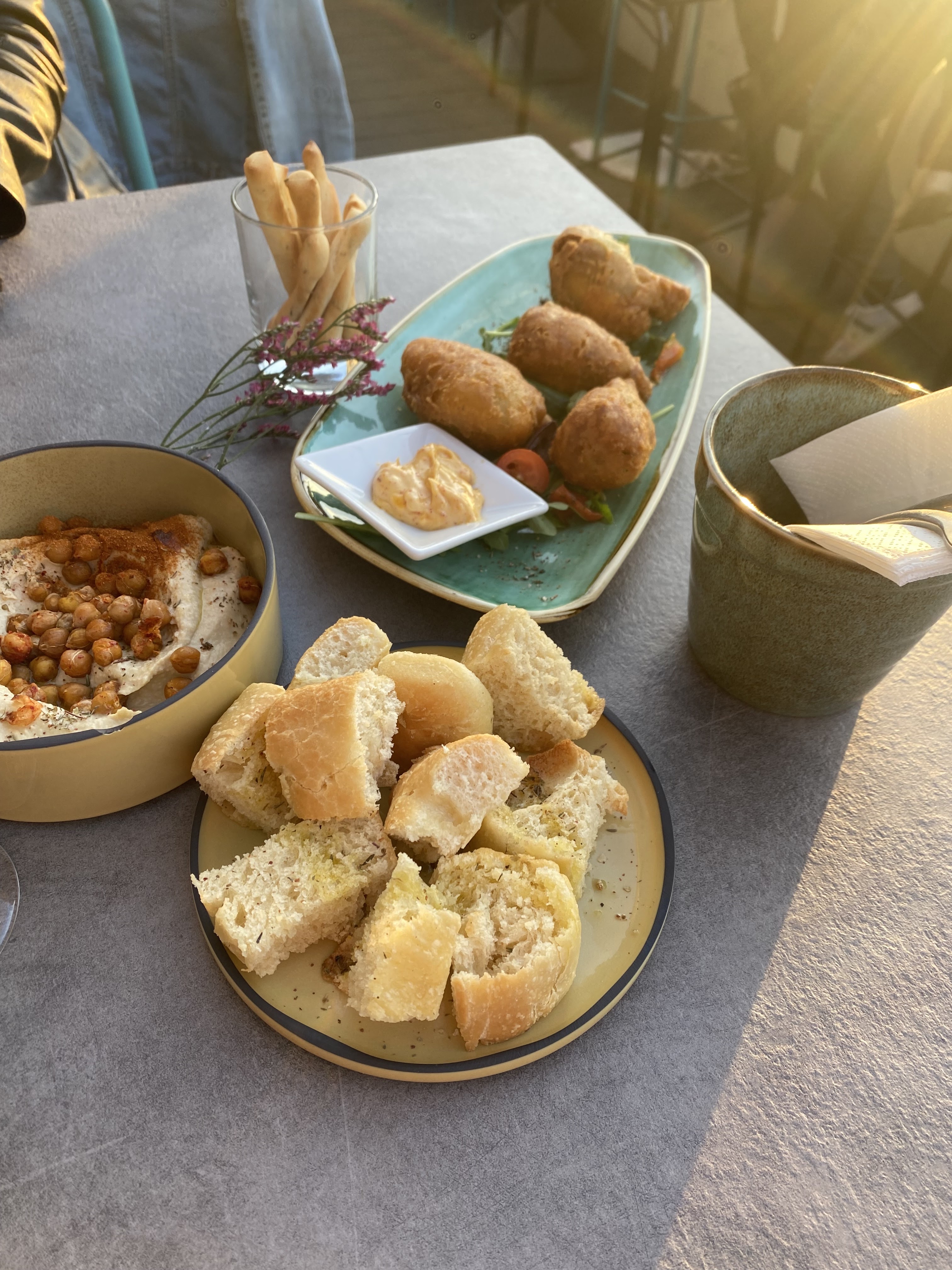 Super roof top, j'ai adoré l'ensemble, la déco, la vue, le personnel. pas beaucou de choix de plats mais la qualité au top. Le houmous est a tomber ! petit hic, la foccacia n'en était pas une, enfin sauf dans le 1er plat, ensuite on nous a mis du pain normal.