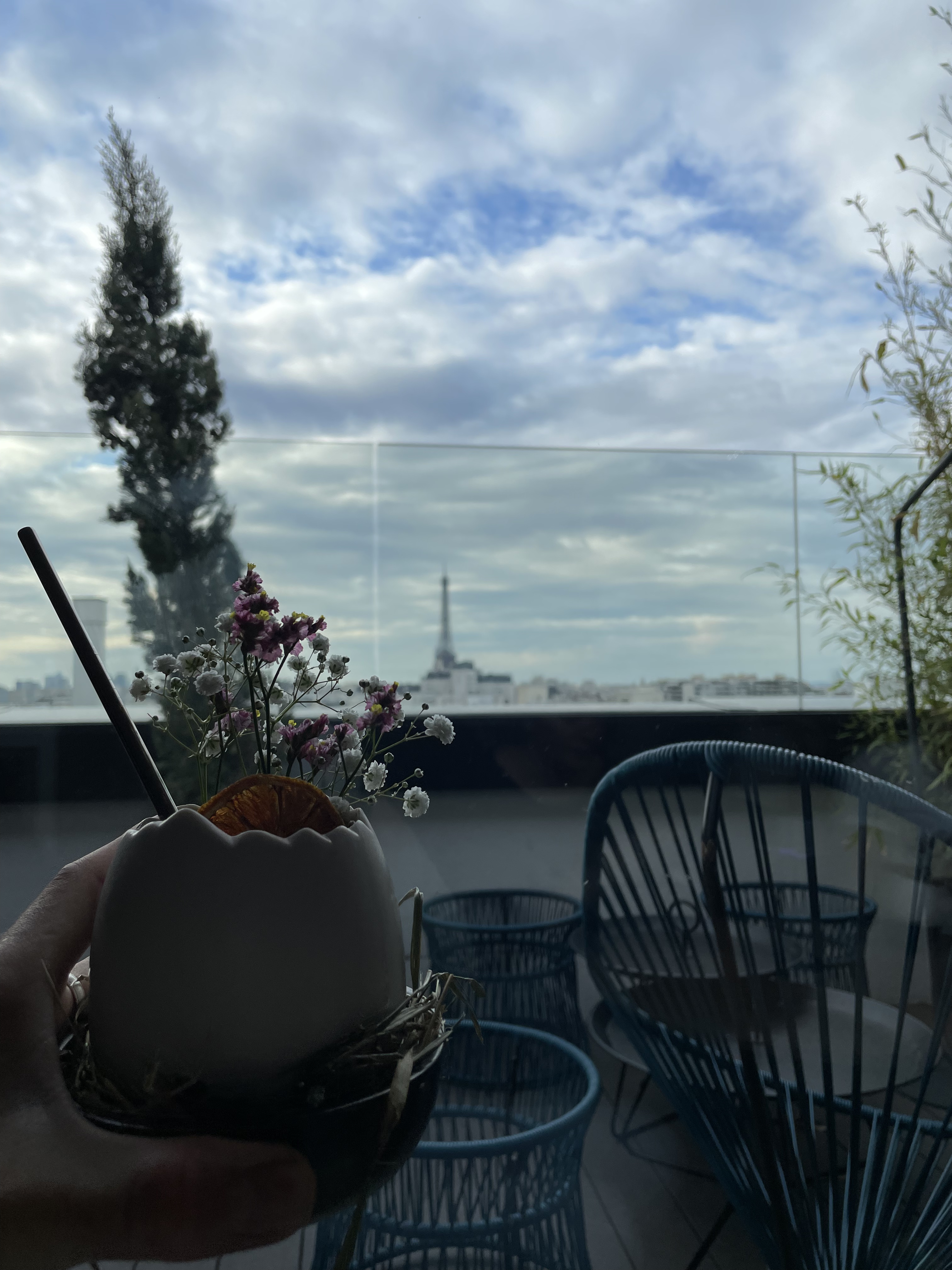L’endroit est super beau et propre avec une belle vue sur la Tour Eiffel ! Les cocktails sont bons et joliment servis mais pas non plus exceptionnels je trouve (11€ sans alcool et 14€ avec). L’accueil et la gentillesse des serveurs étaient agréables :)