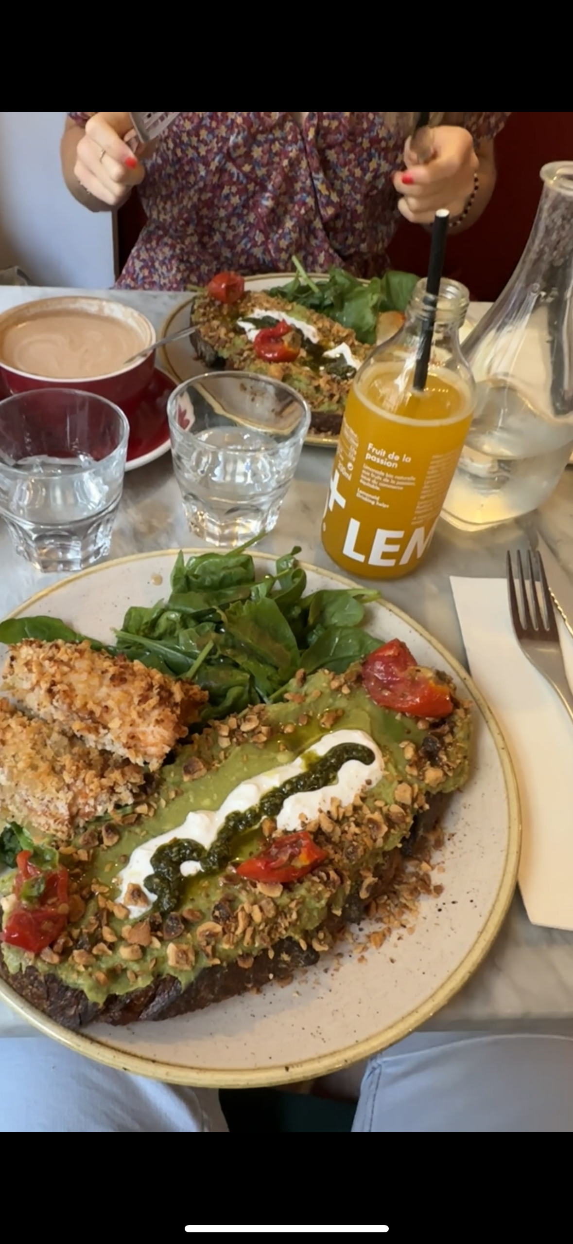 Tout simplement incroyable ! Je n'ai jamais mangé un aussi bon brunch ! Il y a beaucoup de choix, les plats sont travaillés et originaux, vraiment une bonne découverte. J'ai hâte d'y retourner pour gouter tous les autres plats de la carte ! L'avocado toast est juste magnifique en bouche, avec les noisettes torréfies, la stracciatella, les tomates confites et les épices... Sans oublier la déco qui est très belle, tout est dans le détail entre les plats et le lieu, je recommande à 100%, un des meilleurs brunch de Paris ! Comme pour toutes les super adresses, il vaut mieux arriver à l'ouverture car la salle est petite !