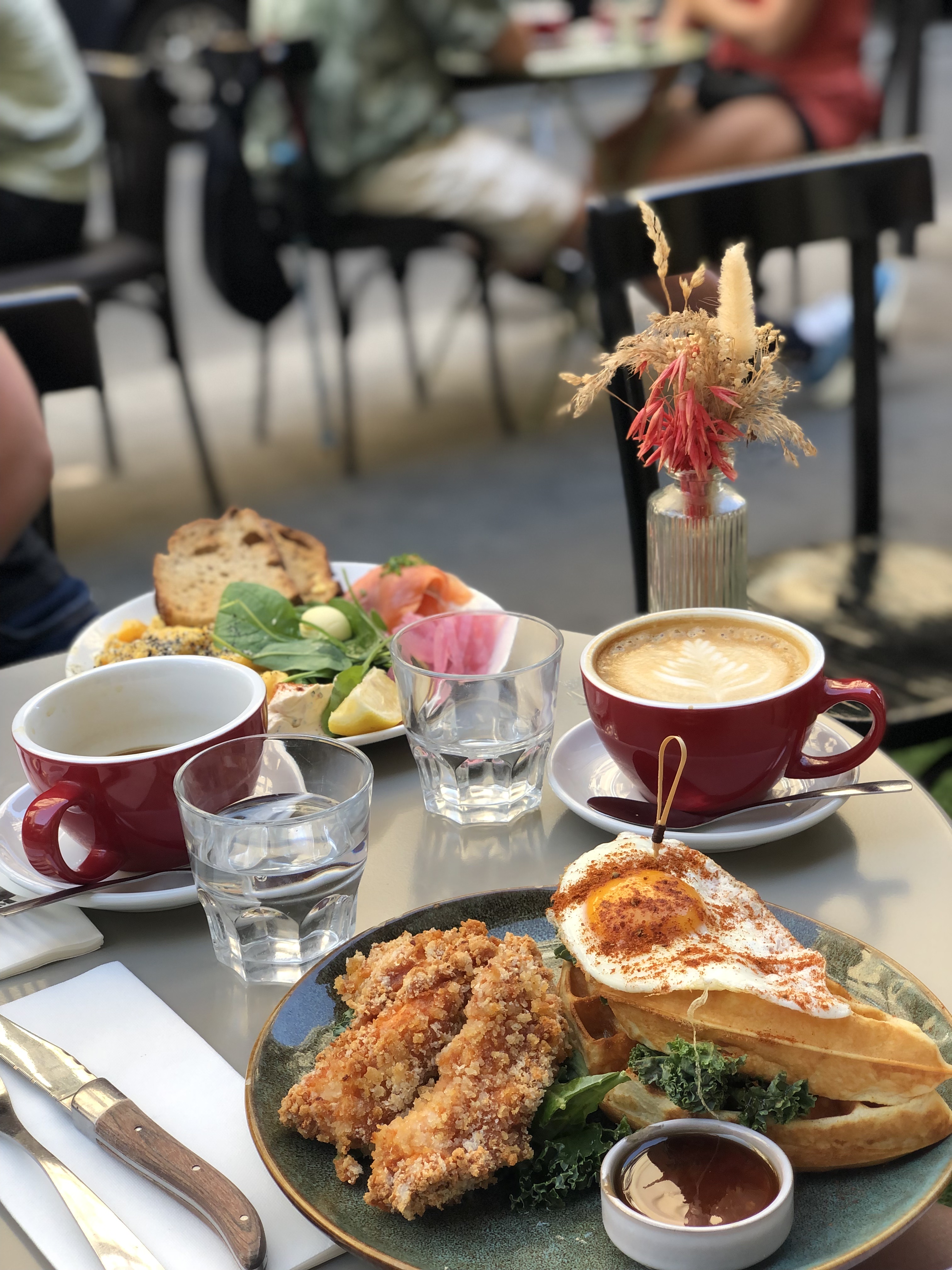 Restaurant spécialisé dans le brunch. Nous avons eu de la chance d'être installés en terrasse car l'intérieur était bruyant. Le système de la file d'attente virtuelle est un peu stressant car on ne sait pas le temps d'attente estimé. A éviter si on est plusieurs ou alors il faut que le groupe soit déjà formé et se balade dans les environs en attendant son tour. A titre d'infos on était 18ème à l'inscriptipn dans la file et on a eu une table en 40min. Côté nourriture les plats sont copieux et très bien présentés. Pour un brunch complet (sucré, sucré et boissons) il faut bien compter 30€. Je n'ai pas été conquise par les gaufres au chocolat par manque de chocolat justement. La tartine d'avocat était très bonne.