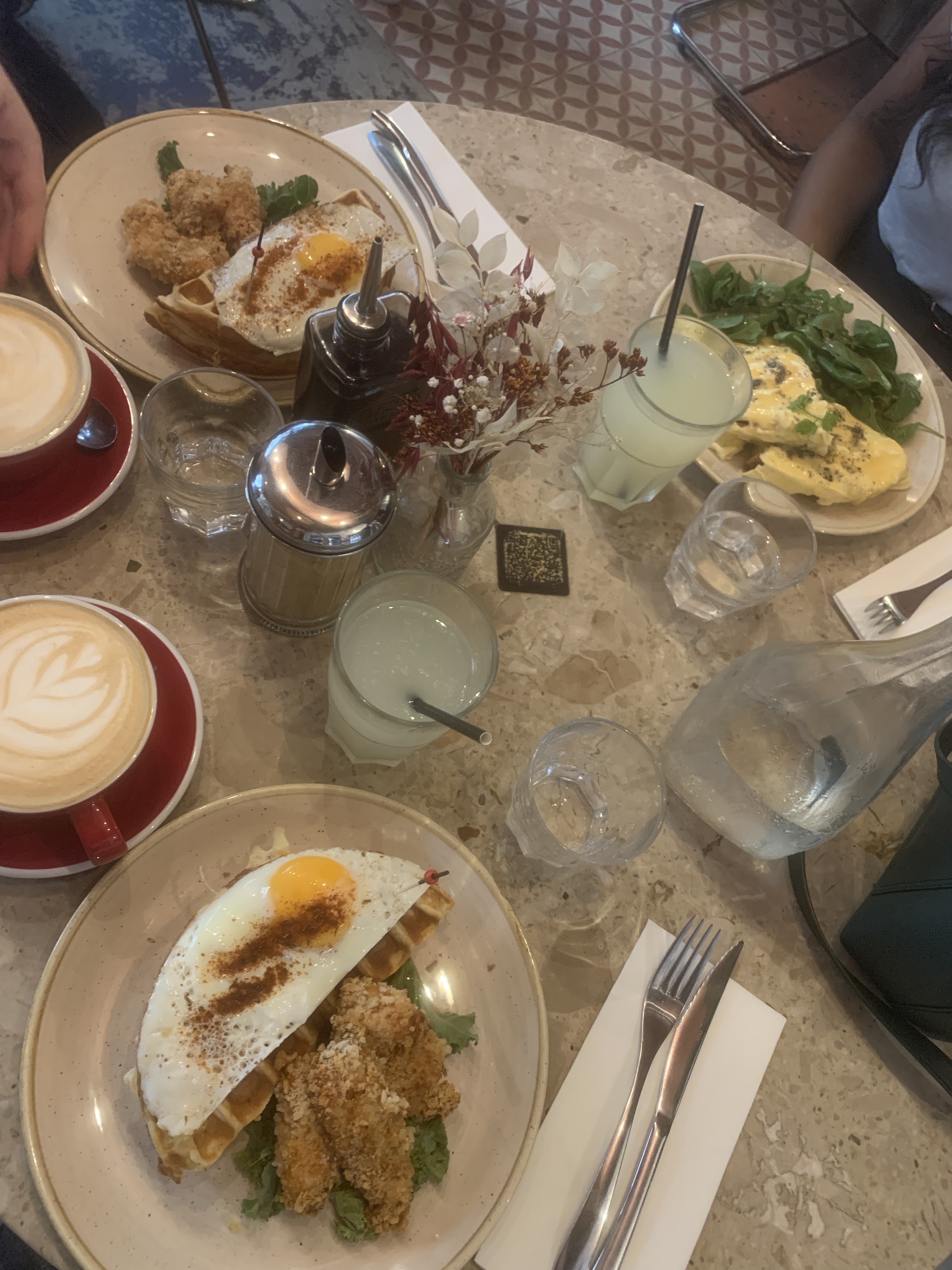 Petit brunch entre copines. Les plats étaient délicieux le poulet est tendre à souhait et les gaufres sont vraiment délicieuses ! Un moment hyper sympa. Je conseille de venir tôt le restaurant a vraiment du succès (tout a fait justifié). Je recommande !!!