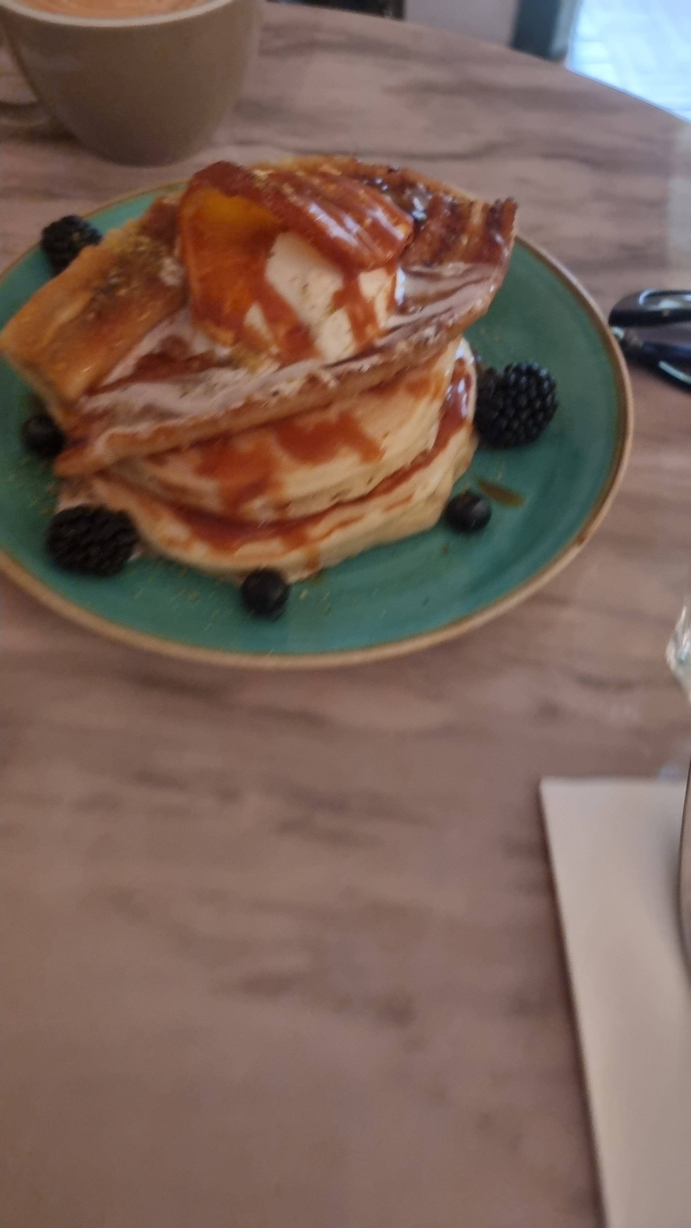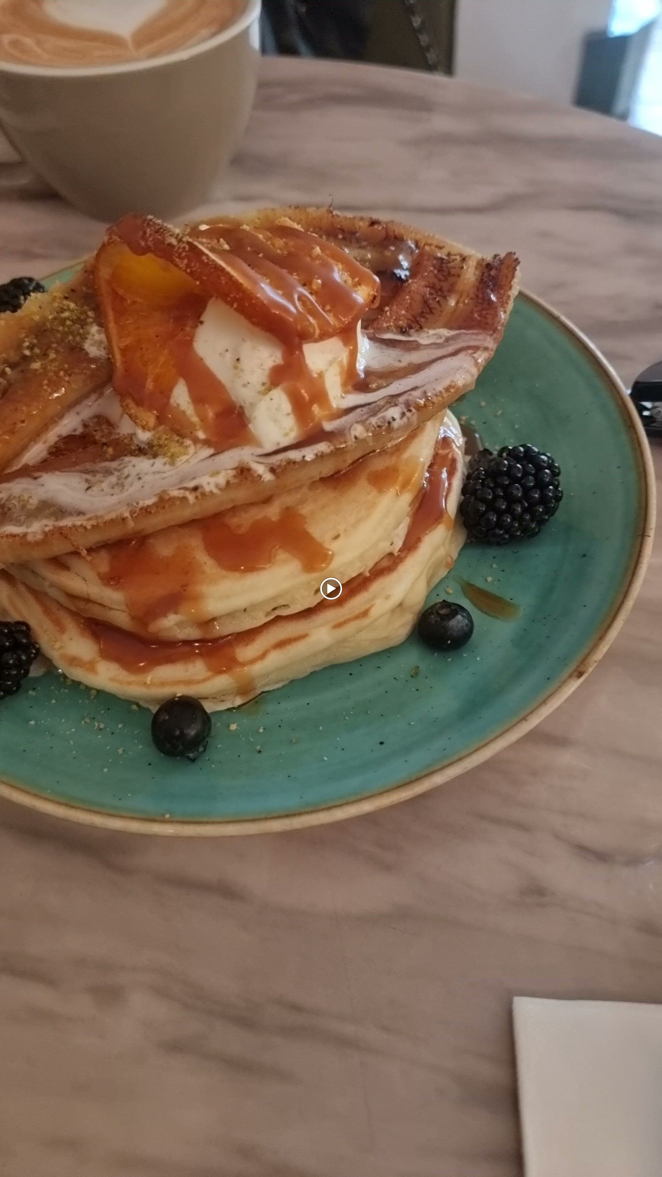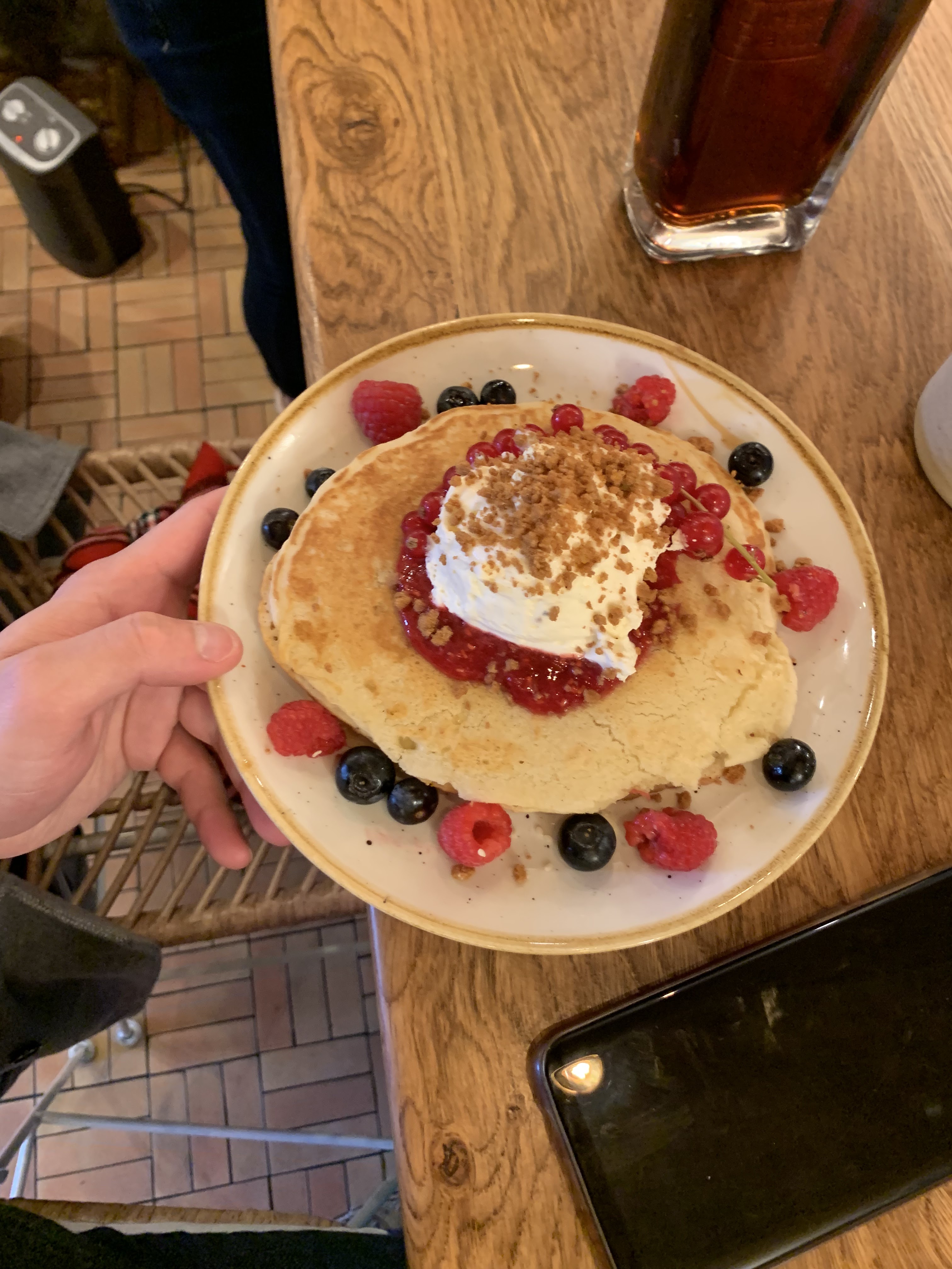 Dans l’ensemble c’était sympa sans plus. Le service était très rapide on sentait que l’heure de fermeture était proche. Le cadre est mignon cependant, les tables sont un peu trop collées les unes à côté des autres à mon goût. Mon choix de brunch, des pancakes copieux qui vous rassasient. Je recommande mais ce n’est pas le meilleur brunch.