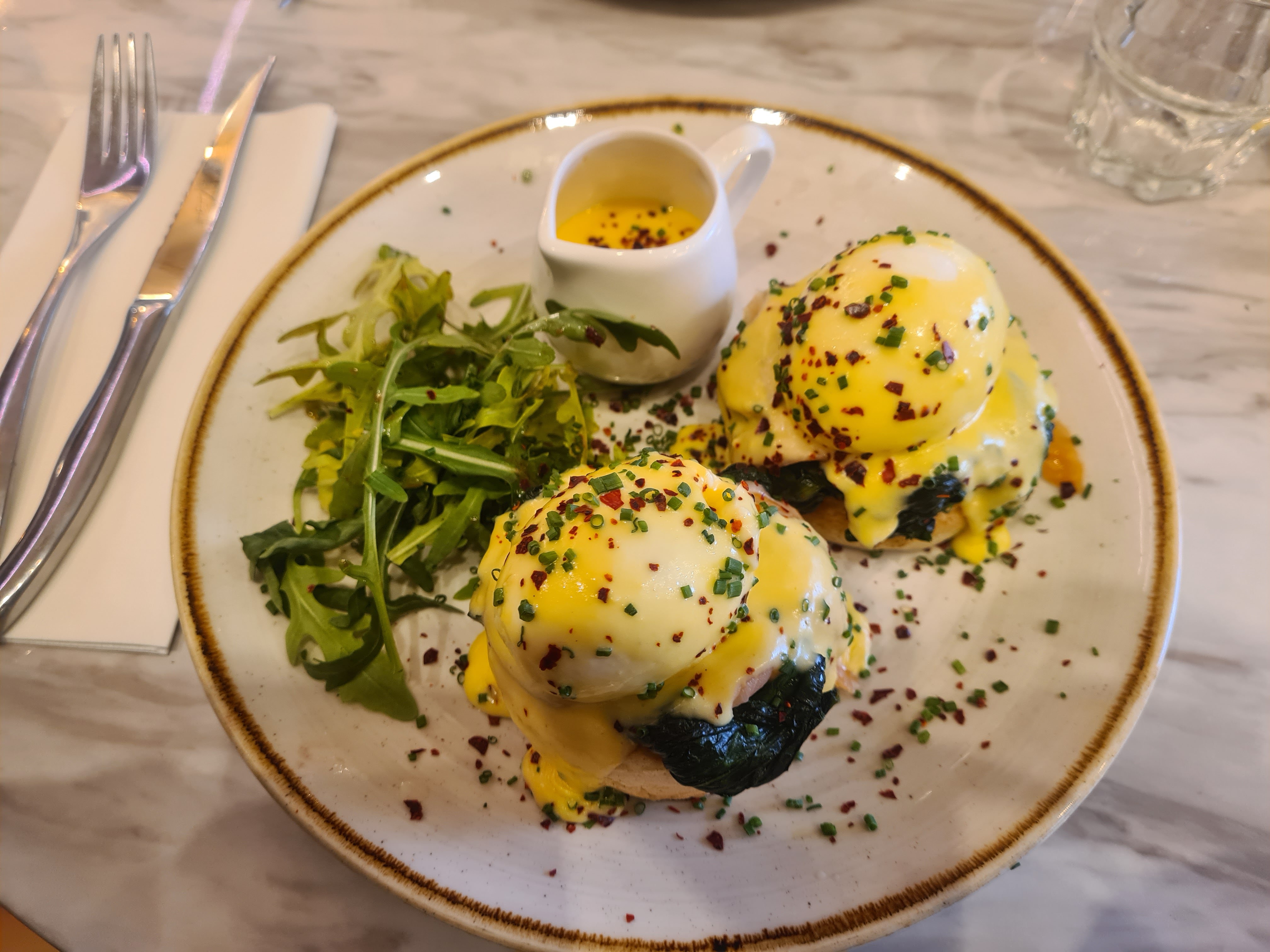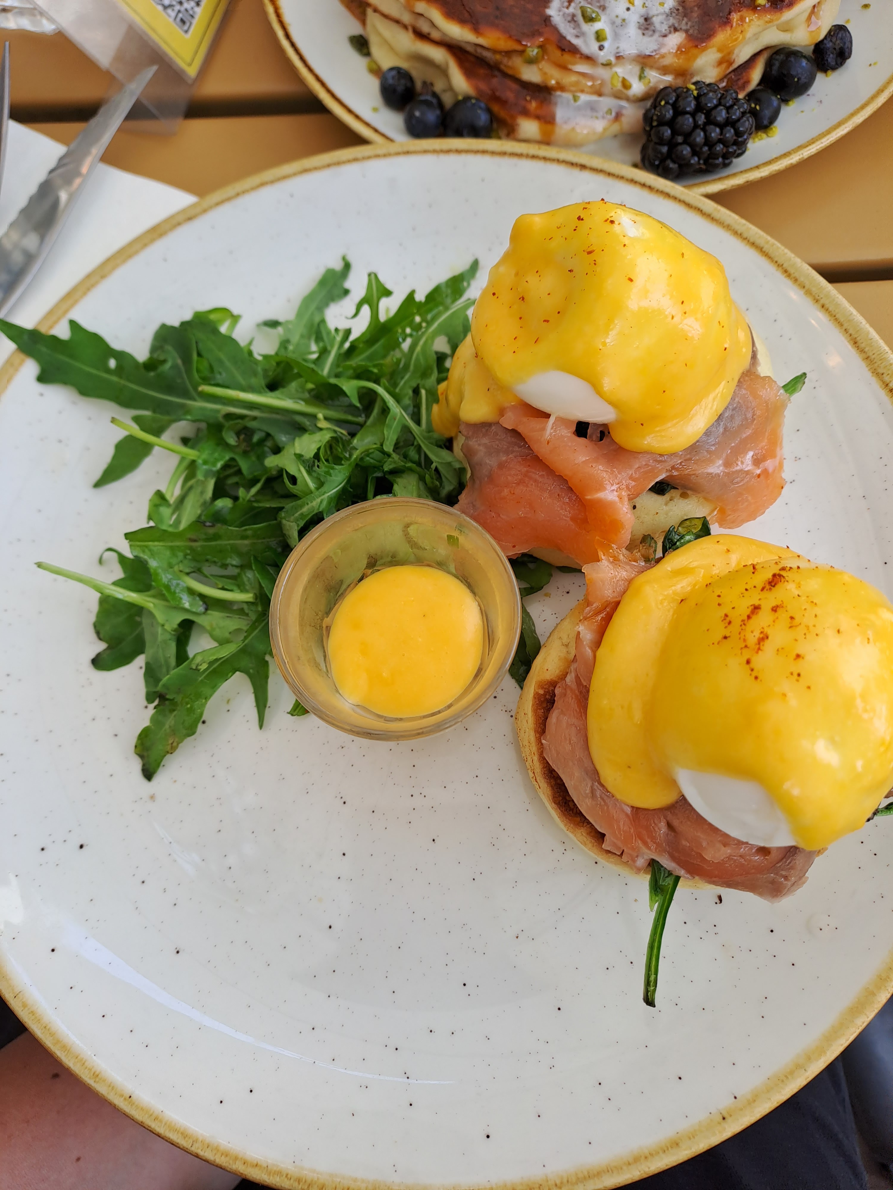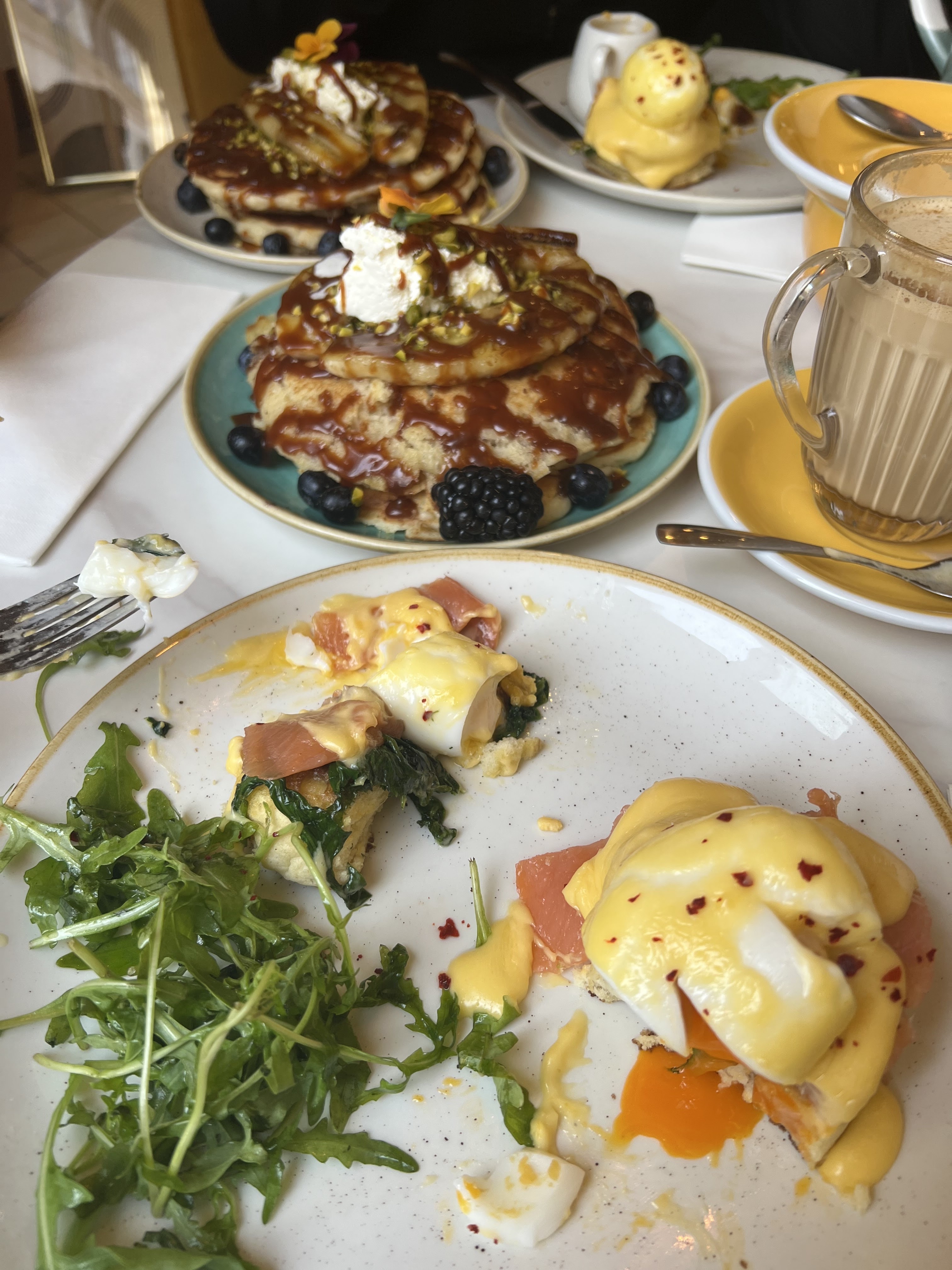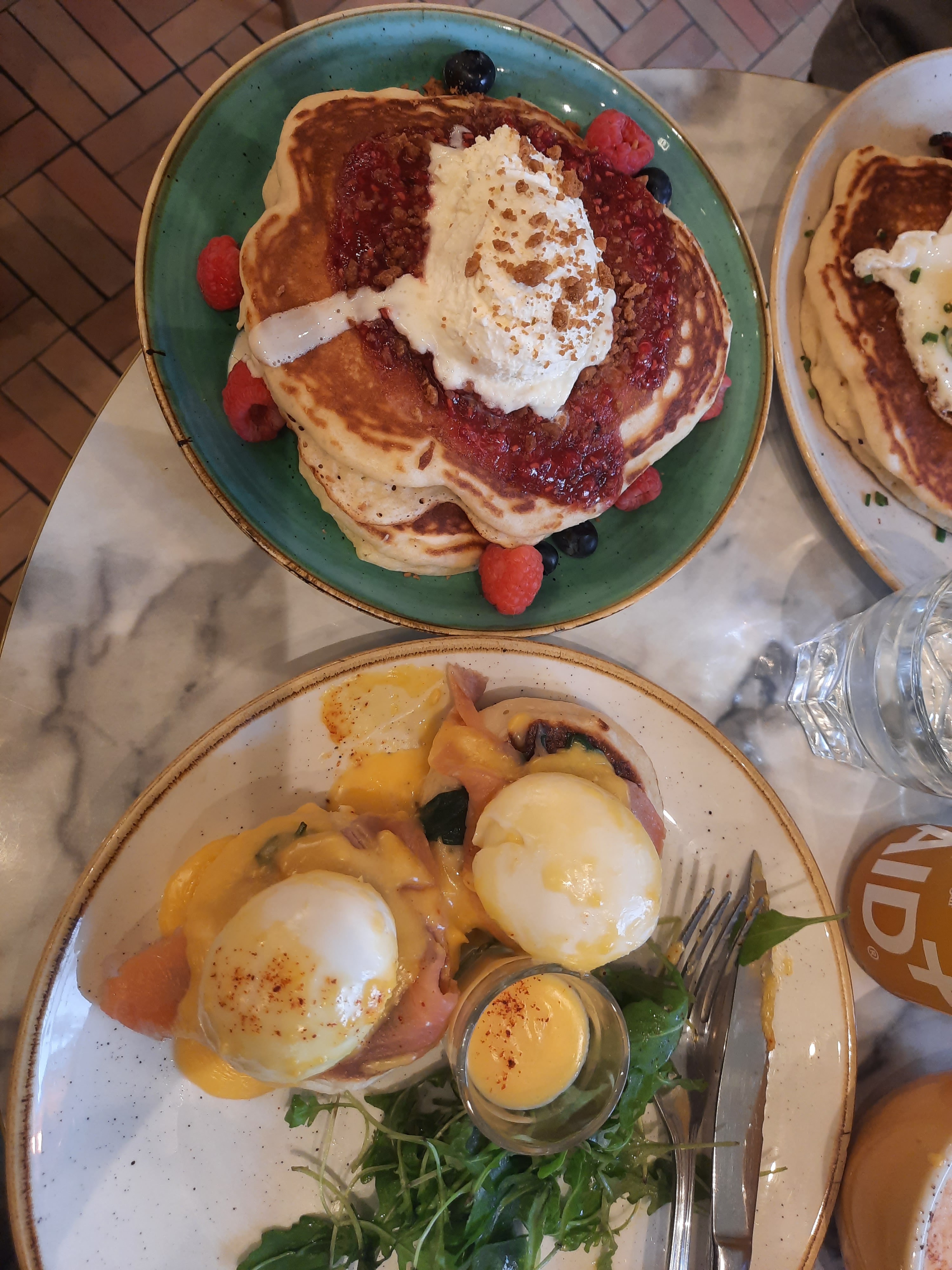 Personnel adorable et nourriture incroyable! Nous avons eu des crêpes avec des œufs et du bacon pour le garçon, et des œufs Bénédicte pour moi (avec sauce hollandaise en accompagnement 😜). Très arrangeant avec les demandes !
