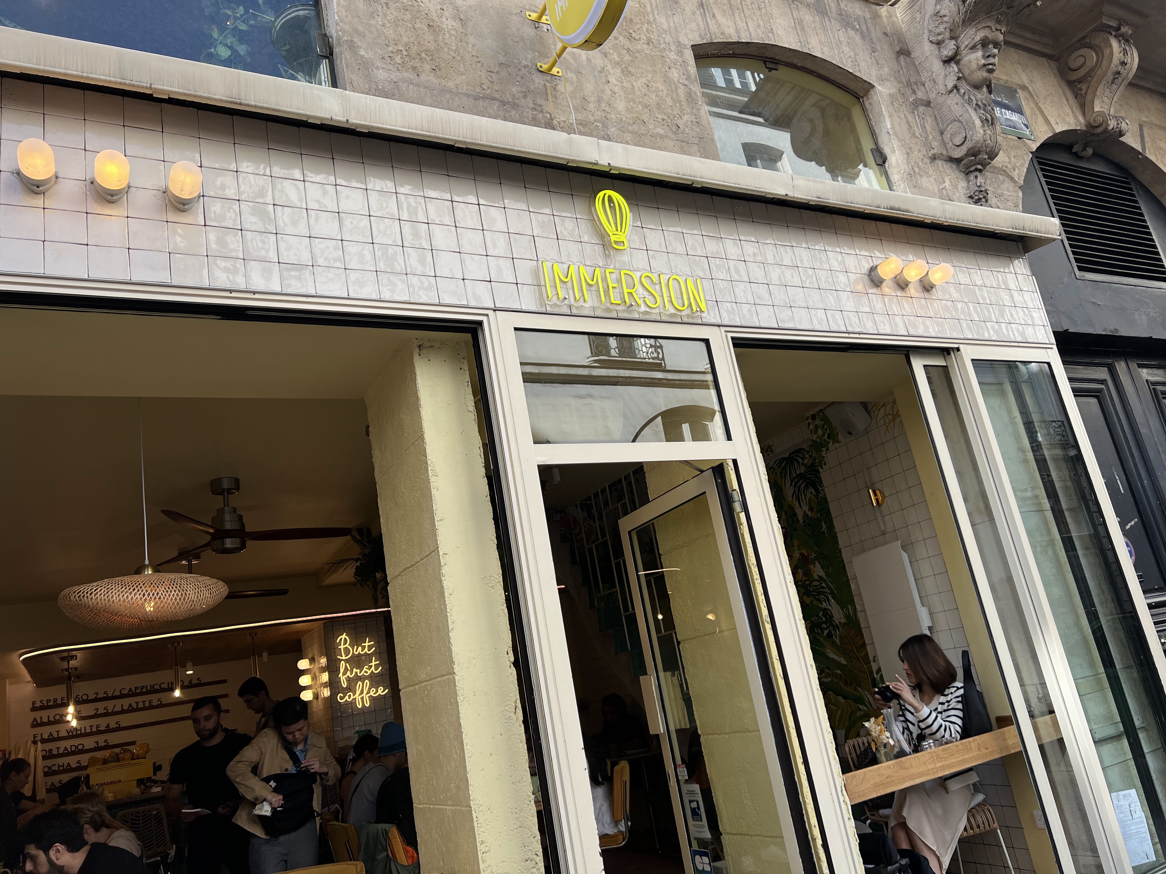 Étant de passage à Paris, j’ai absolument voulu tester Immersion ! Je n’ai pas été déçu… c’était juste incroyable, l’ambiance est juste parfaite et la décoration est super belle ( il y a un étage qui est tout aussi sublime ), la cuisine il faut en parler ! Les pancakes sont une tuerie et les œufs Bénédicte sont incroyables aussi ! Les boissons sont super bonnes également. Si j’avais pu goûter toute la carte je l’aurais fait mais les portions sont déjà bien copieuses ! Si je repasse à Paris je ne manquerai pas d’y repasser pour faire de nouveau un bon brunch !