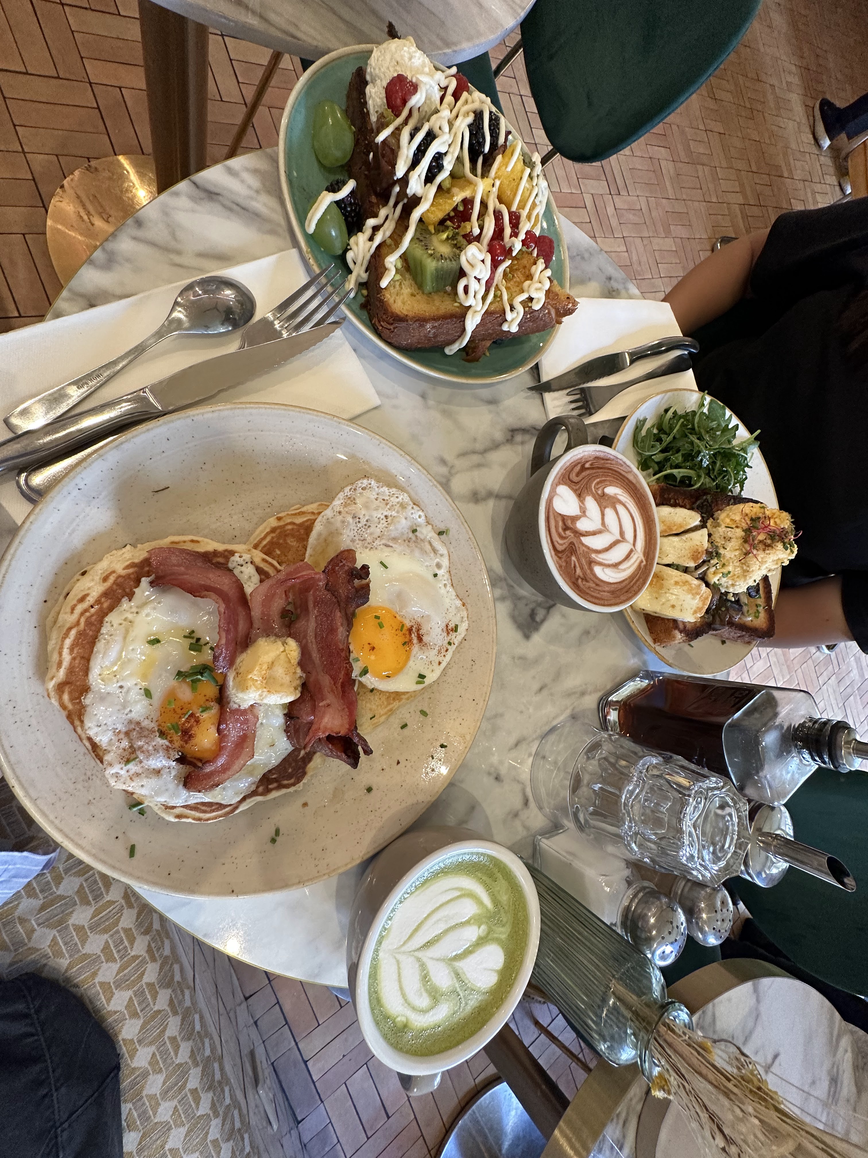 Nous sommes venus ici pour un brunch le jour de l'anniversaire de mon mari et nous avons tellement apprécié notre séjour que nous sommes revenus la semaine suivante. Leur nourriture ressemble aux photos en ligne et est délicieuse. Ils semblent s'adresser davantage aux touristes et les prix étaient un peu plus élevés que ceux des cafés du quartier, mais nous avons trouvé que cela en valait la peine !