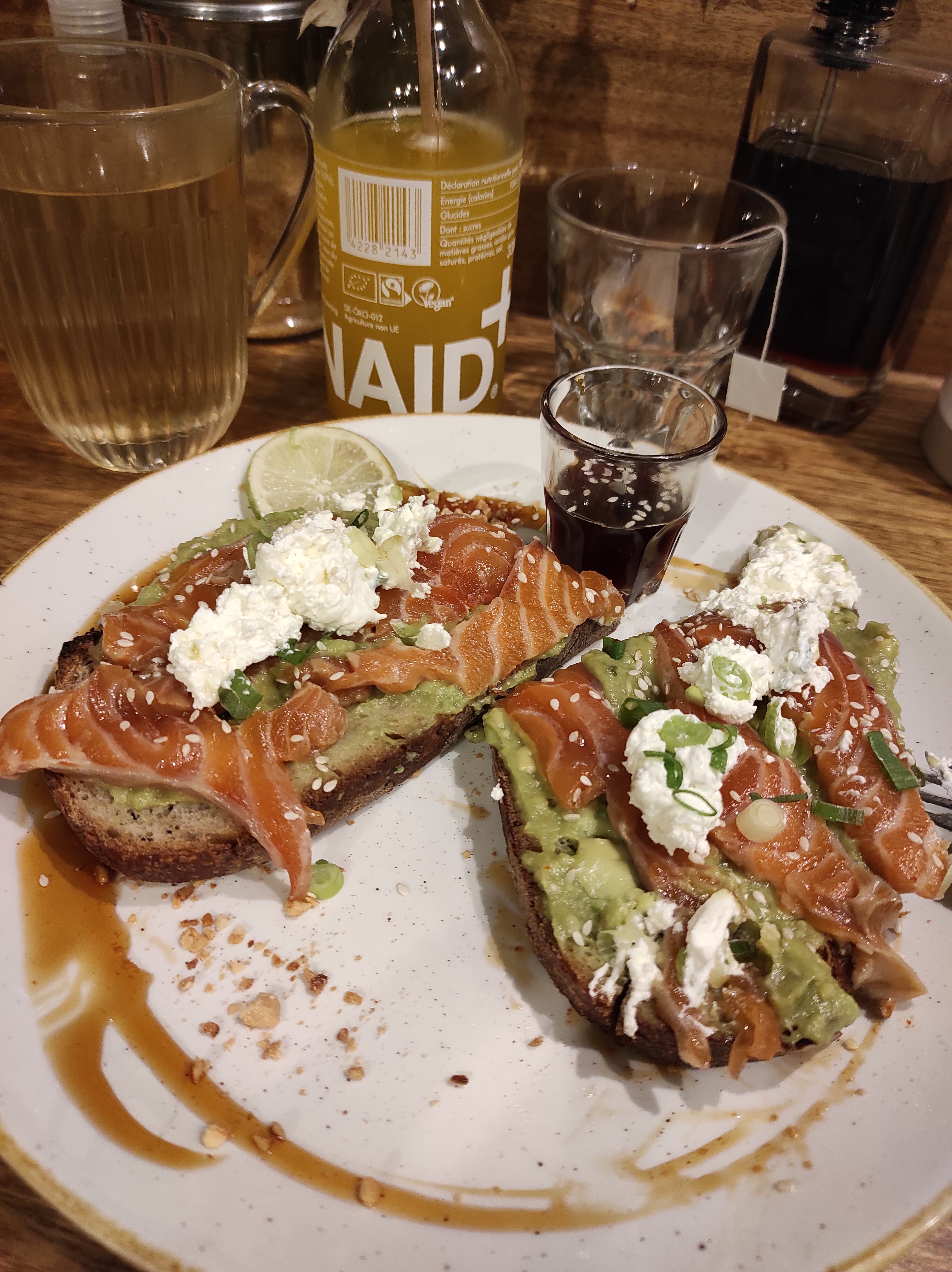 Venue avec ma sœur un jeudi à 14h, on a attendu une petite dizaine de minutes avant d'être installer vu qu'il y avait pas mal de monde 🙈 Service rapide en musique et avec le sourire, les serveurs sont très sympas. Aussitôt installées aussitôt la commande est prise, et les plats arrivent tous en même temps Les assiettes sont plus que biens remplis, c'est un peu cher mais quand on voit la quantité et la qualité on comprend pourquoi Pour 2 on en a eu pour 27.5 pour une boisson froide (il faisait trop chaud pour une boisson chaude 🫠) et pour un plat avec supplément + dessert par personne donc vraiment les prix sont comparable à ceux des formules brunch Le plus c'est justement qu'on choisit ce qu'on prend : pas obligé de prendre une boisson froide + chose + un granola qu'on mangera pas ! Le seul point négatif c'était les supplément qui étaient un peu cher pour la quantité (notamment l'avocat ^^ je pense que 2 petits pots au lieu d'un pour le prix ça aurait été bien) On était ravi, on s'est pas gardé de le dire à la caissière en base très gentille également ! En tout on est restés 45 mins donc c'était vraiment rapide mais ça nous arrangeait bien 😊 en tout cas merci pour ce bon moment, né changez rien 🤩