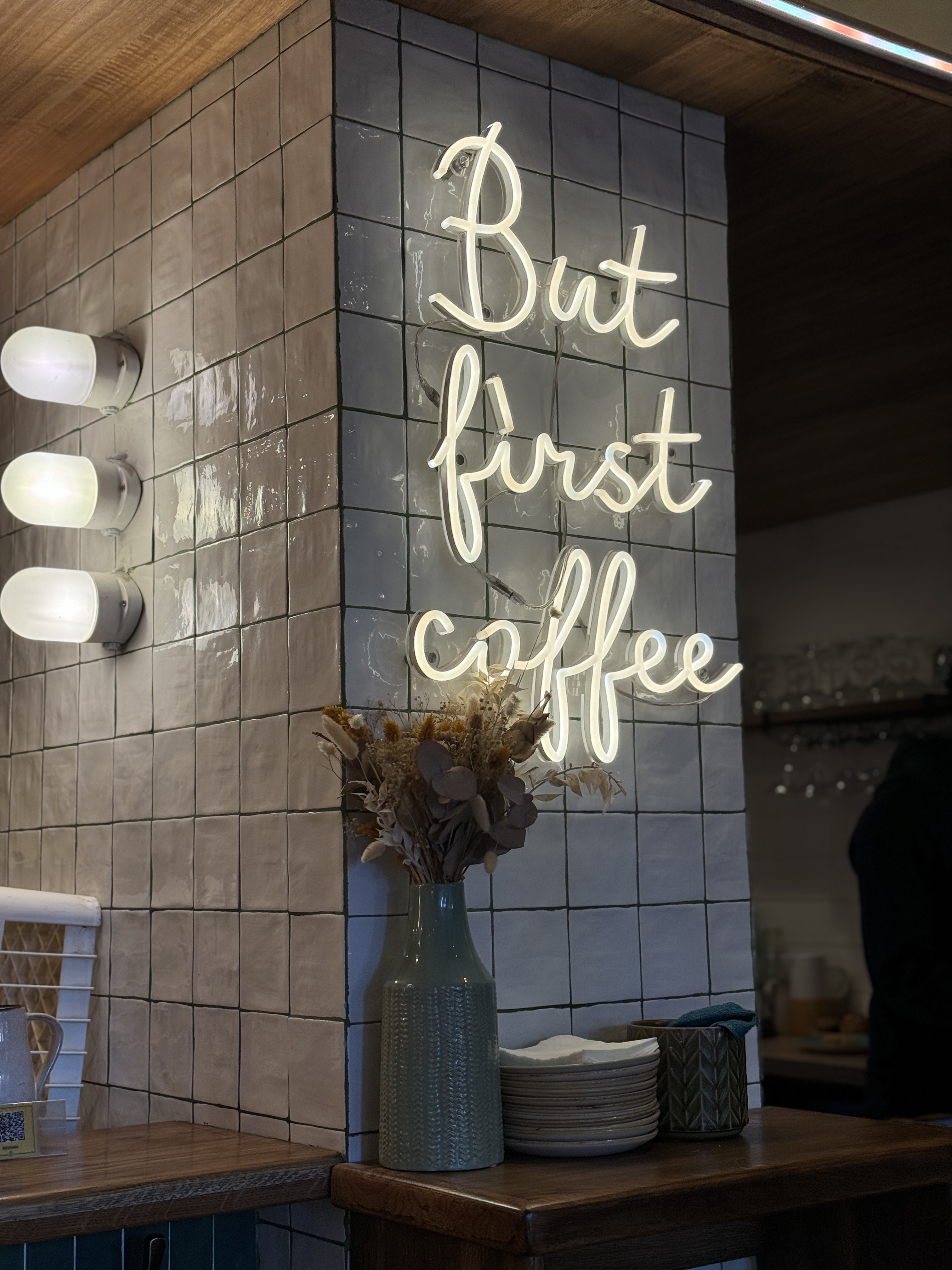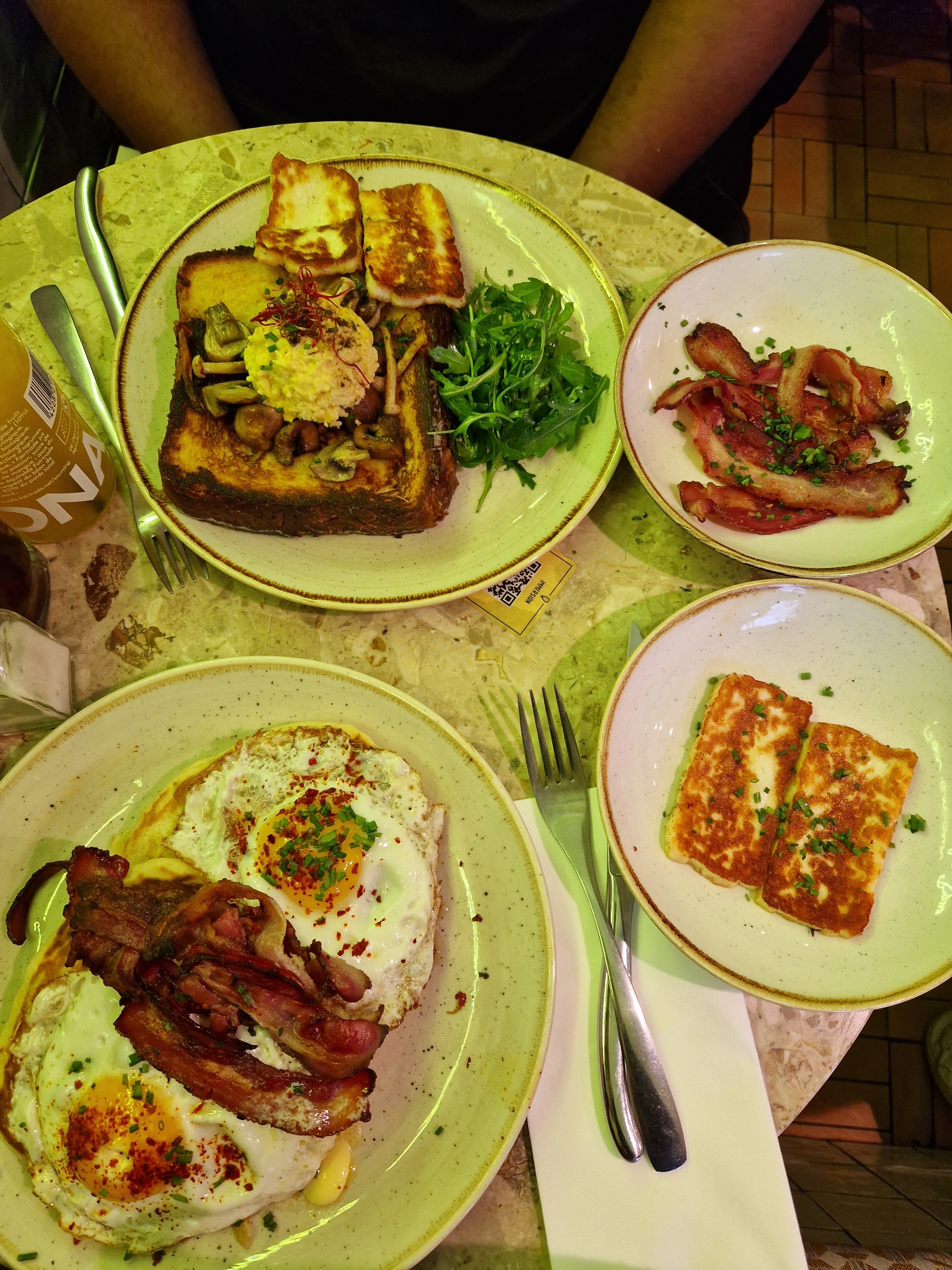 Si c'est la journée shopping, alors commençons par une bonne gâterie en prenant le petit-déjeuner ici 😋, le menu était trop compliqué pour moi, je voulais juste avoir un simple œuf, champignon et fromage, et Isabel a eu la gentillesse de faire ici mission 💚 , et n'oublions pas le café , je ne m'attendais pas à plus mais devinez quoi , BIEN CONÇU 👌