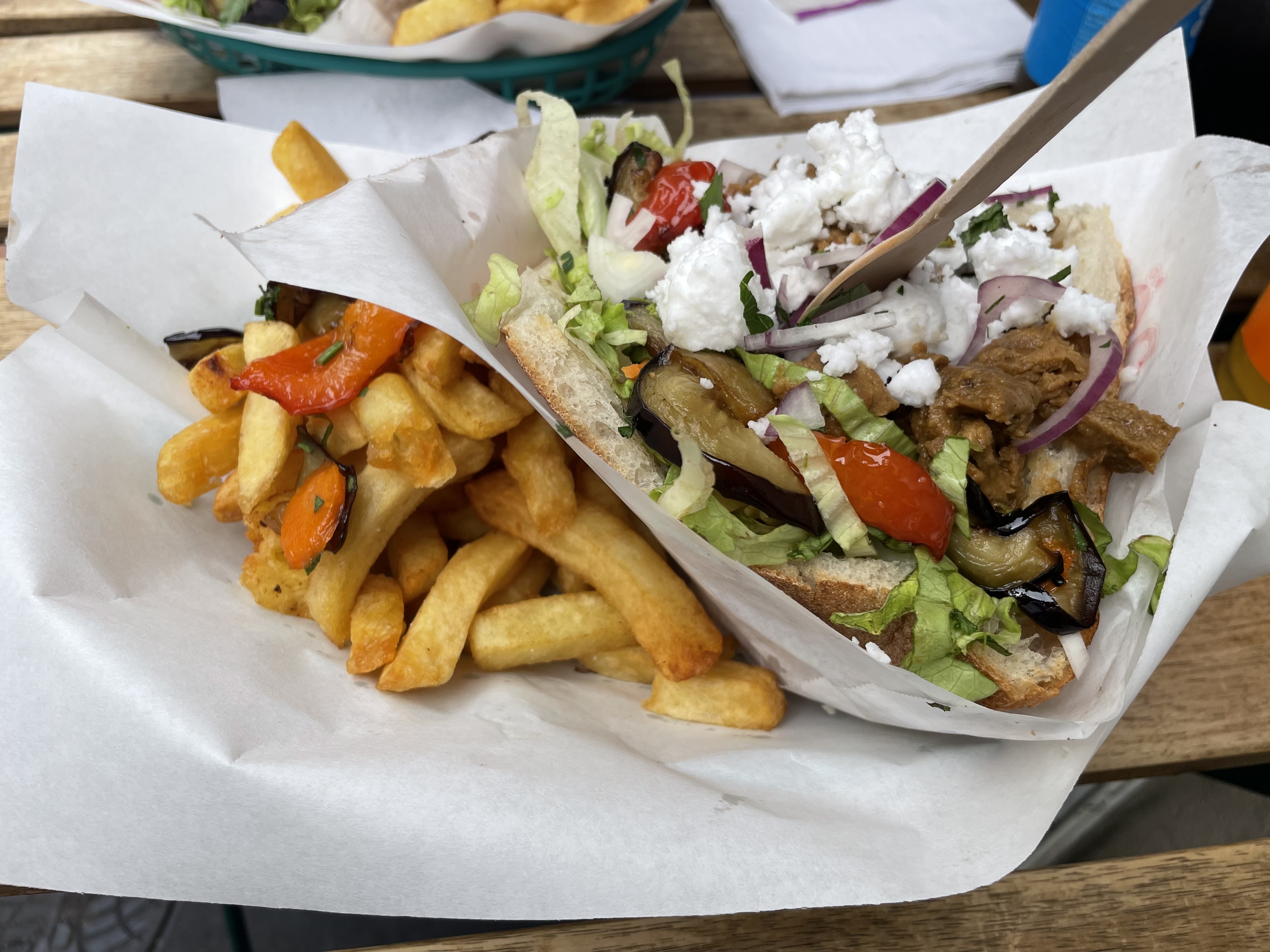 Une bonne adresse pour emmener son copain omnivore sans faire d'écarts ! Les kebap sont très complets que ce soit sur le nombre de légumes comme la portion proposée. Les frites sont bonnes, les sauces originales (j'ai testé la sauce sésame et c'est pas mon truc :( ) Il y a beaucoup de boissons dispo et il est possible de les ramener, un déchet de moins ! On a mangé dans un parc pas trop loin, c'était un repas sympa.