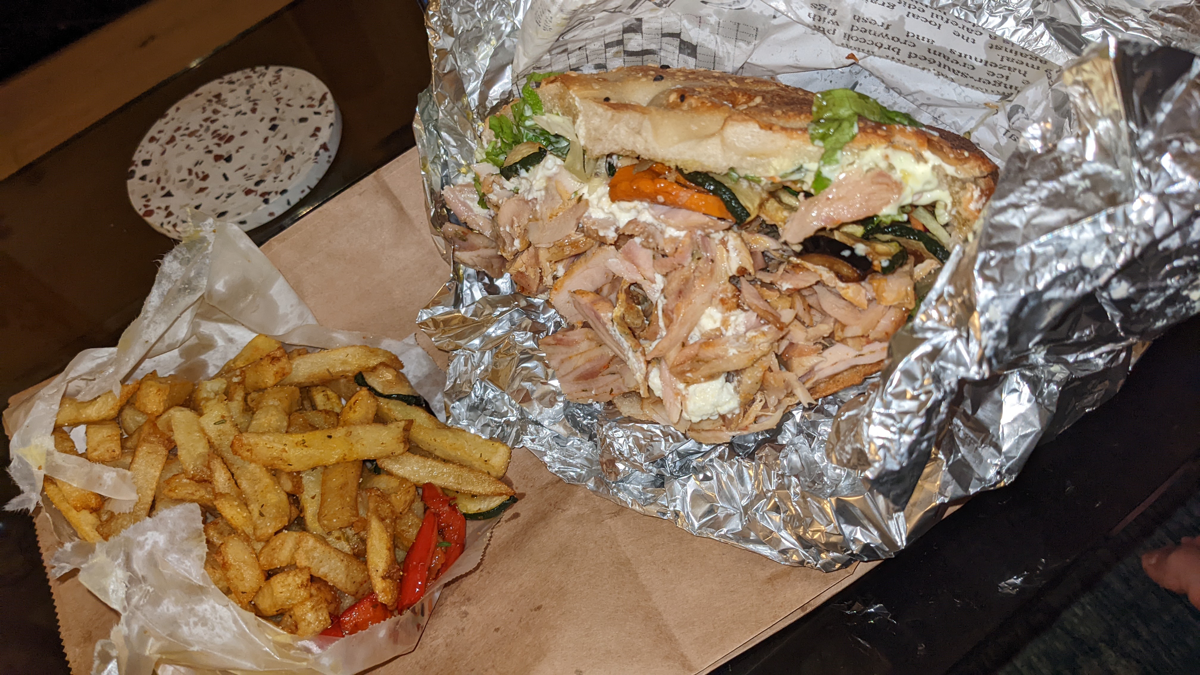 Une très bonne découverte ! Légumes grillés super bons, la viande est top, le pain croustillant, les sauces et frites maisons délicieuses ;-) et l’équipe est bien sympathique