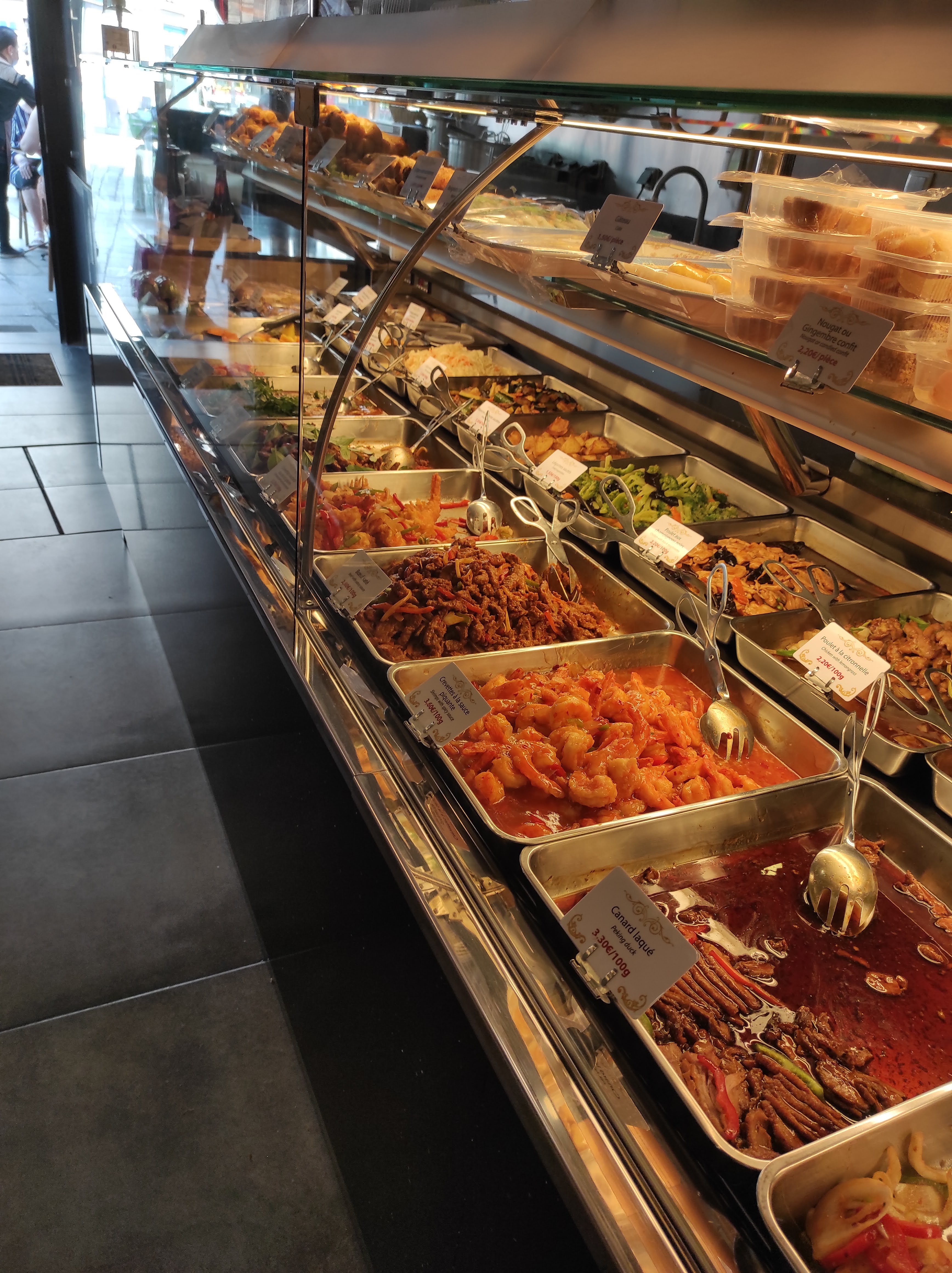 Acceuil au top ! Traiteur très varié Je n'ai pas tout goûter mais ça ne serait tarder tellement tout à l air bon. On peut manger un pho et Ils font frire les nems Horaires très pratiques pour ceux qui terminent tard Merci À bientôt !