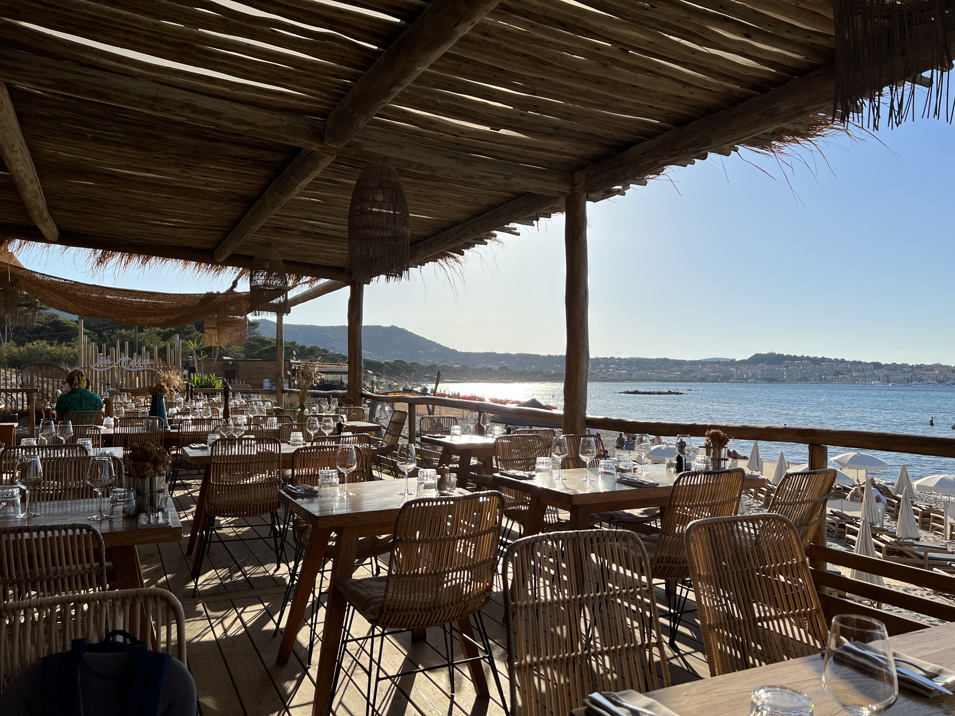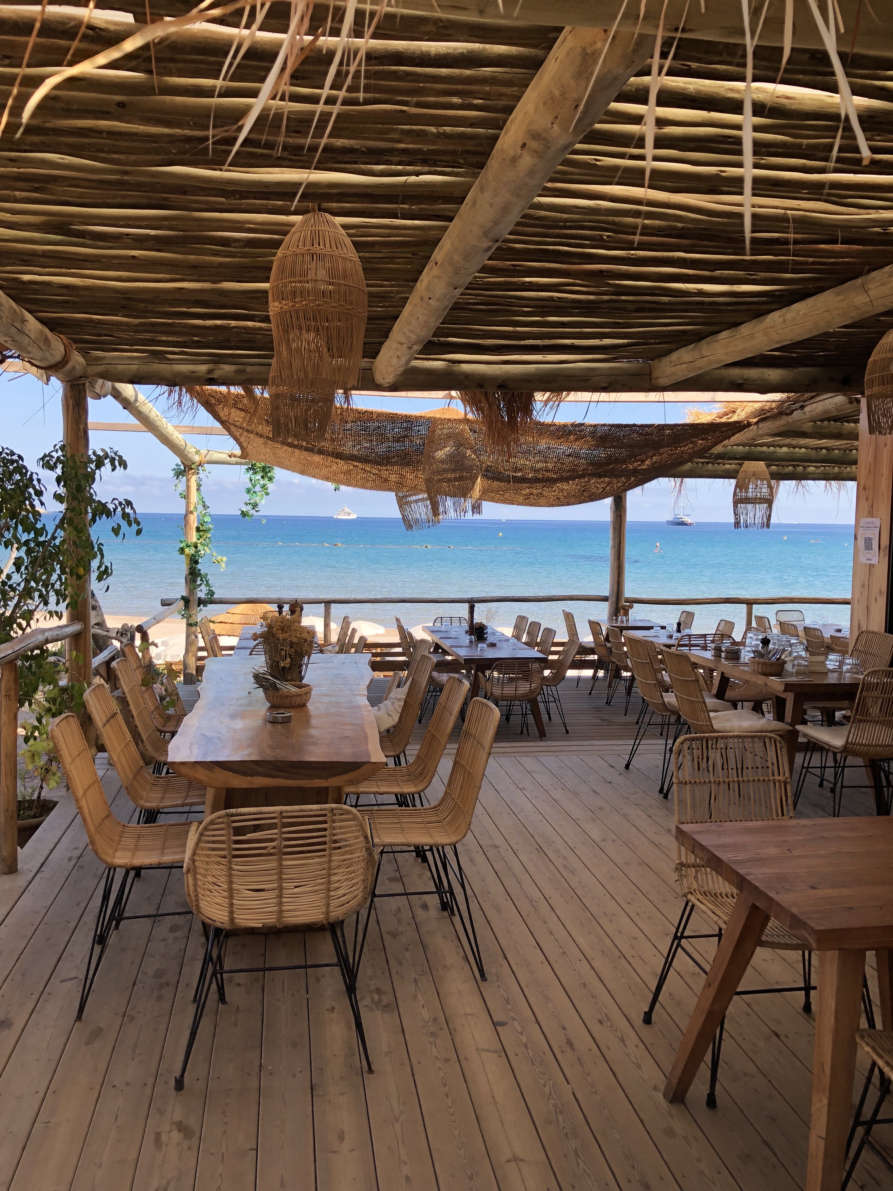 Bel endroit, et jolie vue. Carte plutôt cuisine fusion / japonaise. Pas extraordinaire mais qui fait le travail. Prix de plage, compter 20-25€ pour manger sans boisson. On y va pour voir et être vu, pas forcément le lieu le plus confidentiel qui soit.