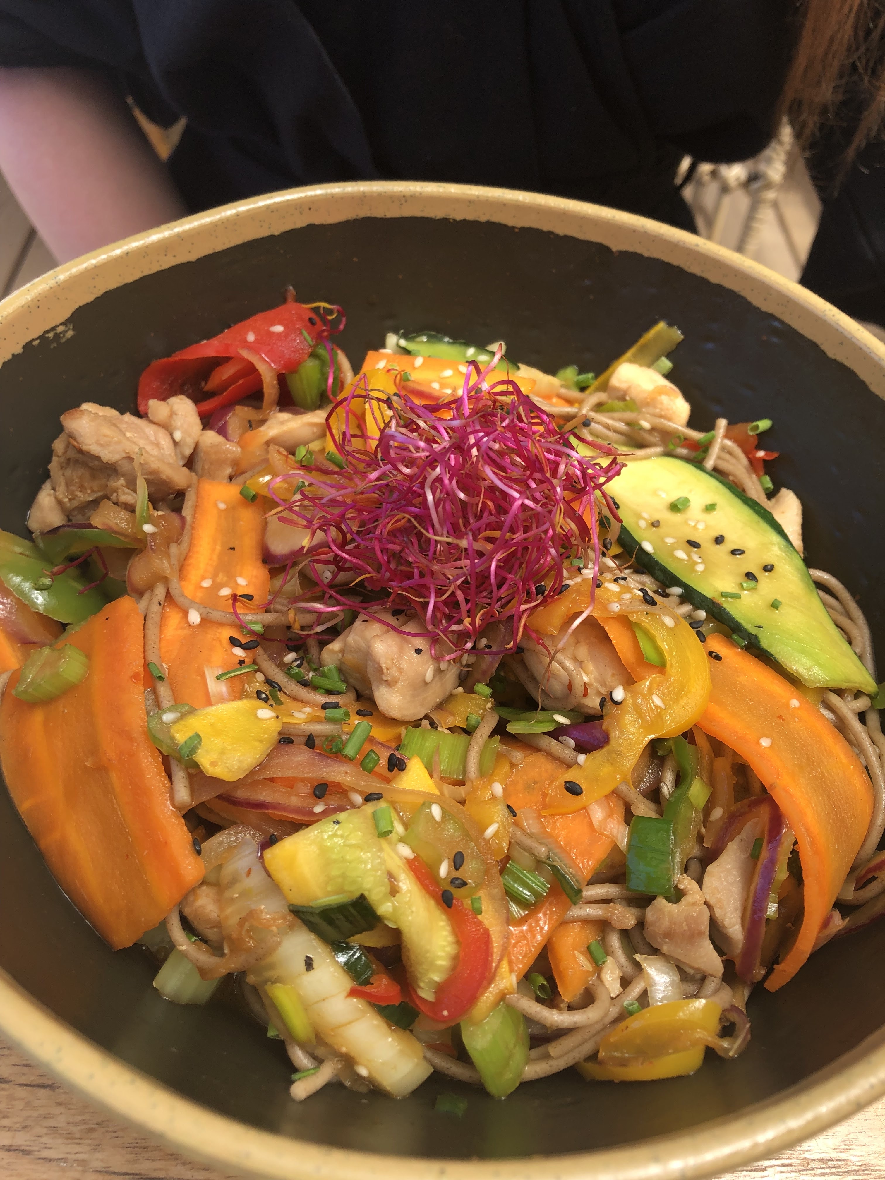 La nourriture était de bonne qualité - un très bon bol (végétarien) d'ingrédients et une vinaigrette intéressante de style asiatique, les nouilles soba étaient également savoureuses. Nous aimons aussi le style/ambiance et le personnel accueillant. Je reviendrai avec plaisir.