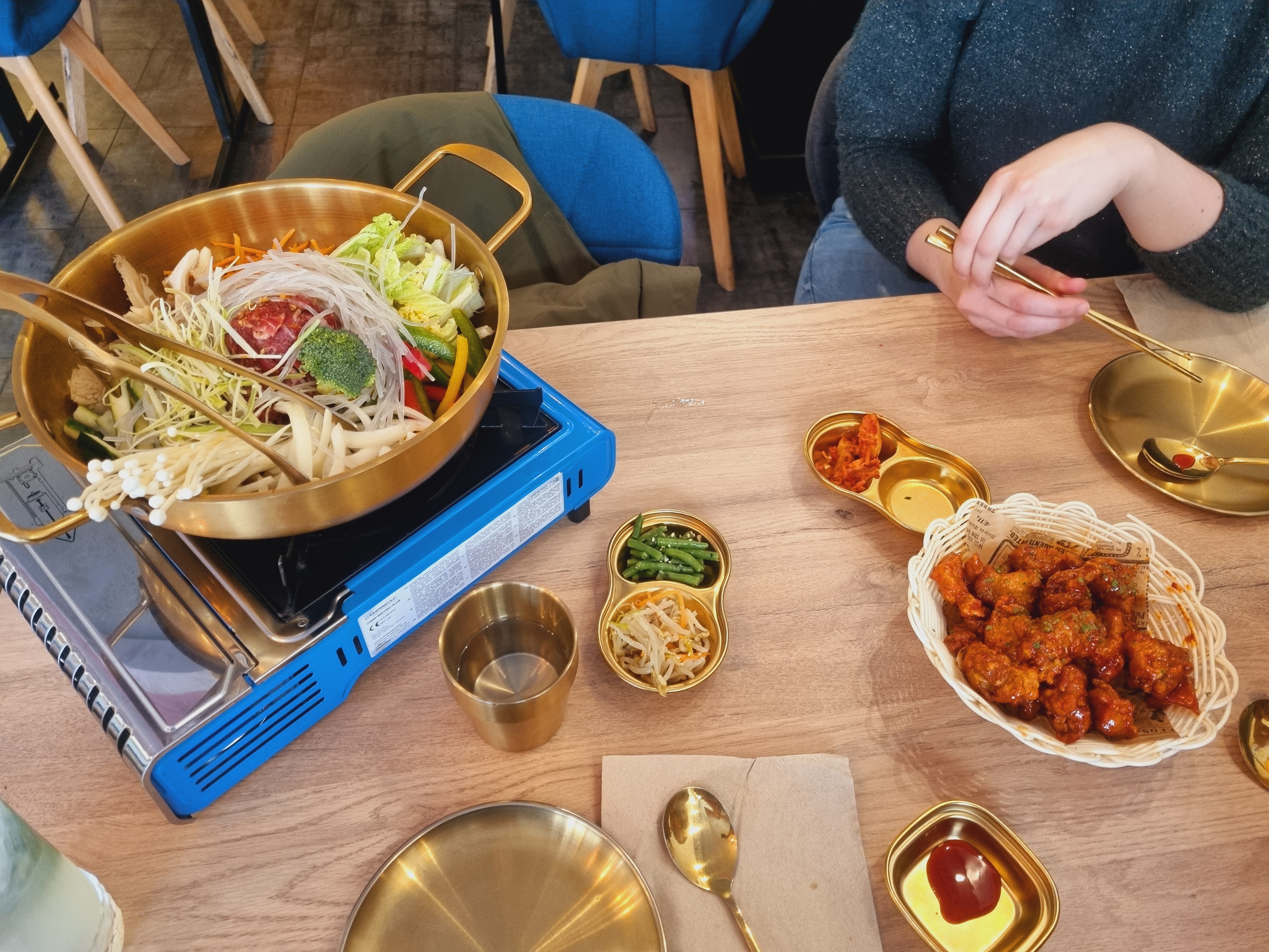 Un peu déçu car ce qu'on a commandé ne ressemblait pas du tout à la vidéo d'une influenceuse.... Le cheese dakgalbi n'était pas fourni, trop de légumes sûrement utilisés pour masquer la petite quantité de poulet et de fromage... c'était plutôt bon même si rapport qualité prix c'est pas trop ça, nous nous attendions à mieux. un service décent même si on peut regretter la lenteur