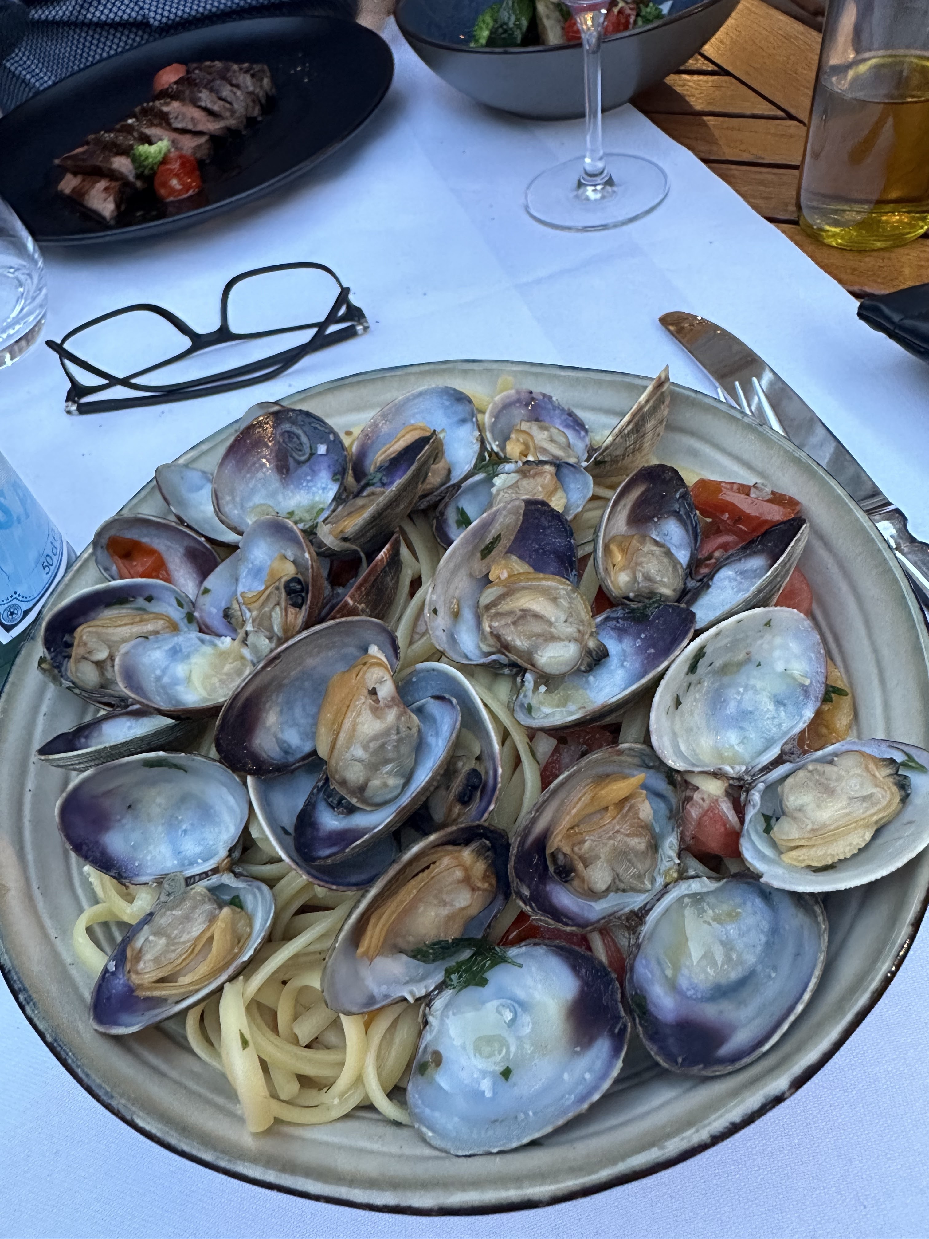 Nous avons vraiment aimé la nourriture, le vin aussi et le service est bon aussi - nous apprécions vraiment d'avoir reçu de l'eau pour notre chien sans la demander. Les toilettes sont propres, le menu est petit (ce que je préfère), donc nous étions heureux ici. Les pâtes que nous avions étaient parfaitement cuites et assaisonnées. Les prix sont élevés, mais c'était vraiment bien. P.s. Nous avons dû changer la critique car nous sommes revenus l'autre jour, mais nous avons été rejetés car nous ne pouvions pas obtenir seulement un vin et des desserts (à l'extérieur, il n'y avait qu'une seule table occupée). C'est très désagréable et semble assez touristique. Je ne reviendrai pas.