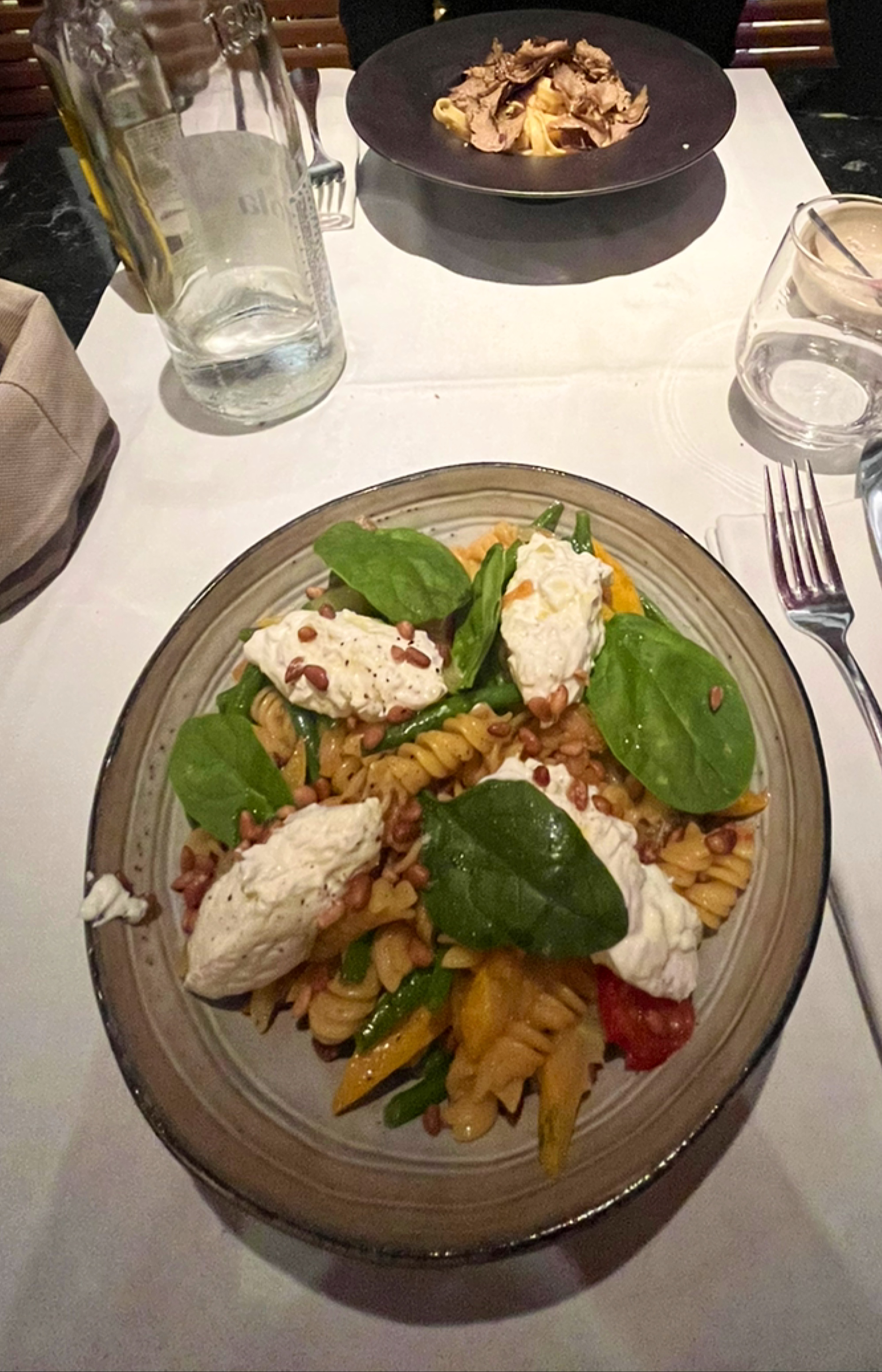 Nous avons très bien mangé. En gros, nous avons commandé des tomates anciennes à la burrata (excellentes) et des pâtes aux légumes (très bonnes).