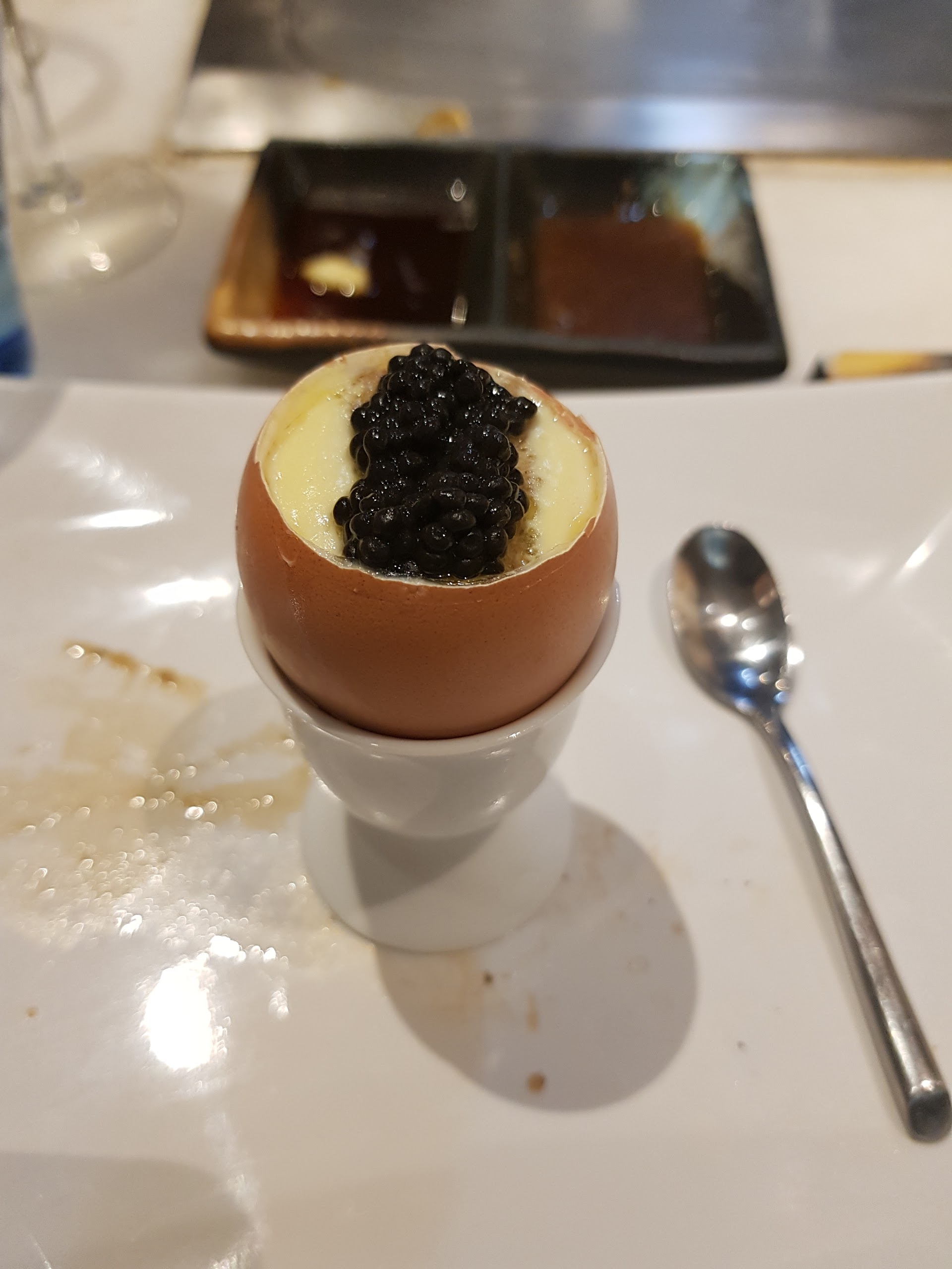Je vous NE recommande PAS ce restaurant, la dame qui nous a pris la commande, elle était tellement froide et pressée. Au niveau de l’ambiance, malheureusement, ce soir là, la table à côté, les gens ont parlé trop fort, ils ont fait comme chez eux. SI vous cherchez un endroit pour se discuter, partager, évitez de venir ici. Le SHOW était intéressant, mais le goût des nourritures, en tout cas je le trouve rien de spécial. Les crevettes n’étaient pas friches. Ça se voit dans la photo aussi. J’ai pris un menu plus de 70€, la portion était petite, comme d’habitude, le menu est compris un bol de riz naturel pour remplir le estomac. (Ce n’est pas le cas dans les bons restos) Et le dessert est une blague pour moi. Les vaisselles sont stylées mais pas de bonne qualité. Au niveau de qualité prix, franchement, CIAO!