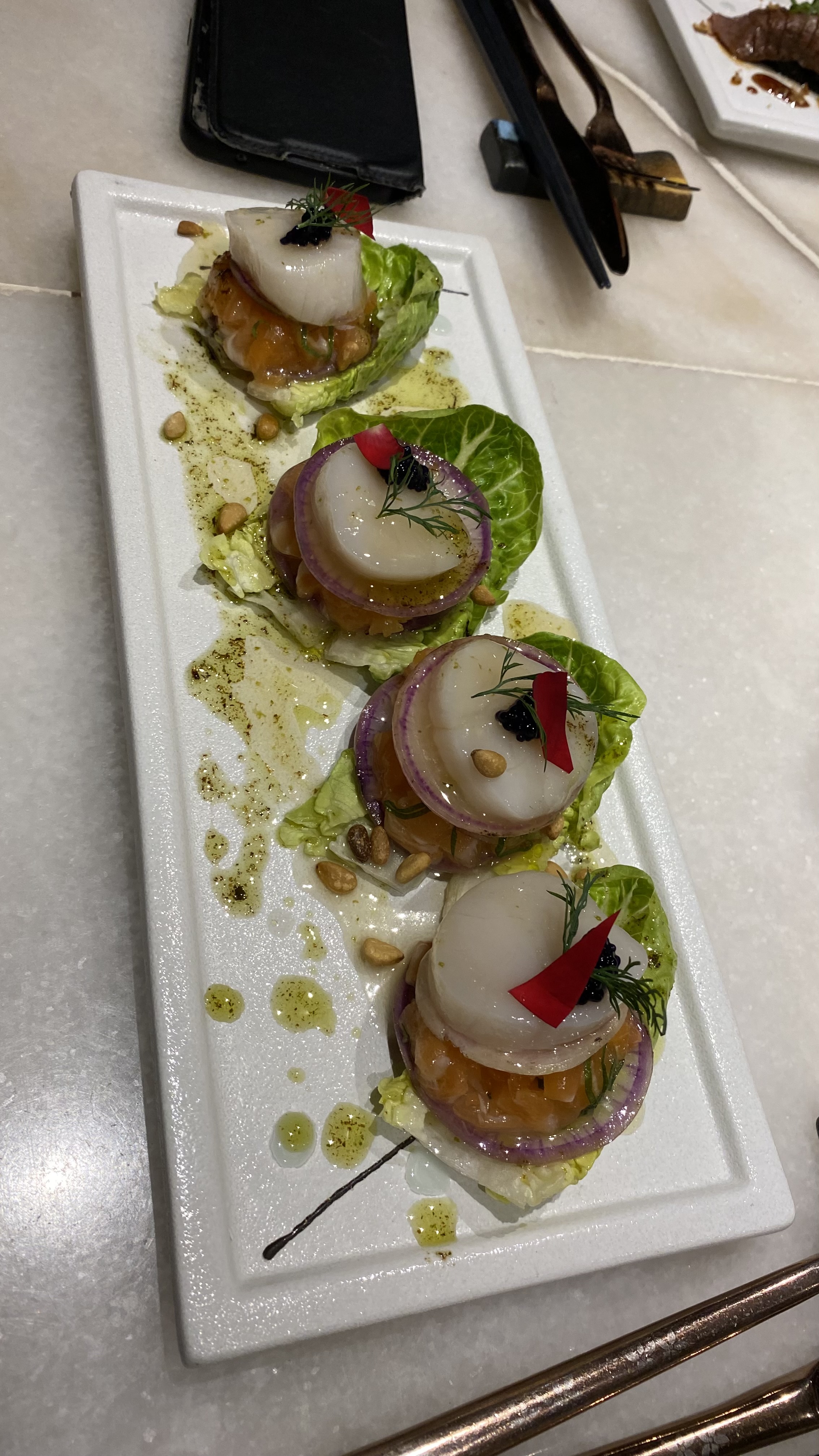 Repas exquis, ingrédients de qualité supérieure et préparation artistique devant nous. Service impeccable. Expérience haut de gamme.