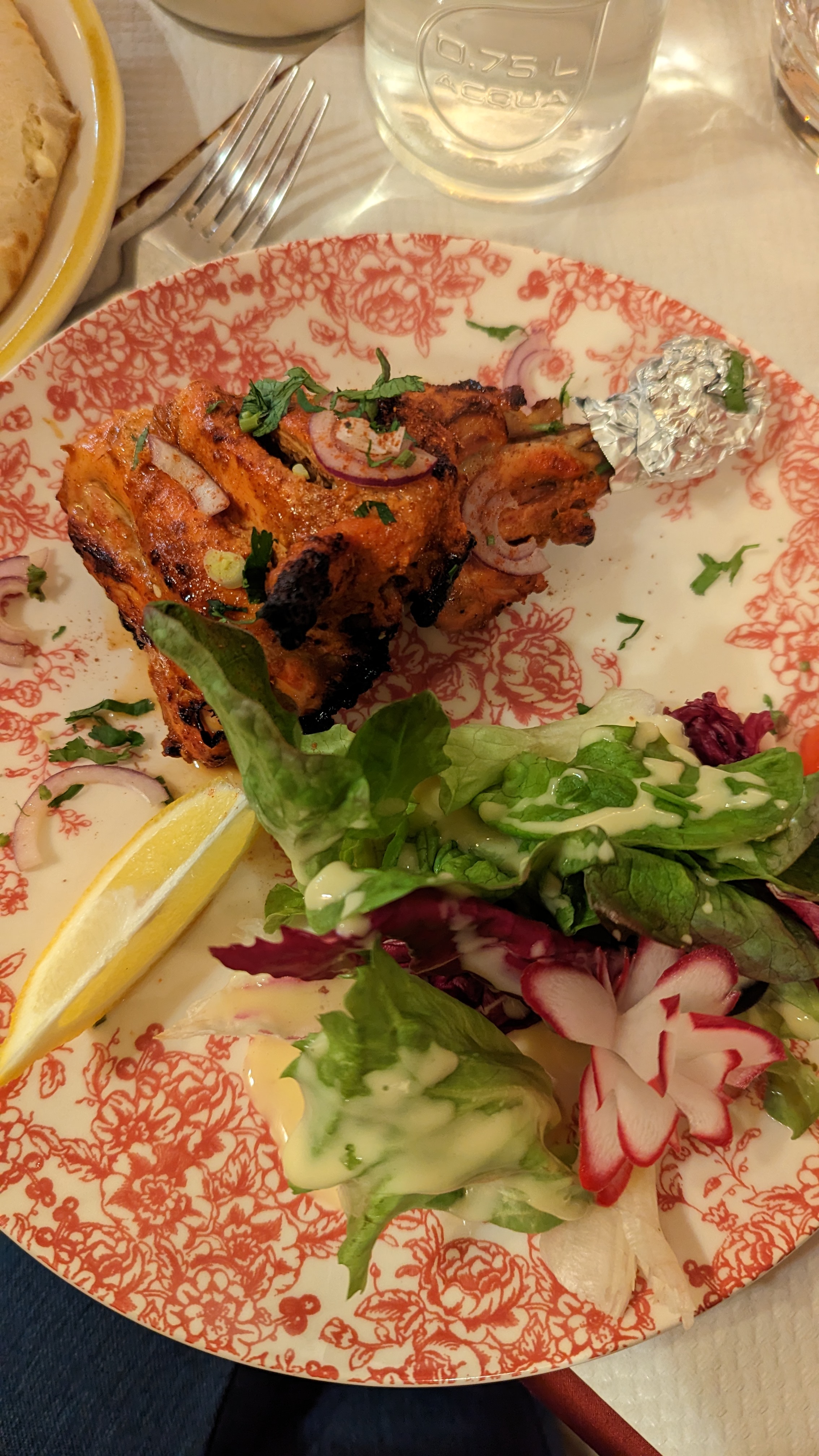 Super expérience gustative au travers des plats découverts dans ce restaurant. Choix très variés convenant à tous avec une attention du serveur qui vous demande le niveau épicé 🌶 que vous souhaitez bas, moyen ou élevé. Nous avons l’entrée découverte avec de bonnes surprises 10,5€, puis un poulet tandori 12€ et un nan olive 3€ env et fromage viande 4€. Recommandons ce restaurant pour vous immerger dans une ambiance indienne, grâce à la décoration typique.