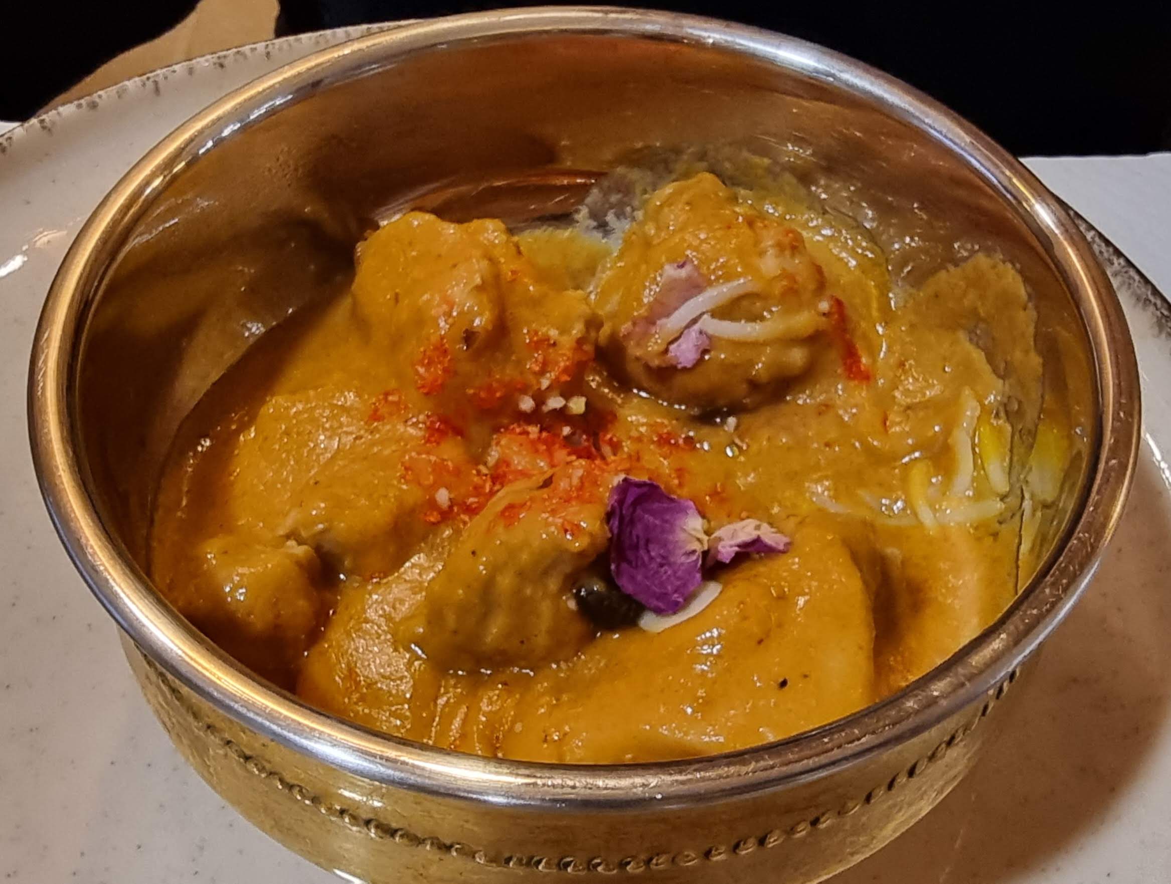 Tout était vraiment délicieux du début à la fin ! Le lassi à la mangue était très savoureux, sucré mais pas trop, bien frais. Un régal. Les samossas à la viande étaient également très bons, épicés comme il fallait. La décoration était très jolie. Le poulet korma était un délice, avec des morceaux de poulet absolument pas secs, très moelleux, ça fait tout de suite la différence avec d'autres restaurants habituels. Je recommande vivement !