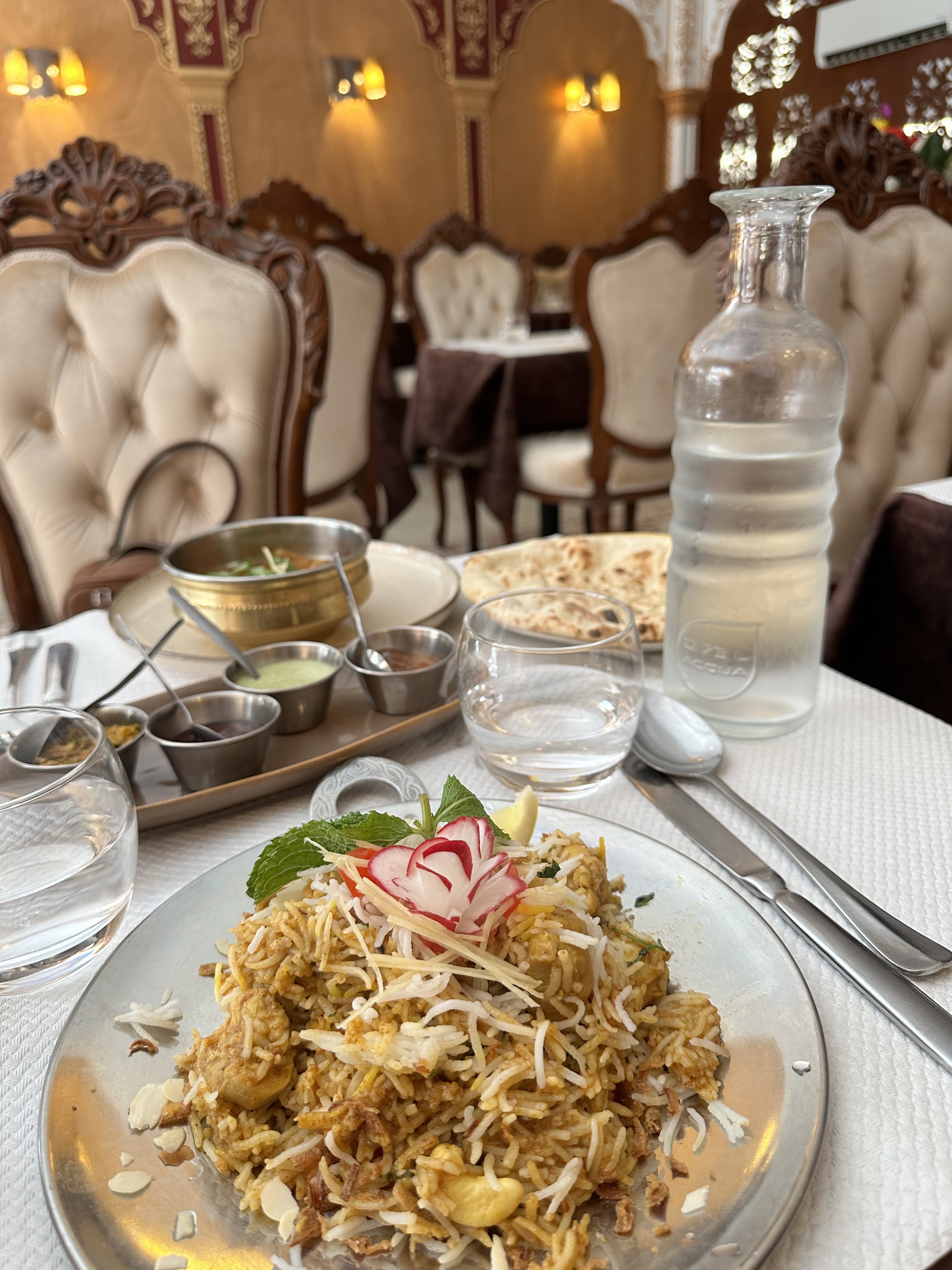 Un endroit avec une décoration très sympa, calme, petite musique de fond à l’esprit indienne très agréable. J’ignore le prénom de la dame qui s’est occupé de nous, mais extrêmement gentille, et service avec soin. La cuisine est une pépite, les cheese naan sont fondant, le poulet Korma sucré/salé est exquis, le rapport/qualité prix très intéressant. On reviendra sans hésiter !