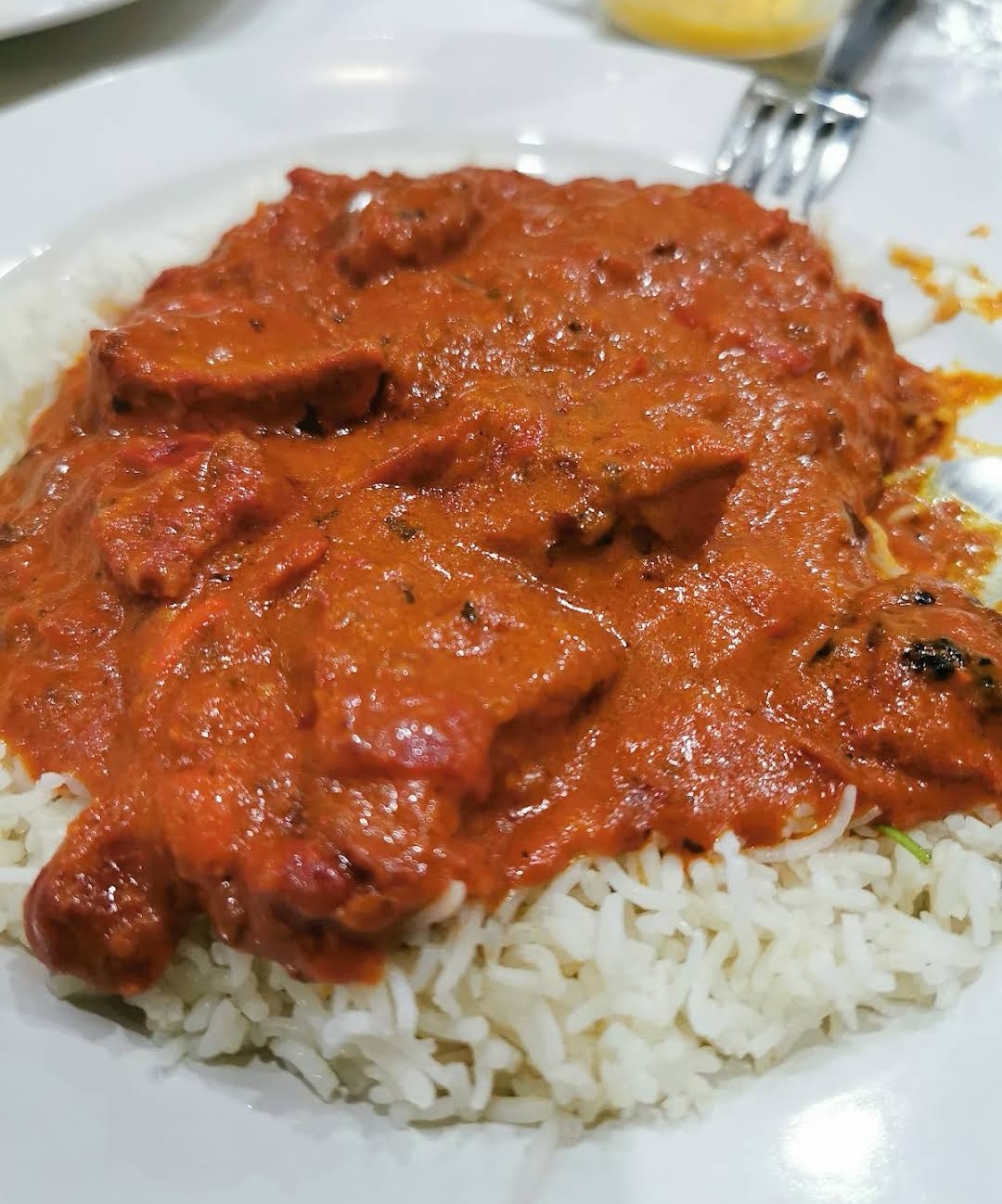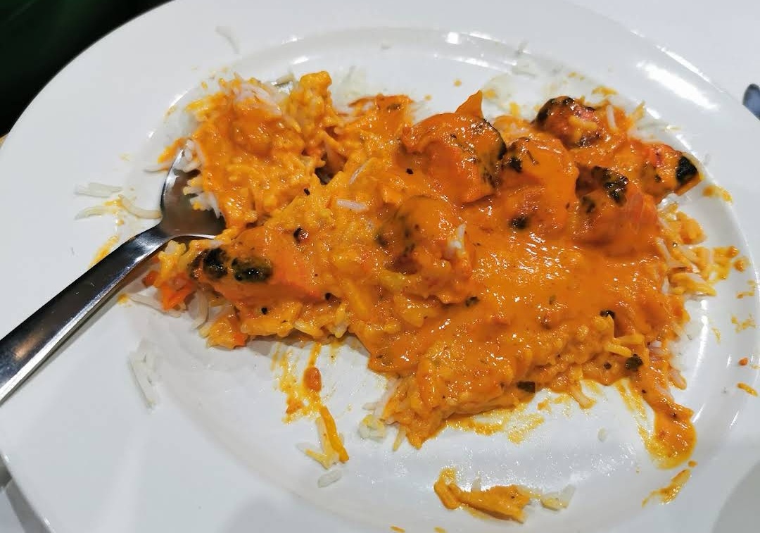 Je recommande ! Butter chicken accompagné de riz Kashmiri excellent ! J’y ai mangé sur place et en livraison via Uber et je me suis régalée à chaque fois. Foncez !
