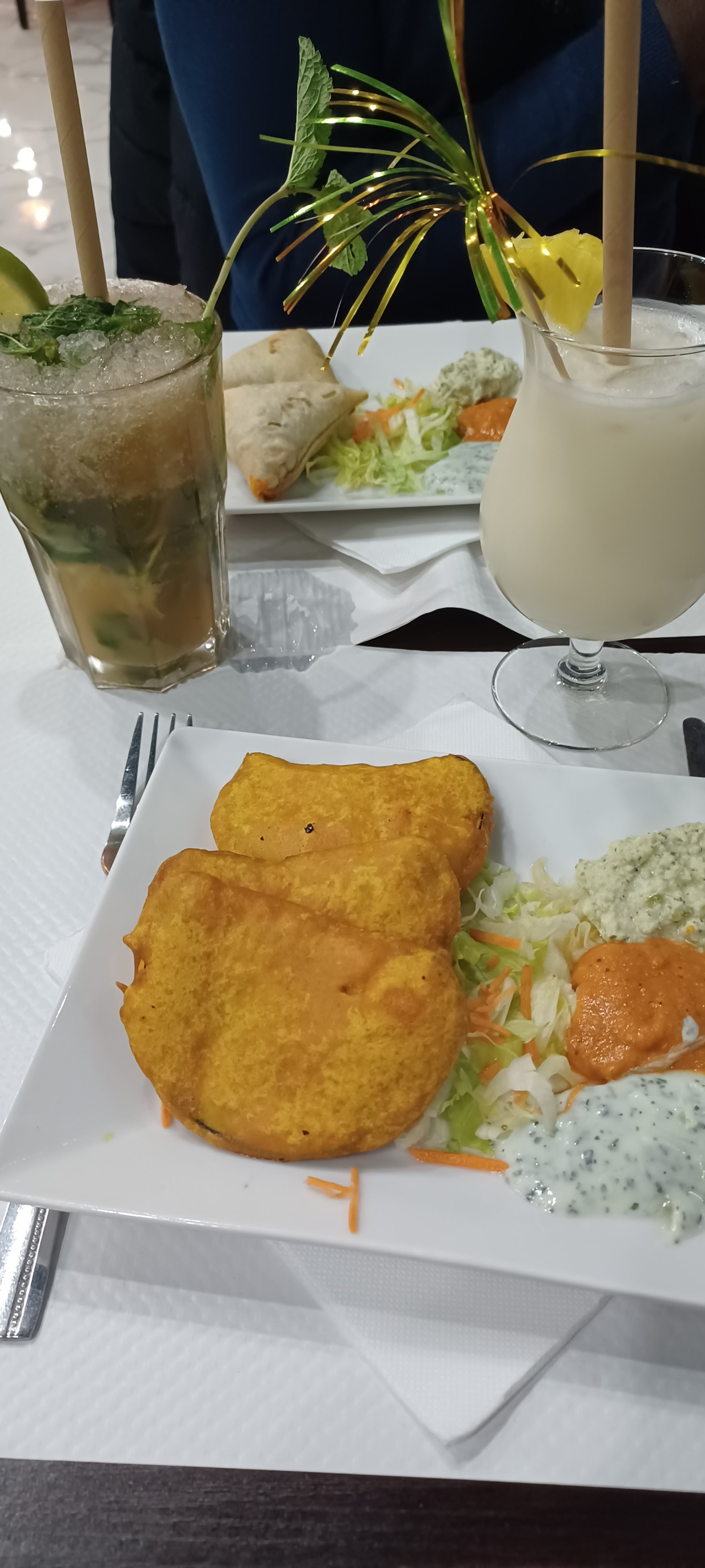 Accueil très chaleureux, ambiance très cosy ! Nous retirons une étoile pour les cocktails ( peu alcoolisés et un peu fade). En revanche la nourriture est divine ! Les samousa et des badji sont servi avec un trio de sauces il y en a pour tous les goûts ! Le Chili chicken qui nous a été recommandé par le personnel est délicieux ( un peu trop épicé pour moi mais mon copain a adoré). L'agneau au curry est divin et je ne parle même pas du poulet tikka masala ! Je recommande fortement. 😁