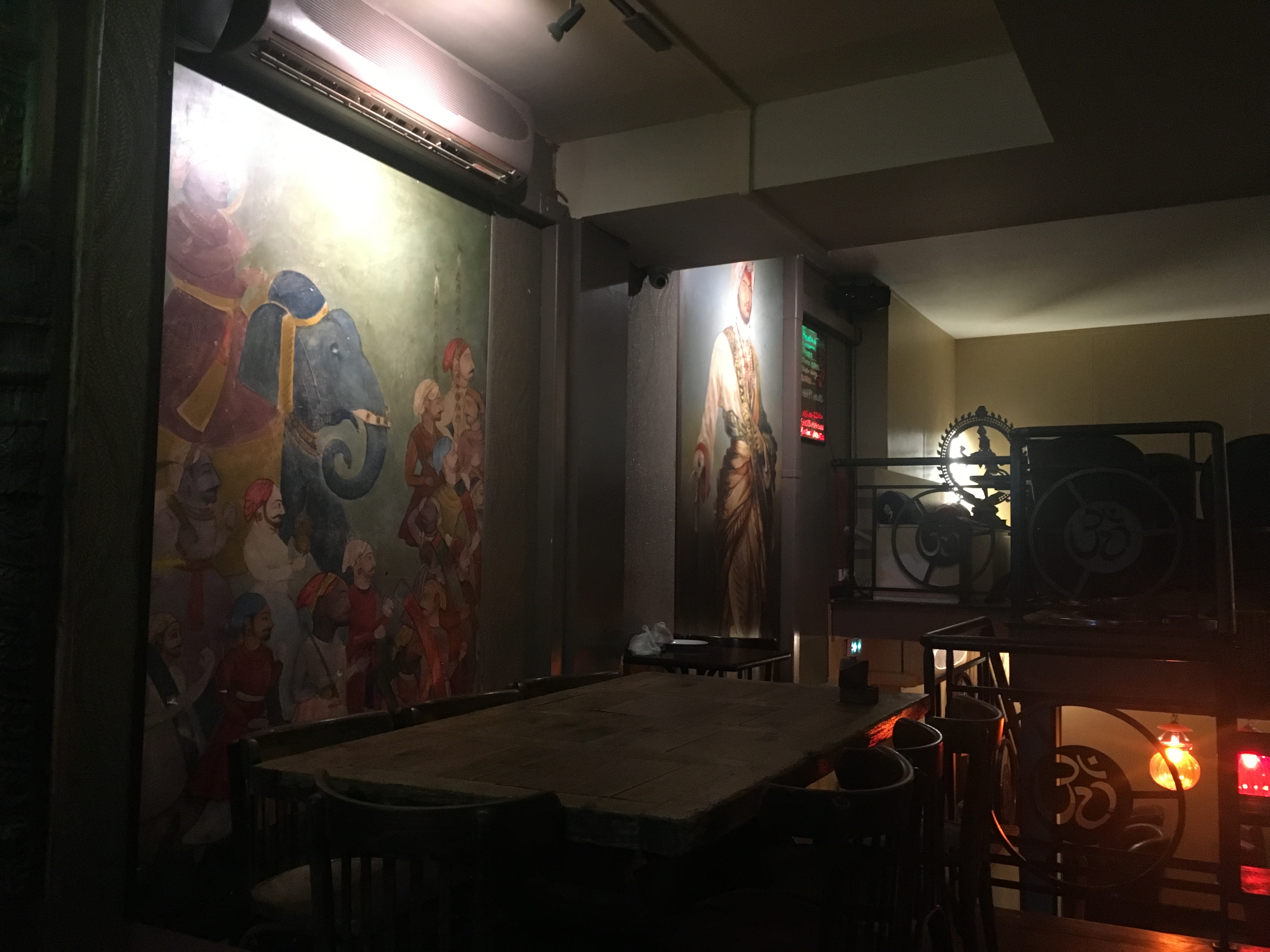 Bar assez grand et axé sur la déco indienne, cependant la musique est pas agréable, et à des moments trop forte ou pas assez. Bref rien d'exeptionnel.