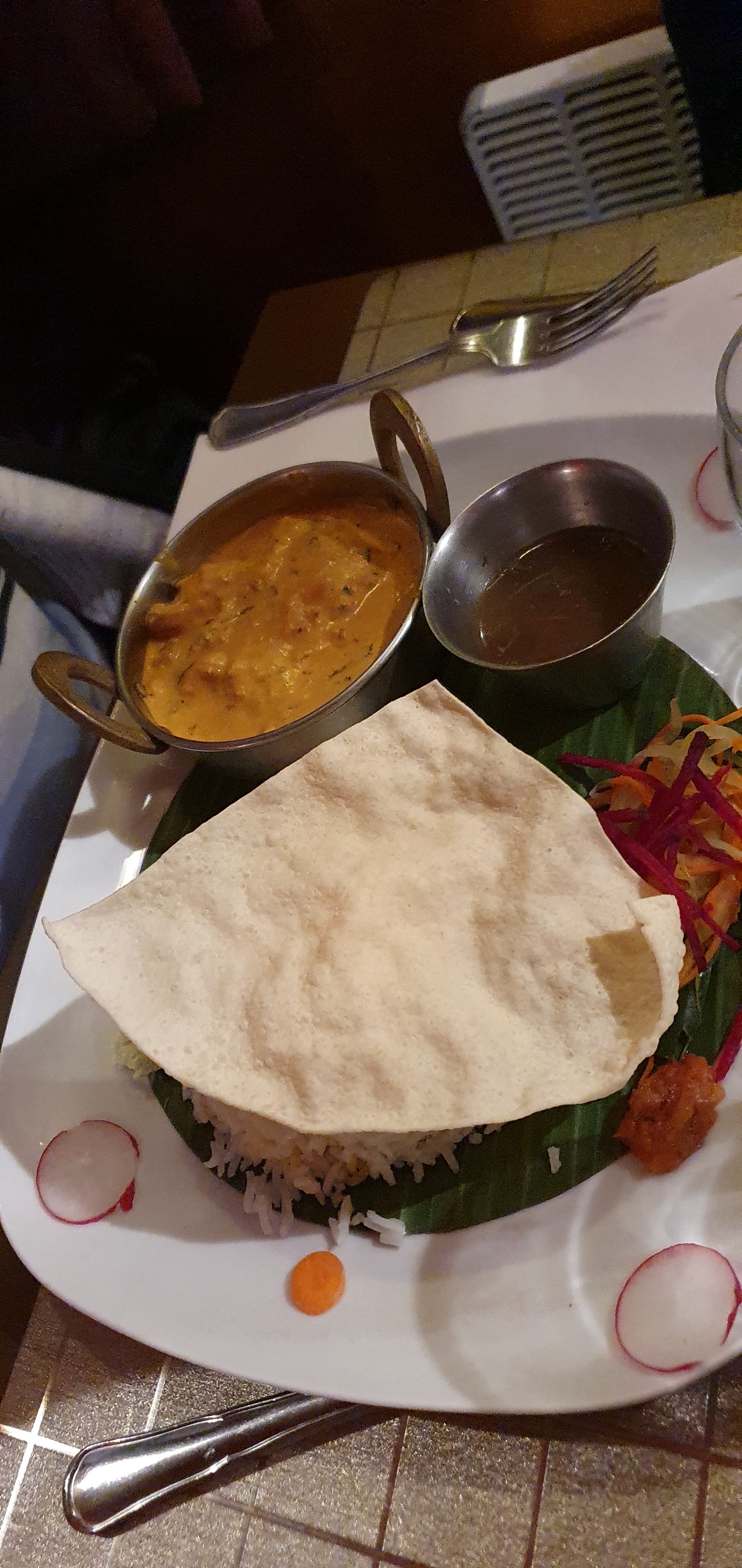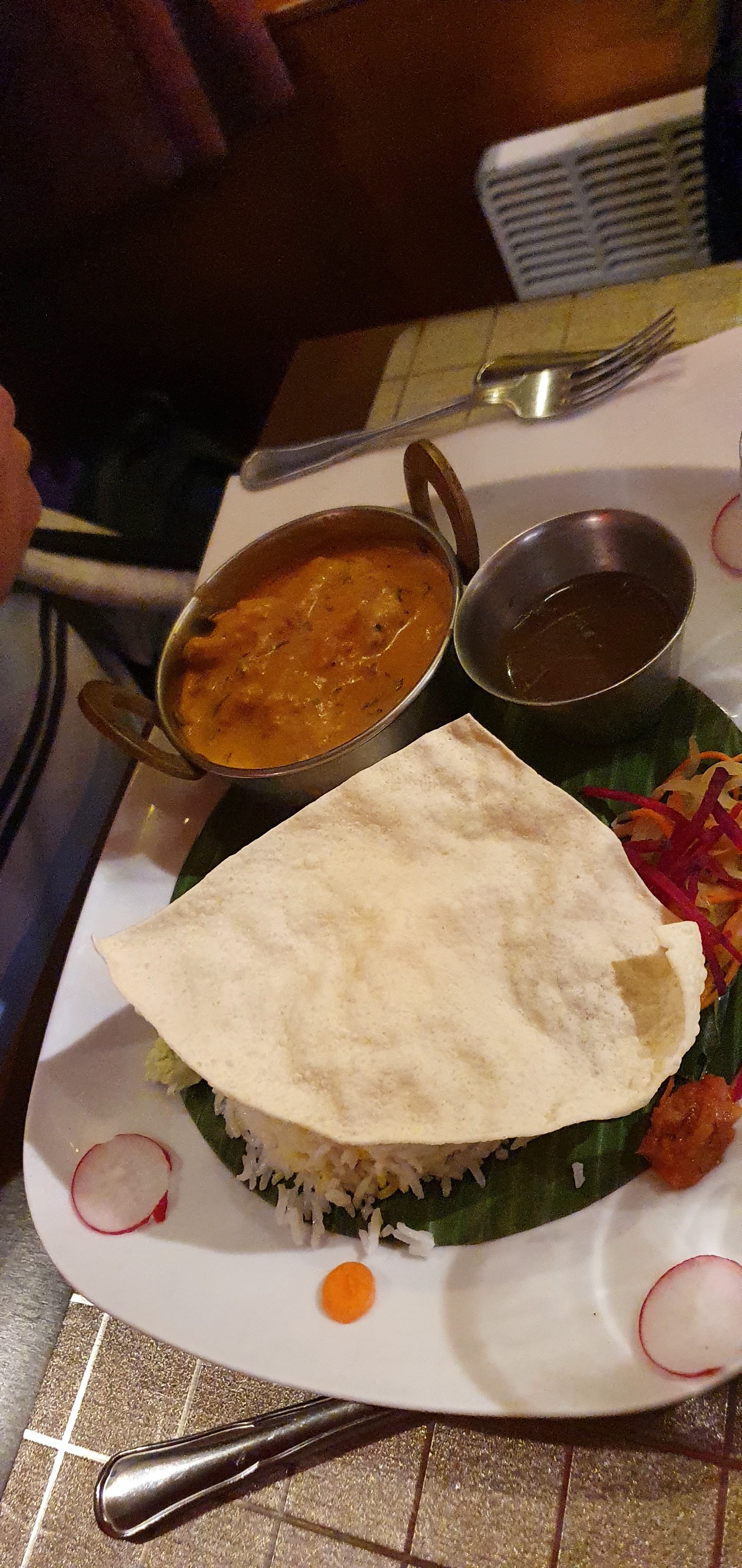 Super restaurant indien. Des plats raffinés,plein de saveurs. Copieux mais sans l'être trop (pas de gaspillage). Personnel agréable et rapide. Je recommande