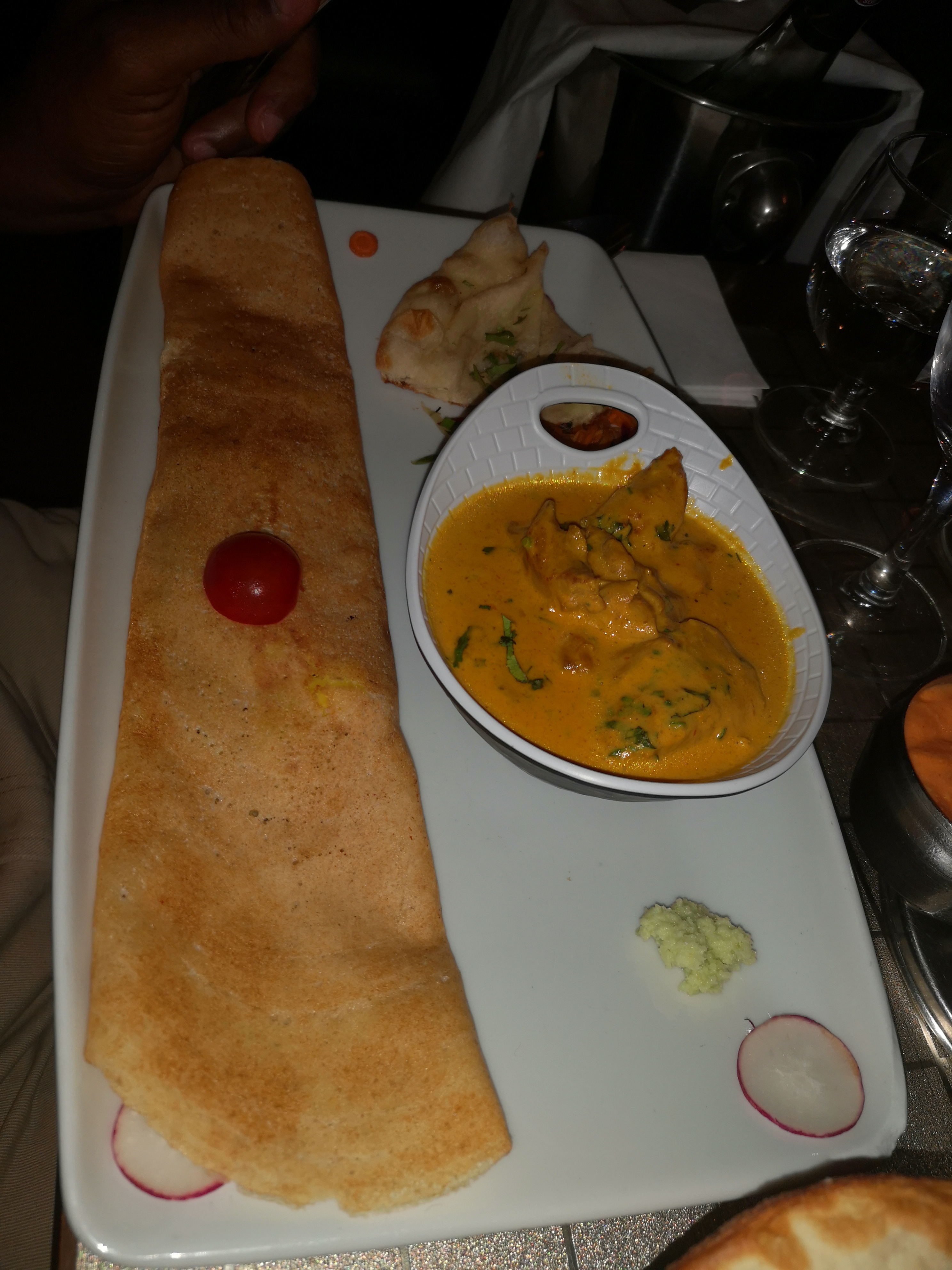 J'ai beaucoup aimé, les plats étaient fins et l'ambiance très bonne mais j'ai eu une énorme intoxication alimentaire dans la nuit qui a suivi. A part le biryani d'agneau, je ne vois pas ce qui aurait pu causer ca... Resto très bon mais attention à bien surveiller votre chaine de froid, j'ai vraiment été très malade et je n'ai rien mangé ni bu d'autre dans la soirée.