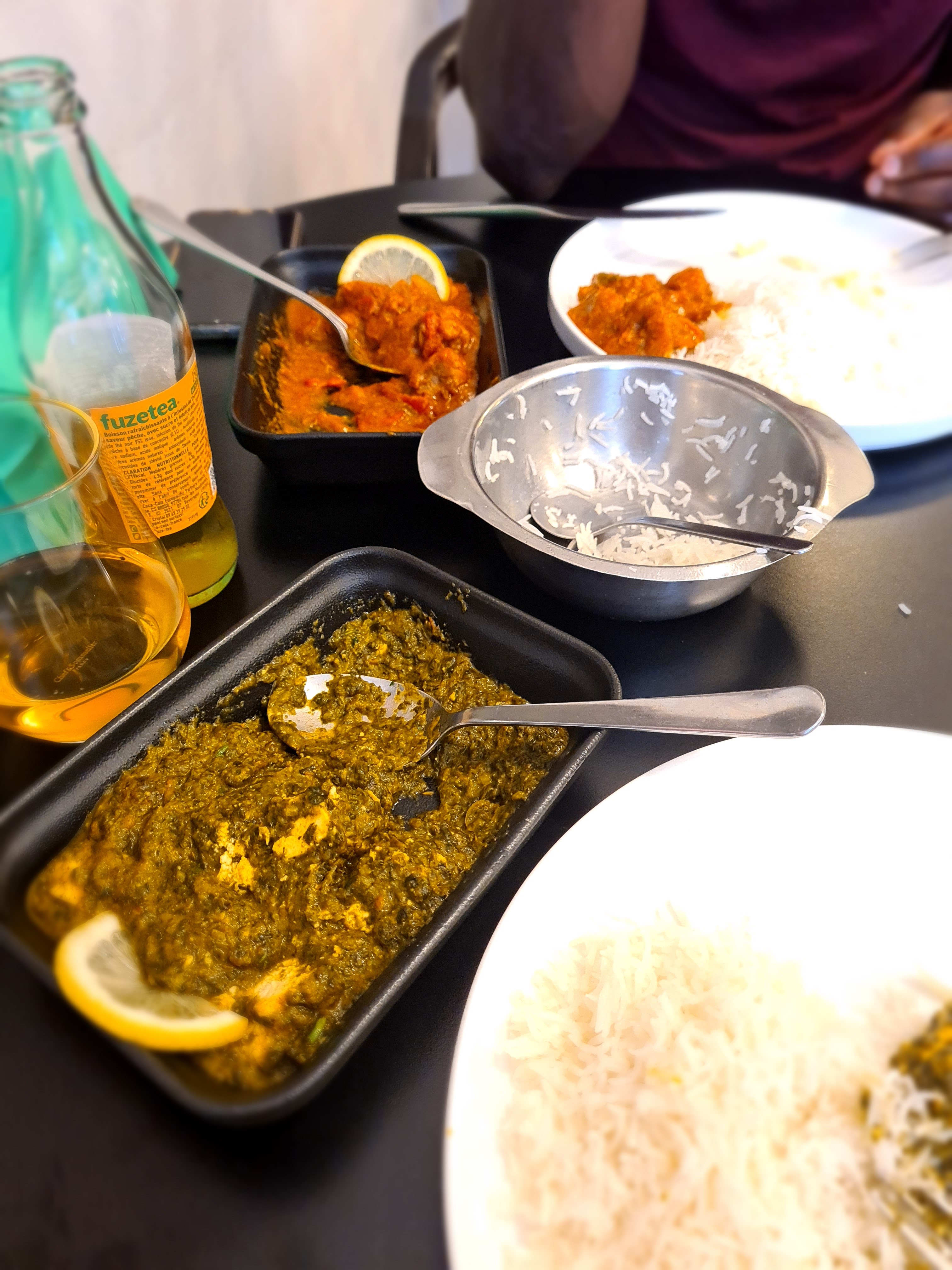 Un très bon accueil de la part du gérant et assez peu de monde pour un jeudi soir. Nous avons pris un byriani de poulet (relevé), des naans et pour ma part un agneau saag. Les plats étaient de qualités et les saveurs intéressantes, le petit plus : la galette servie comme apéritif était surprenante et l'ambiance, sur fond de clips bollywoodiens complète la toile. En résumé, c'était une excellente expérience et je n'hésiterai pas à y retourner !