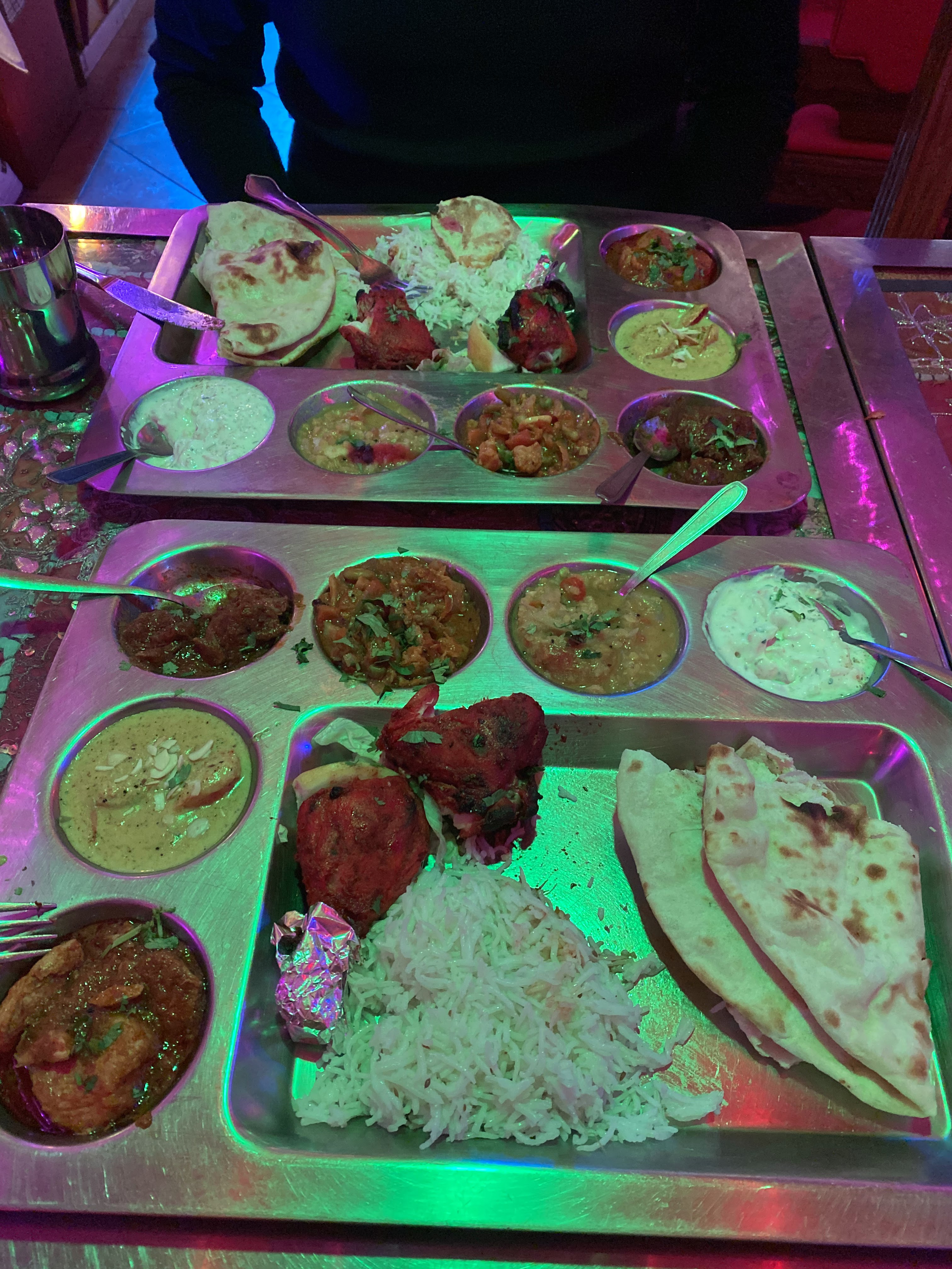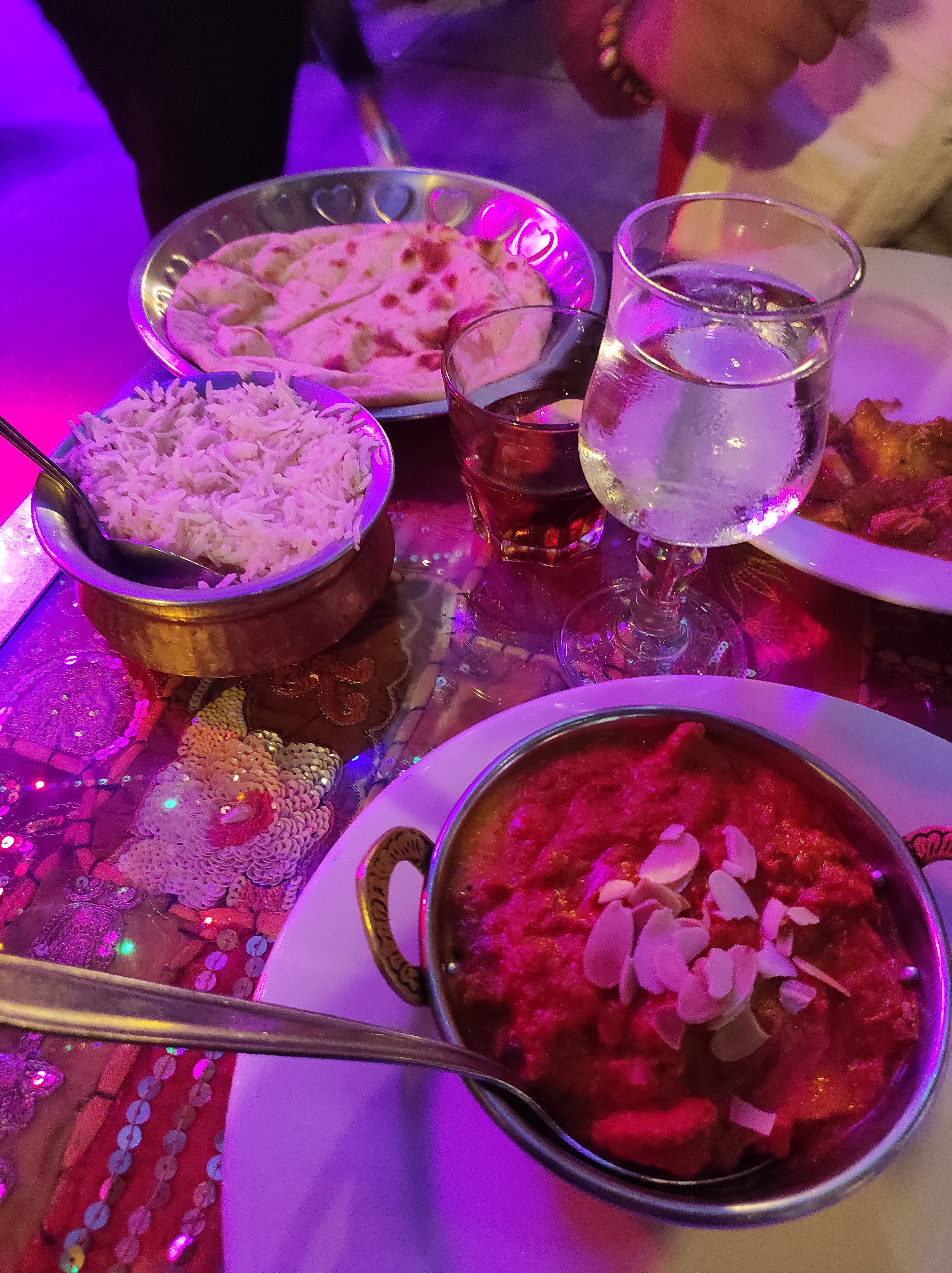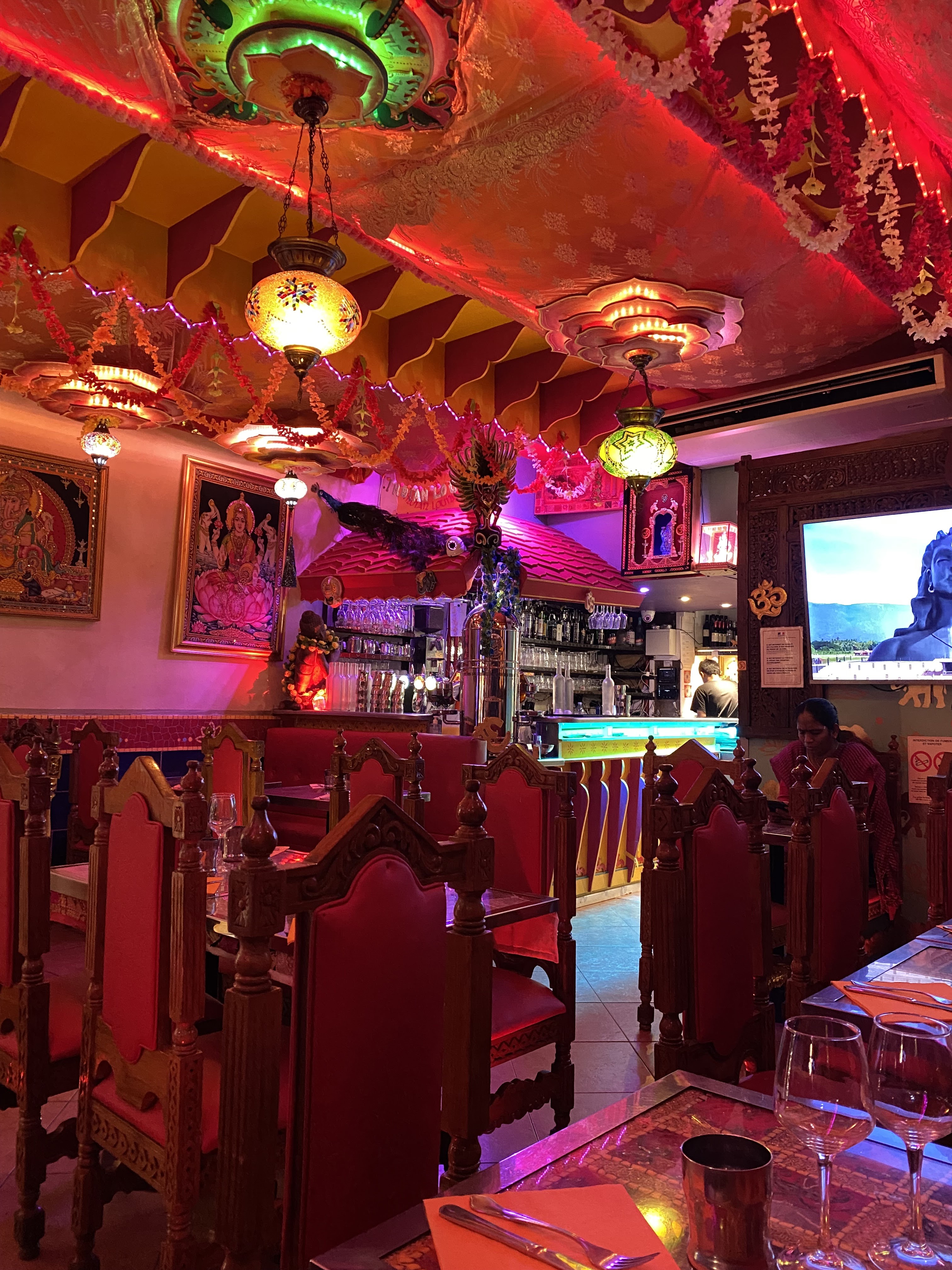 à peine arrivons nous devant le restaurant que l'ambiance est déjà posée : nous voilà en Inde! et le dépaysement est total dés que l'on passe la porte! les couleurs, les tables et les murs; c'est too much mais c'est ça qui est génial! moi j'adore! on vient dans un restaurant indien pour cela et si les saveurs sont aussi au rendez-vous et bien c'est gagné! nous voilà donc en train de siroter un Mango lassi en regardant des films bollywood tout en grignotant un nan... quoi de mieux! les proportions sont plus que généreuses et nous sommes en plus repartis avec nos morceaux de poulet tandoori bien moelleux pour la maison! MIAM. JE NE PEUX QUE RECOMMANDER CE SUPERBE RESTAURANT! Je viens très souvent manger dans ce restaurant depuis 2017 et c'est toujours très très bien!