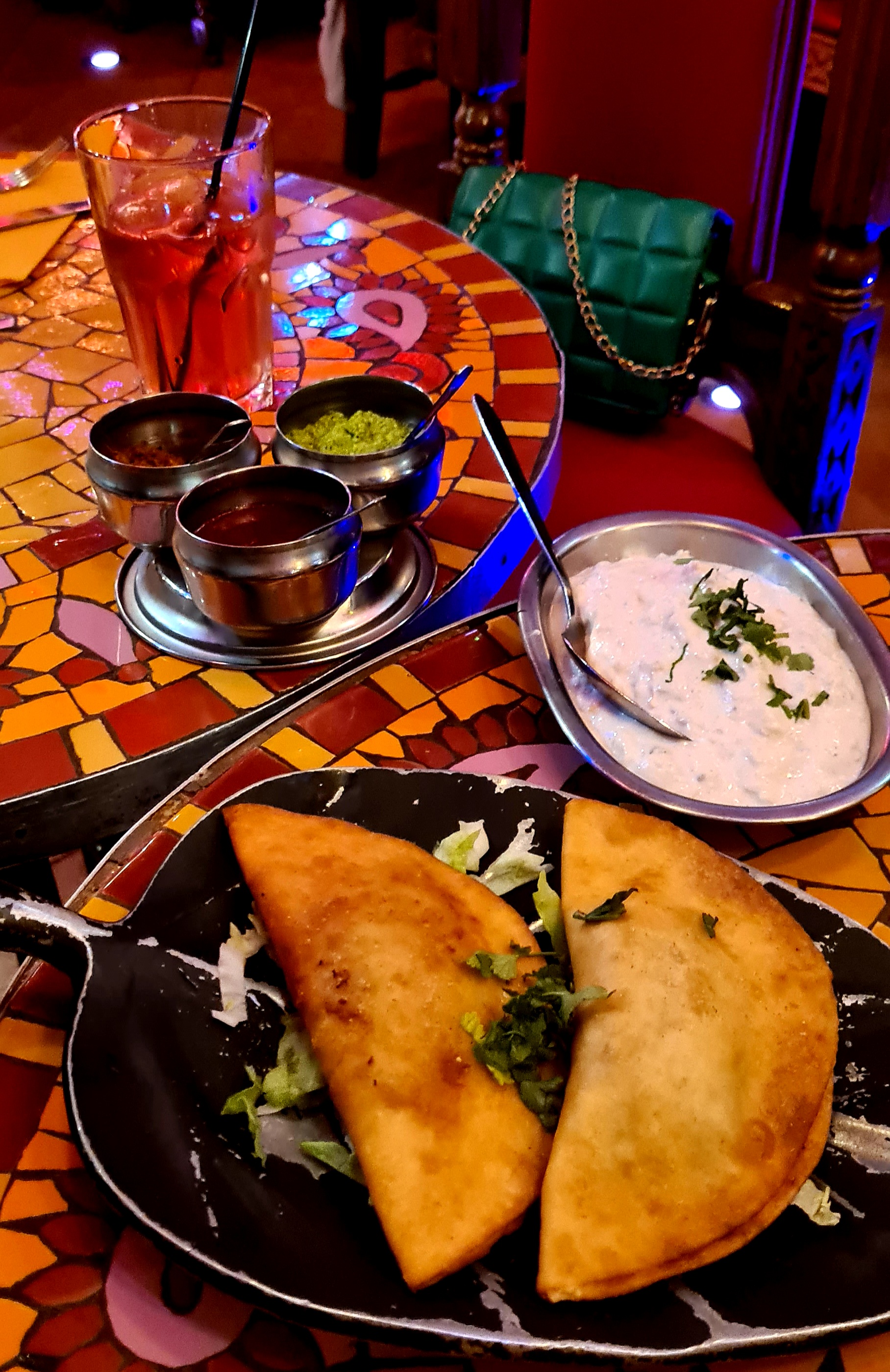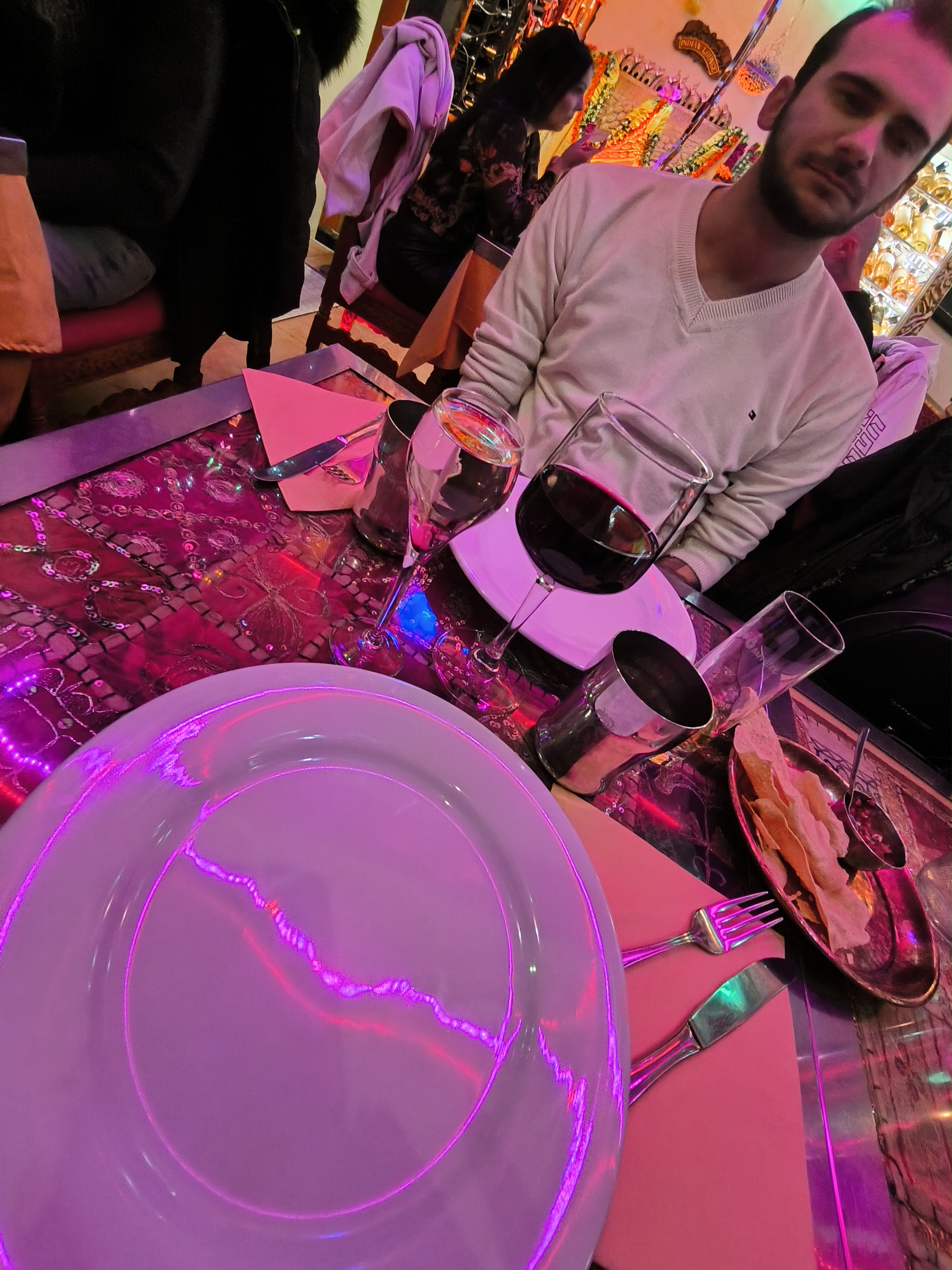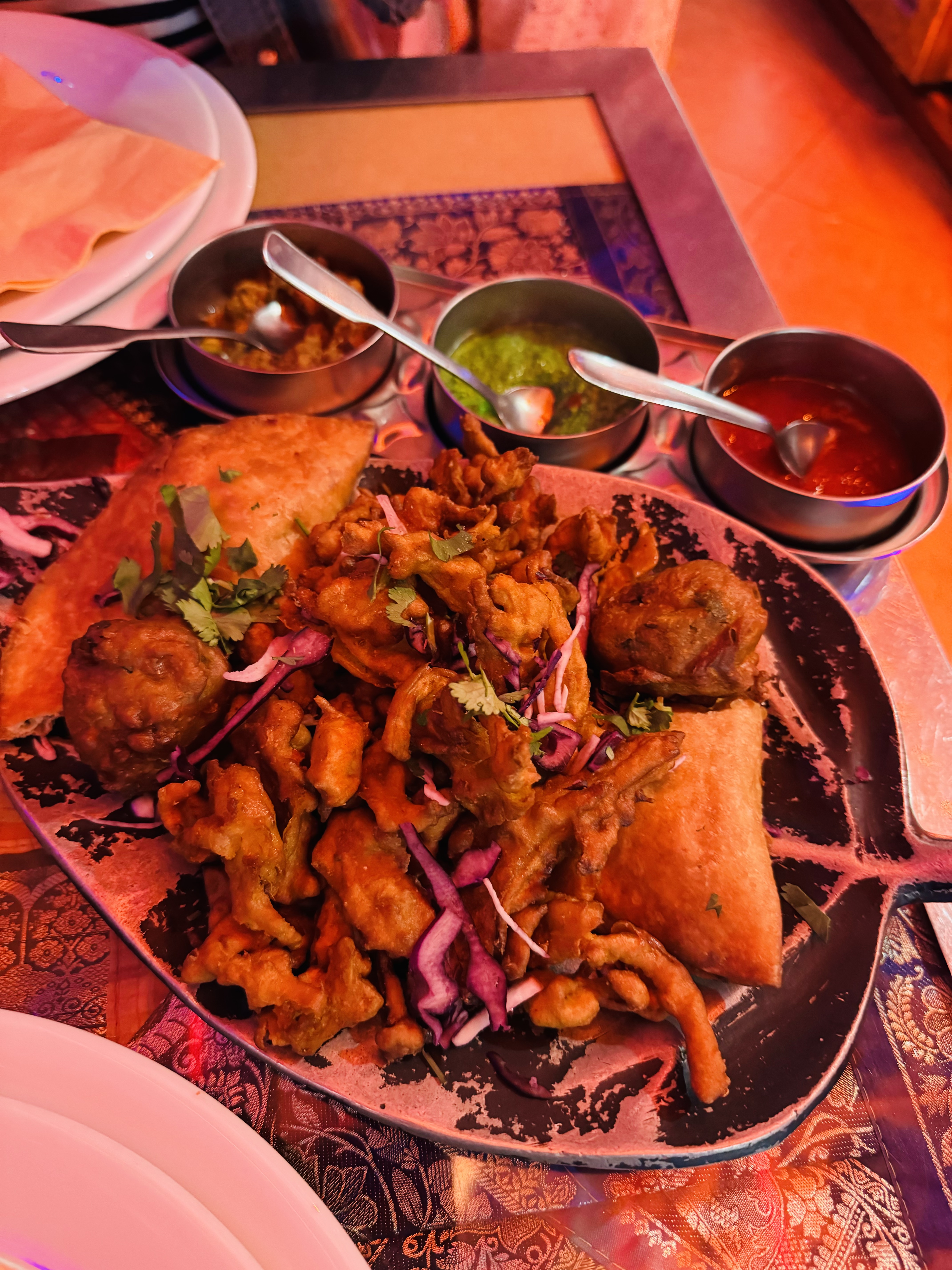 à peine arrivons nous devant le restaurant que l'ambiance est déjà posée : nous voilà en Inde! et le dépaysement est total dés que l'on passe la porte! les couleurs, les tables et les murs; c'est too much mais c'est ça qui est génial! moi j'adore! on vient dans un restaurant indien pour cela et si les saveurs sont aussi au rendez-vous et bien c'est gagné! nous voilà donc en train de siroter un Mango lassi en regardant des films bollywood tout en grignotant un nan... quoi de mieux! les proportions sont plus que généreuses et nous sommes en plus repartis avec nos morceaux de poulet tandoori bien moelleux pour la maison! MIAM. JE NE PEUX QUE RECOMMANDER CE SUPERBE RESTAURANT! Je viens très souvent manger dans ce restaurant depuis 2017 et c'est toujours très très bien!