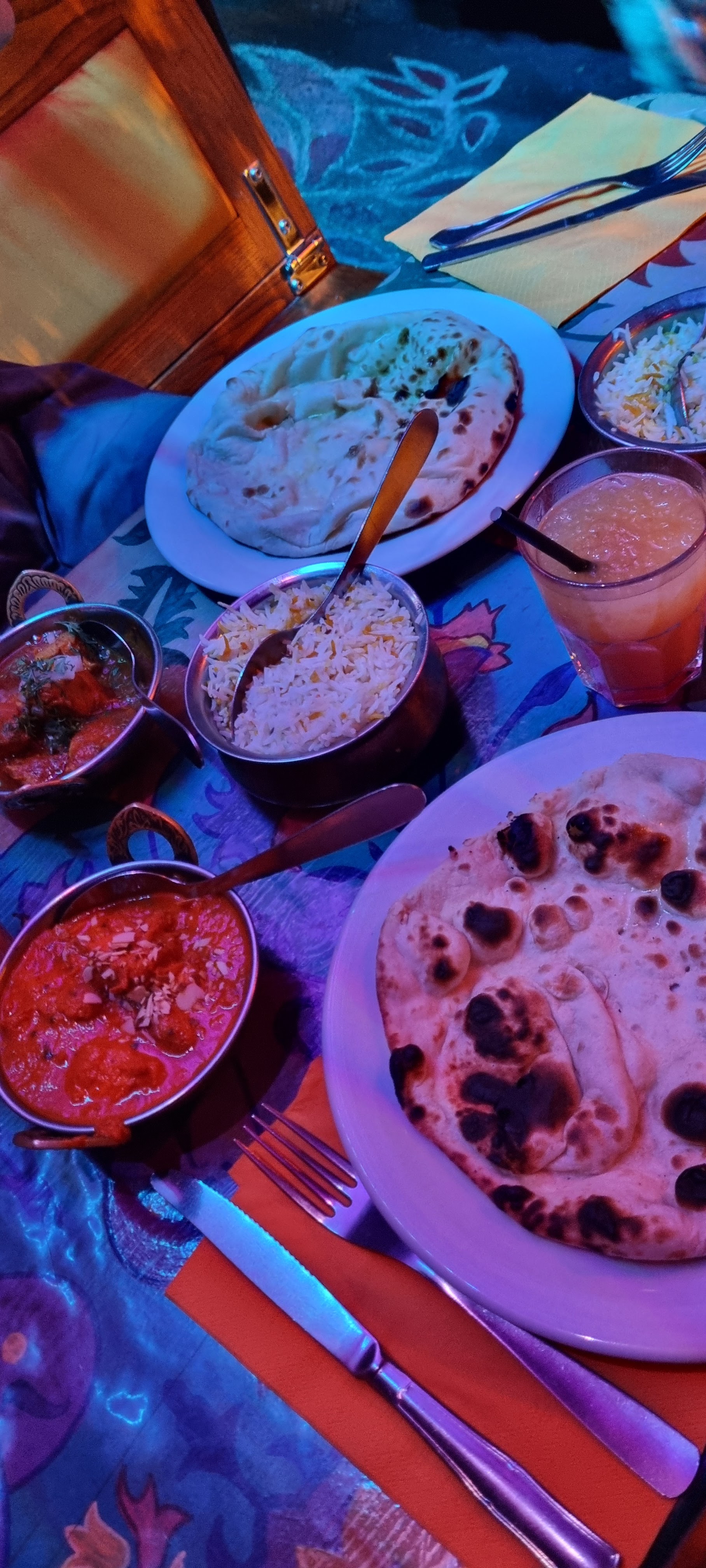Personnel accueillant et très gentil. En revanche les plats proposés ne sont pas de qualité. En effet, nous avons été déçu par les cheese nan qui manquaient clairement de cheese. Le chicken butter a été servi avec quelques morceaux d'os. De plus, les jus de fruits ne sont pas faits avec des produits frais. Sinon le cadre et la décoration extérieure est assez originale et sympa. Dommage que la cuisine ne soit pas vraiment à la hauteur...