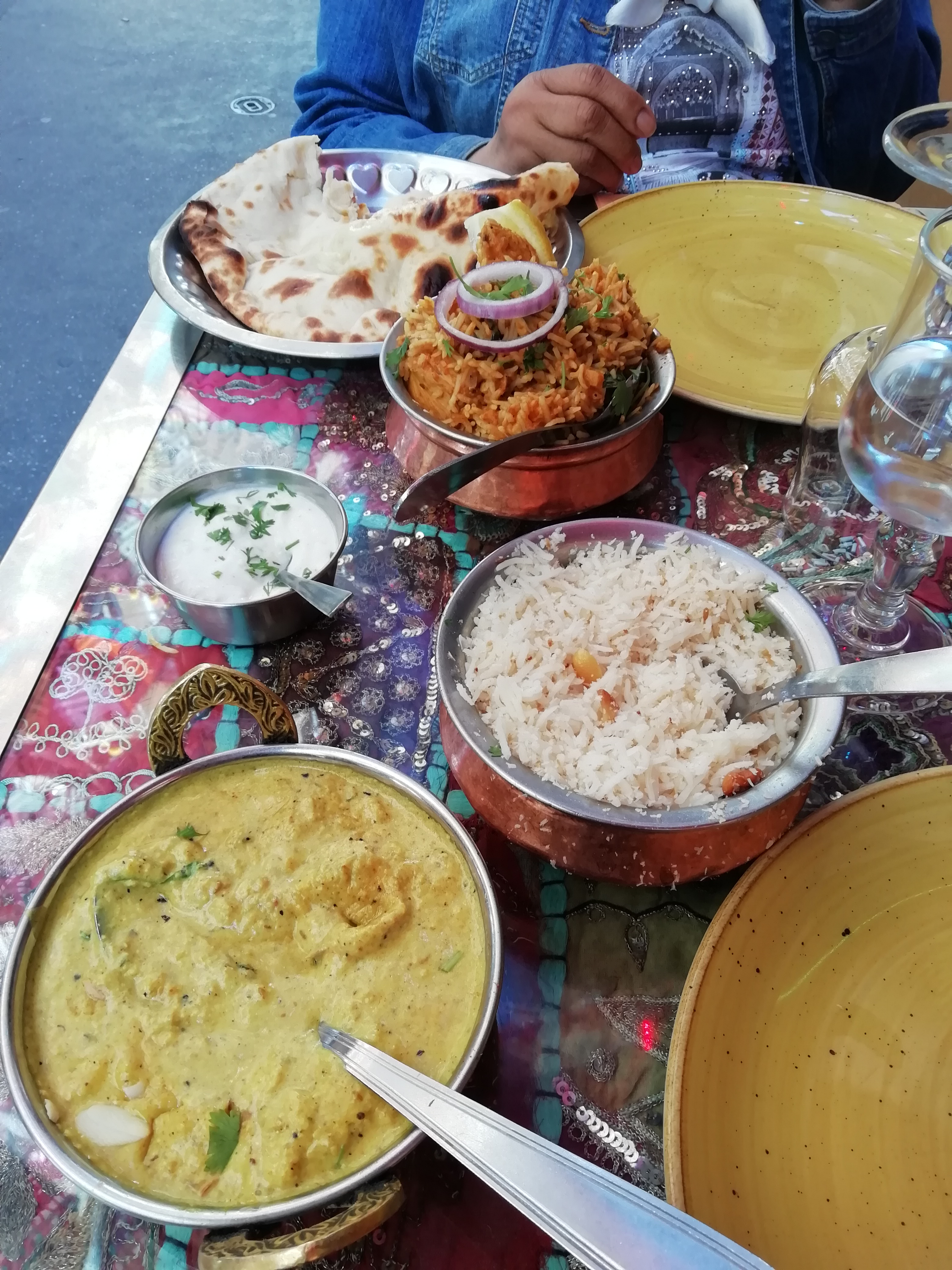 Restaurant indien avec une nourriture très bonne. Les plats sont épicés avec des épices variées et goûteuses. Le menu découverte à 25 € vos le prix. Les goûts sont variés et relevés à la perfection. Les tables à l extérieur sont atypiques, on se croirait dans un wagon train avec une décoration indienne.