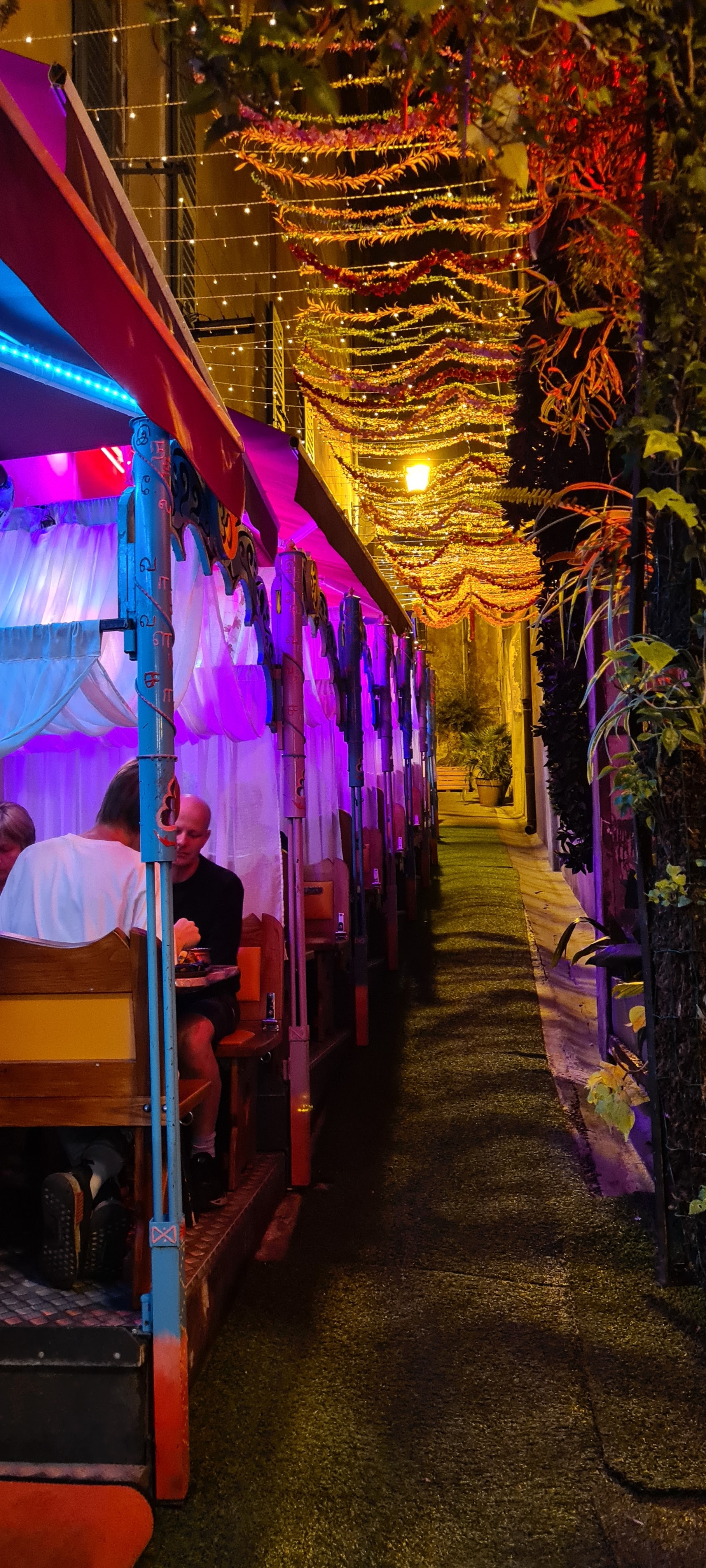 Magnifique décor dépaysant. Cuisine et service au top. Un peu bruyant aux heures de pointe. Prix corrects. Et dès qu'il fait bon, manger dehors sous les petites tentes-alcôves est une expérience inoubliable.