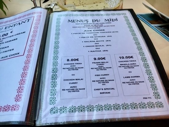 Excellent restaurant indien, personnel agréable surtout la barmaid + qui répond au téléphone souriante très agréable et de très bon conseil !
