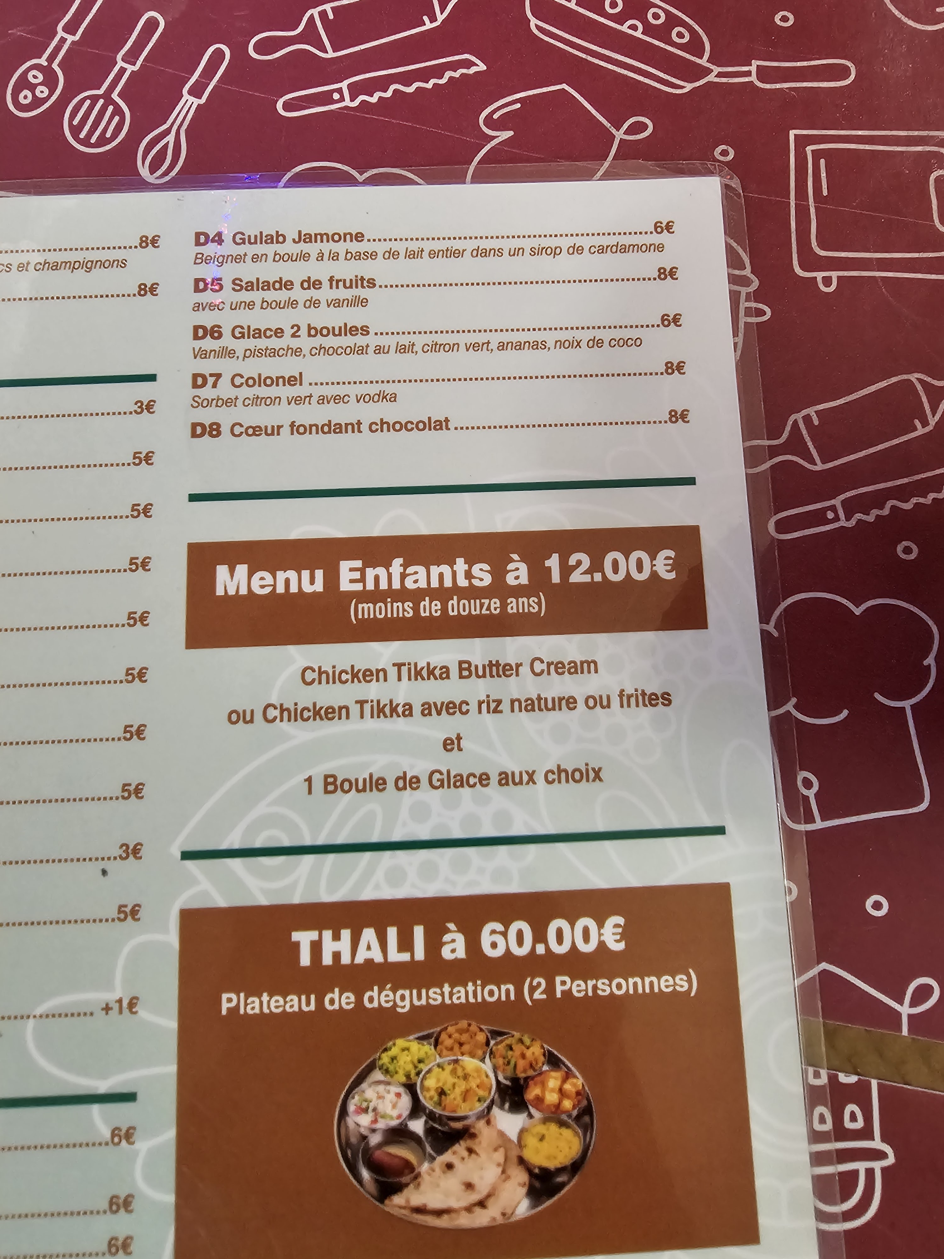 C'est bon mais facturer 12€ un poulet biryani alors qu'on a essentiellement du riz, ça fait un peu cher. révisez vos tarifs à la baisse. 4€ un nan...c''est n'importe quoi.