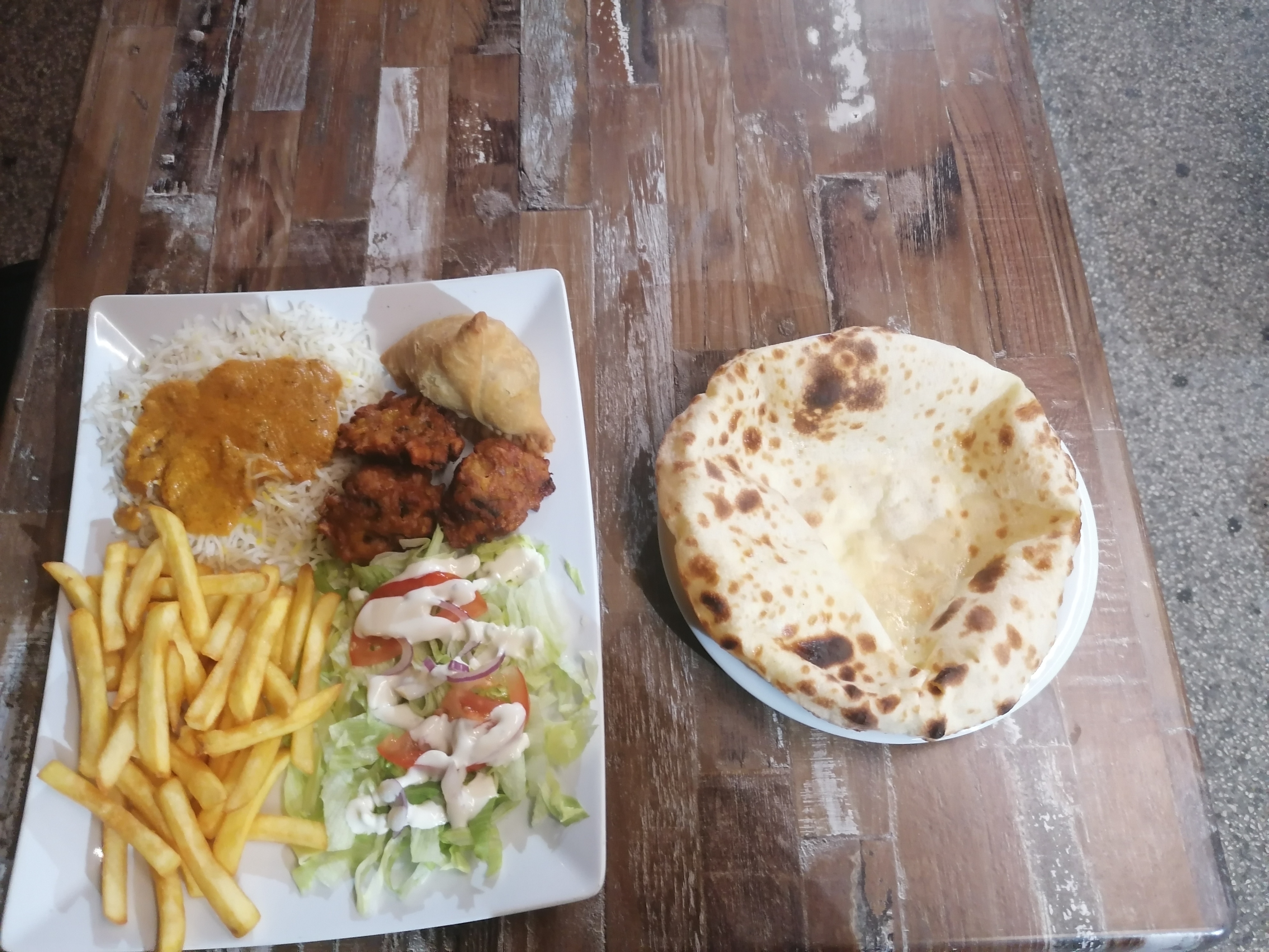 Prix correct, beignets de légumes(pakora ?) et samosa étaient bons. Naan est très bon et frais . Burger n’était pas top car ça se voit que la garniture toute surgelée... mais pour le prix (5€-) ça va . Points négatifs : Pas assez de sauce et l’équipe pas agréable sans sourire. Pas très commerçant comme service.