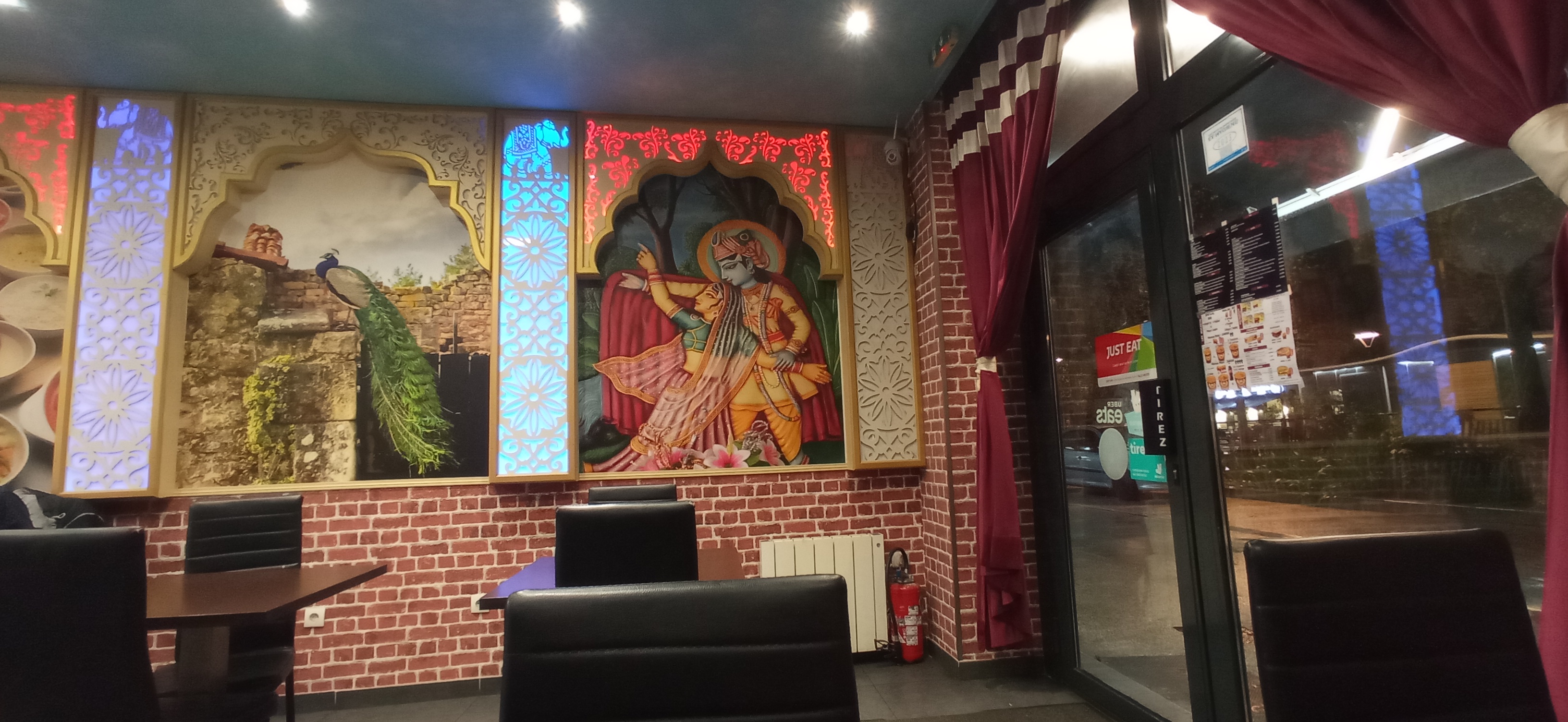 Le restaurant les décos sont jolies au thème indien et la nourriture est bonne le meilleur resto que j'ai mangé cette année l'attente et bien les employés sont parfaits que du bon je recommande