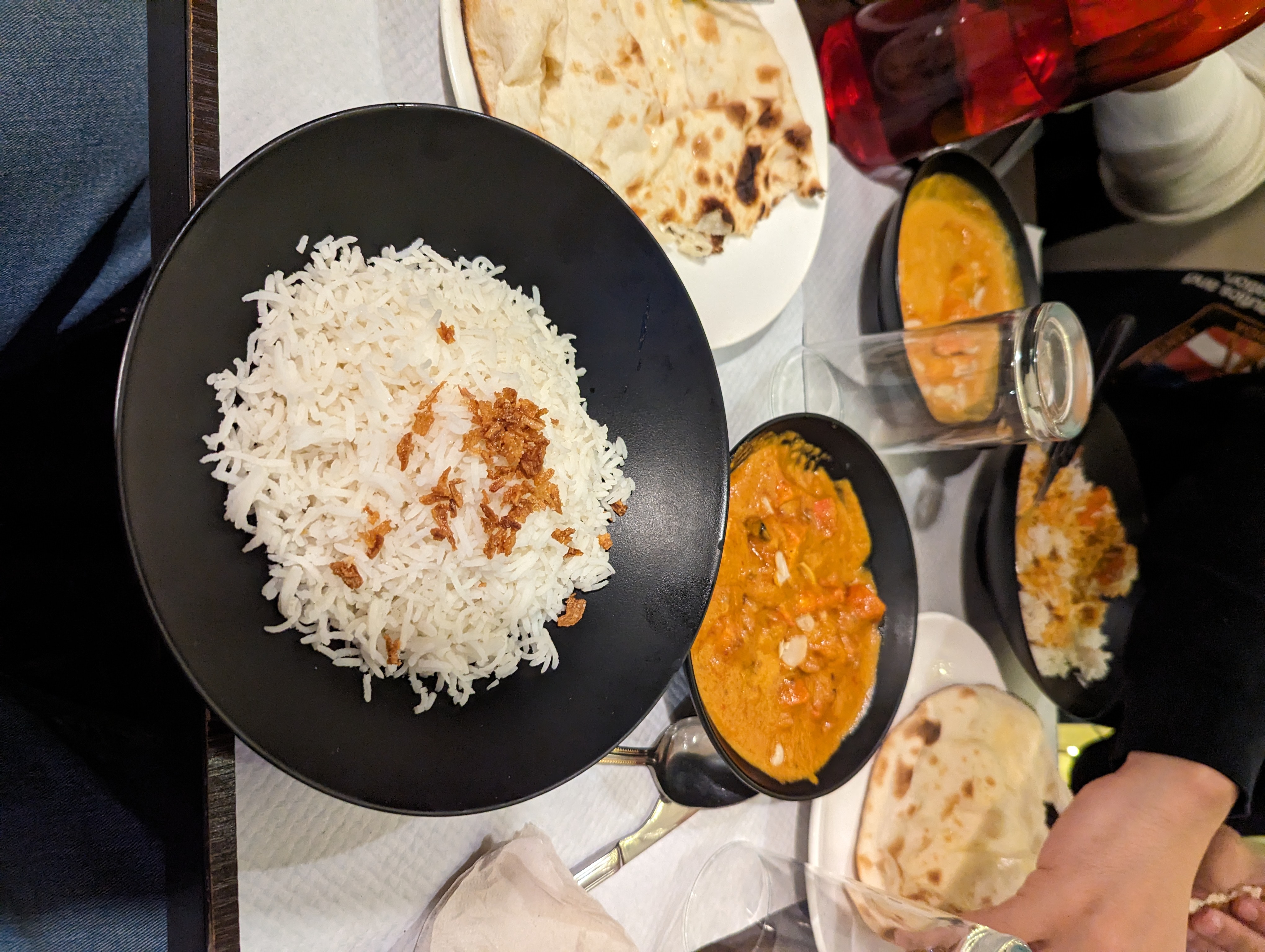 C’est un bon restaurant dans l’ensemble serveuse très accueillante. cheese naan et soupe très bonne en revanche les quantités sont minime (soupe, riz et poulet) ça ne cale pas. Un lassi qui coûte 6€ je veux bien mais pas moitié mousse/moitié lassi, manque de sucre et pas aussi frais que ceux que je l’ai l’habitude de boire. (Lassi rose) Les plats restent très bon, il faudrait revoir les quantités ou revoir les prix à la baisse pour les quantités.