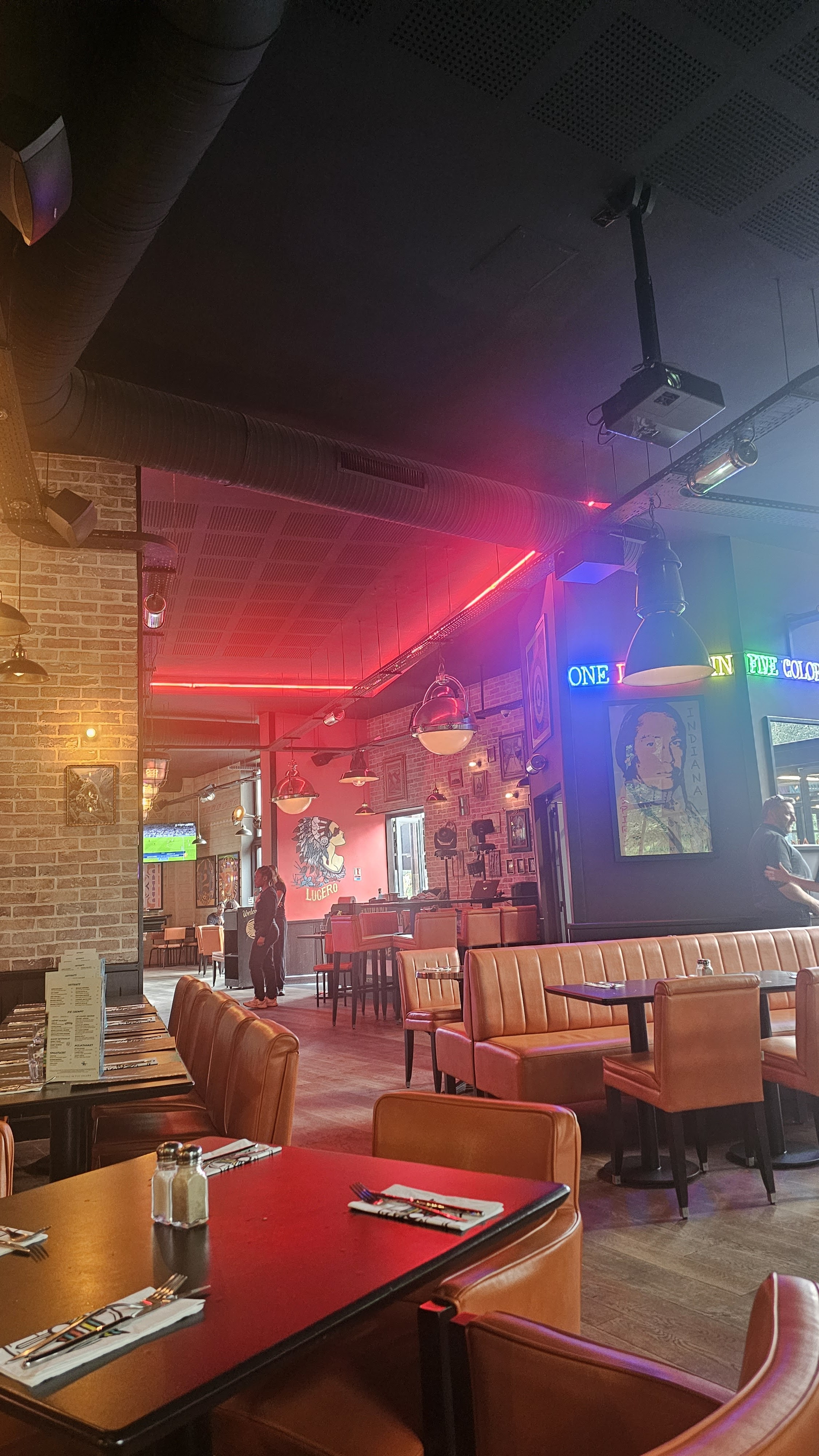Je suis venue manger la semaine passée avec toute ma famille un soir de semaine. Nous avons commencé par commander des Tapas et des cocktails ( le cocktail du mois recommandé par notre serveuse était super !). Les tapas était plutôt bon et très copieux ! Pour les plats, nous avons beaucoup aimé les plats mexicains, moins les burgers. La musique était sympa, bonne ambiance. Merci beaucoup à notre serveuse Amy qui a été tout le long du service adorable, faisant tous les efforts pour nous apporter un super service, TOP ! 👍 Je recommande fortement !!