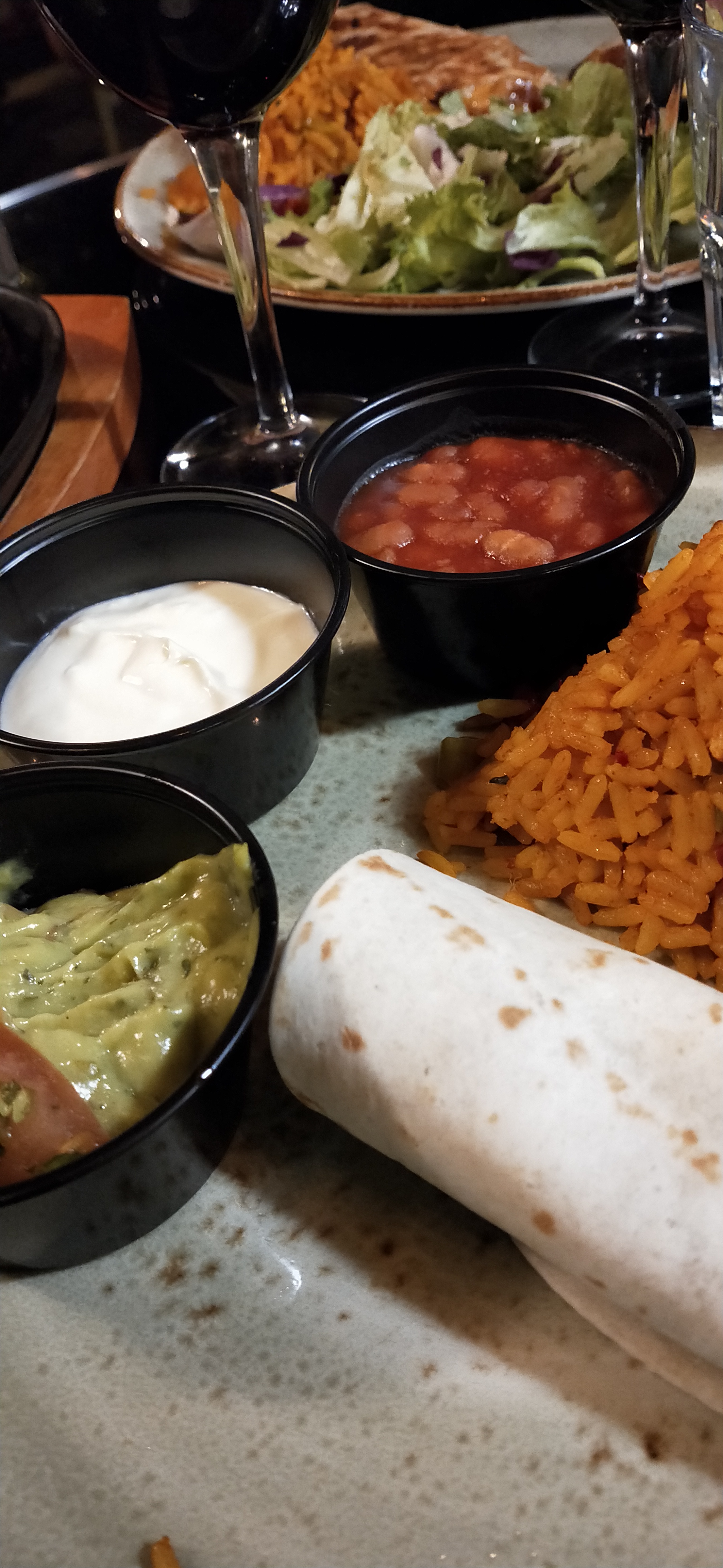 Et bien pour le Mojito ça allait.. Mais par contre pour mon burrito poulet il manquait la salade... Sur la photo elle y est... Et le burrito fourré au riz et servi au riz, je n'appelle pas ça un burrito... Normalement il y a des haricots rouges, des tomates, du fromage râpé.... Non ?... M'enfin !!!