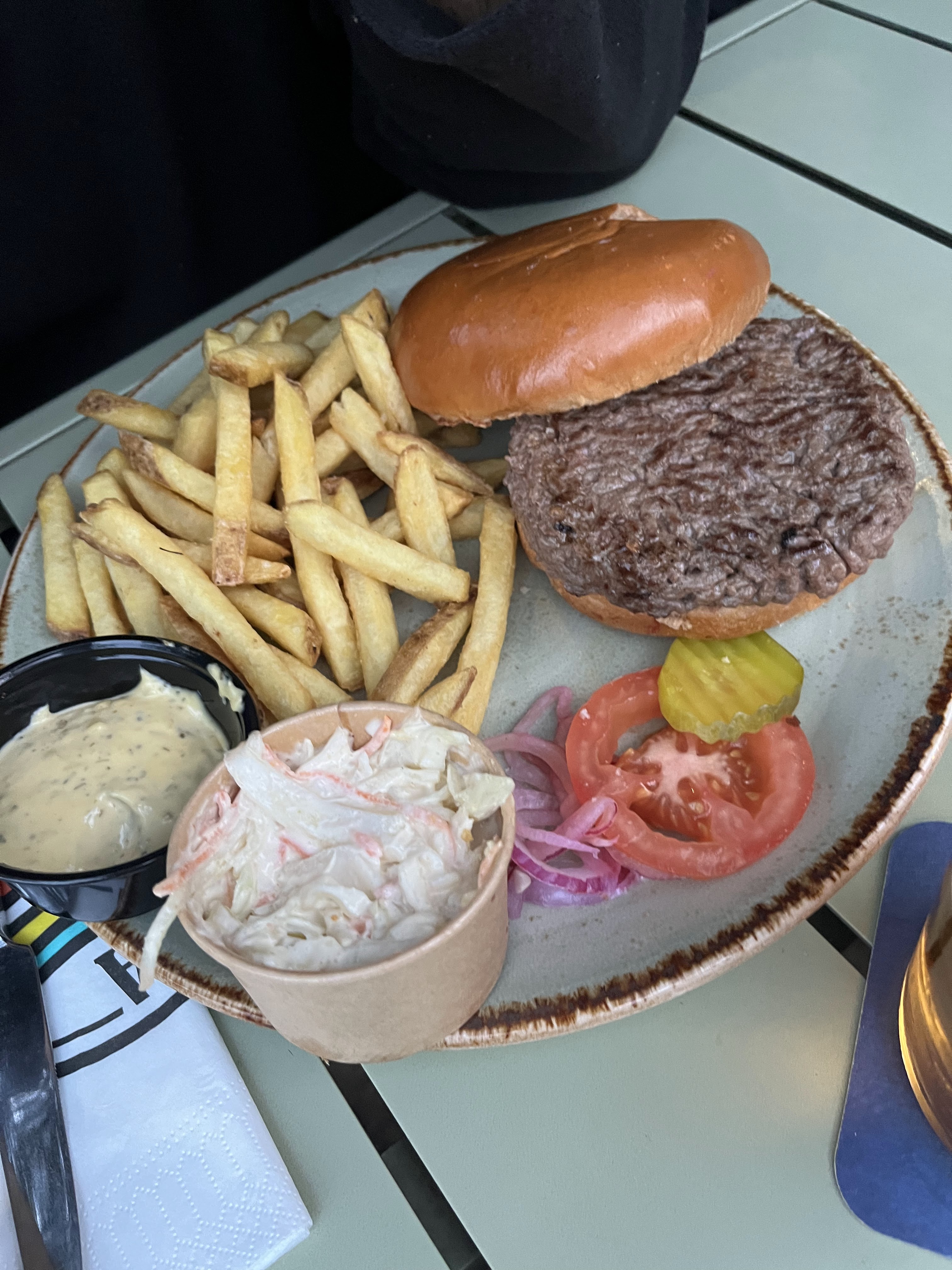 La serveuse était très gentille et souriante elle était parfaite. Nous avons commandé 2 burgers et les 2 étaient vraiment très bons nous nous sommes régalés ! Les prix au premier abord paraissent chers mais pour la quantité qu'il y a dans les assiettes le prix un peu élevé est totalement justifié. Non y retournerons et je recommande ce restaurant ! ☺️