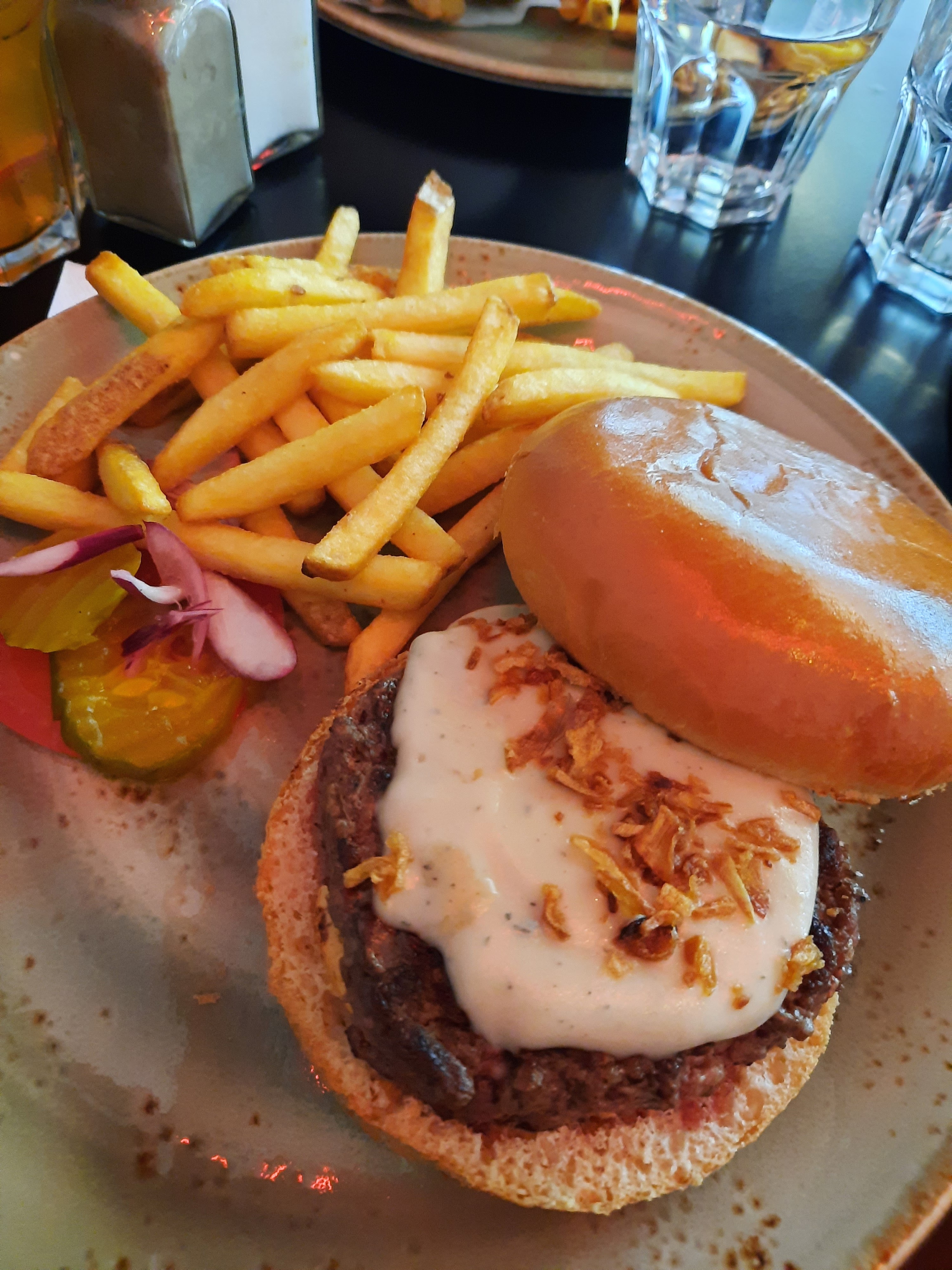 J’ai mangé hier midi, très jolie deco, le repas était bon, j’ai pris le blue cheese et j’ai vraiment adoré