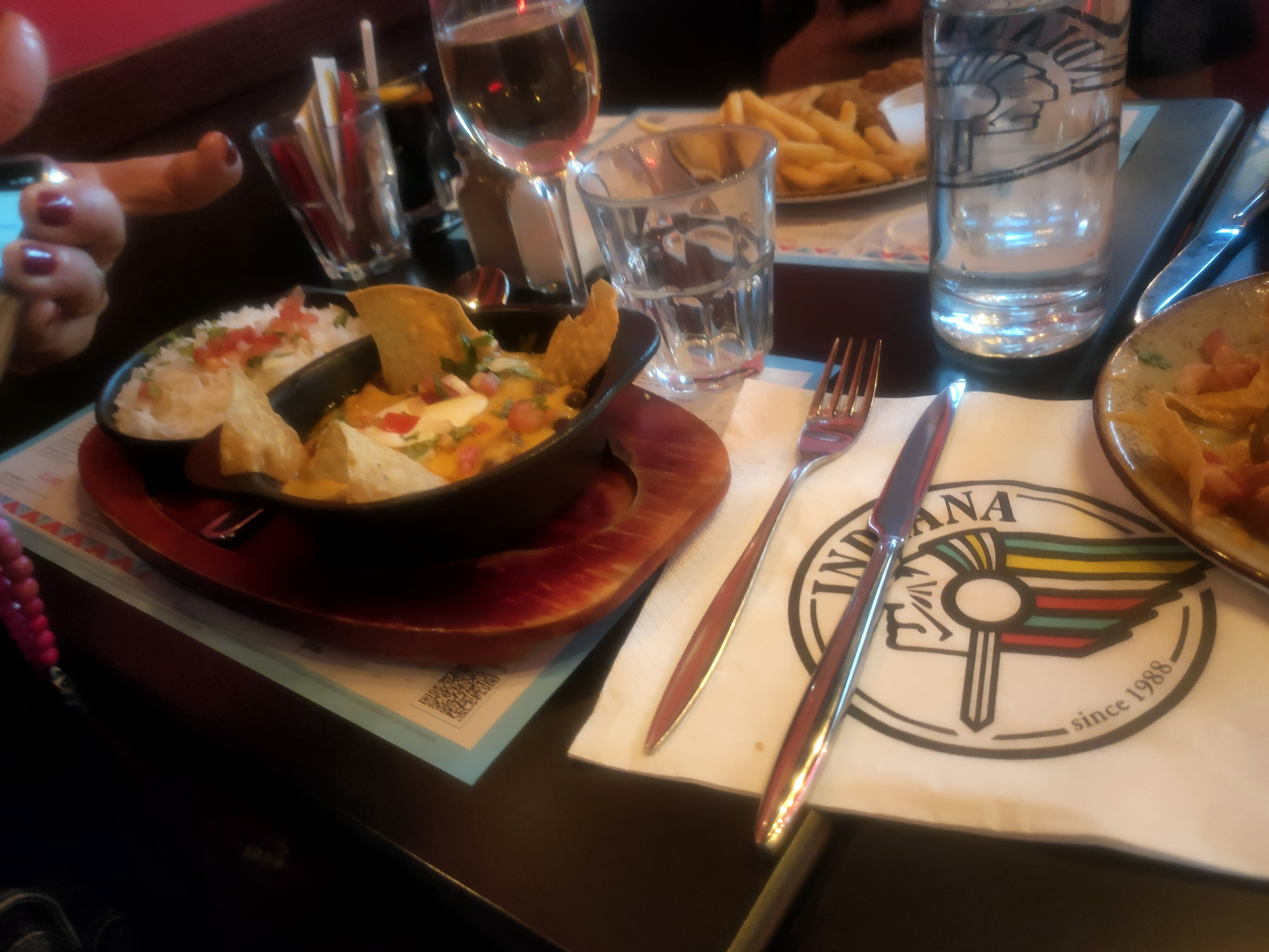 Très très mauvaise expérience, j'ai fais une intoxication alimentaire à 3h du matin après avoir manger dans ce restaurant. Je précise que je n ai manger rien d autre cette journée là donc il n y a pas de doutes sur l origine de cette intoxication. En entrée nous avions pris les Nachos Indiana qui semblaient avoir été réchauffé au four, l assiette était brûlante mais le repas juste chaud. Ensuite j ai pris un Bacon cheese burger, et en dessert un brownie. J ai cru mourir tellement je me suis vider après ce repas. Vous devriez revoir vos protocoles sanitaire dans votre cuisine. Une signalisation à été faite de mon coté.