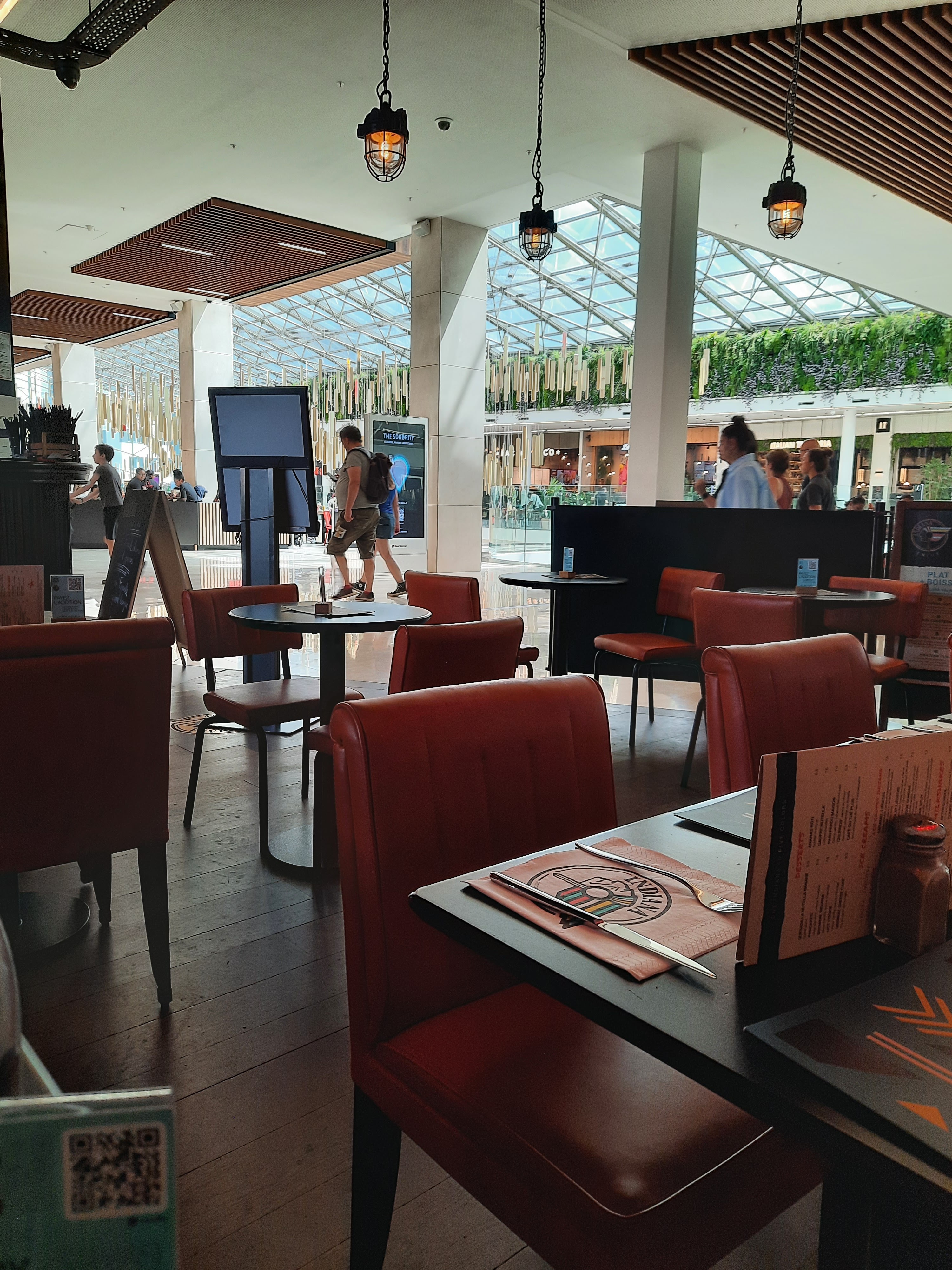Très déçu de notre passage. Nous avions envie d'un bon Burger et nous avons vite déchanté..... deux pains froid avec un steak voilà... annoncé sur la carte servi avec coleslaw et frites, nous cherchons encore le coleslaw et les frites...du décongelé. La personne à l'entrée n'a pas été recruté pour son sourire... Heureusement notre serveur était très aimable et serviable, seul point positif de ce moment.... Je ne vous recommande pas du tout cette chaîne dans la multitude de restaurants de ce centre commercial, les voisins doivent être meilleurs !