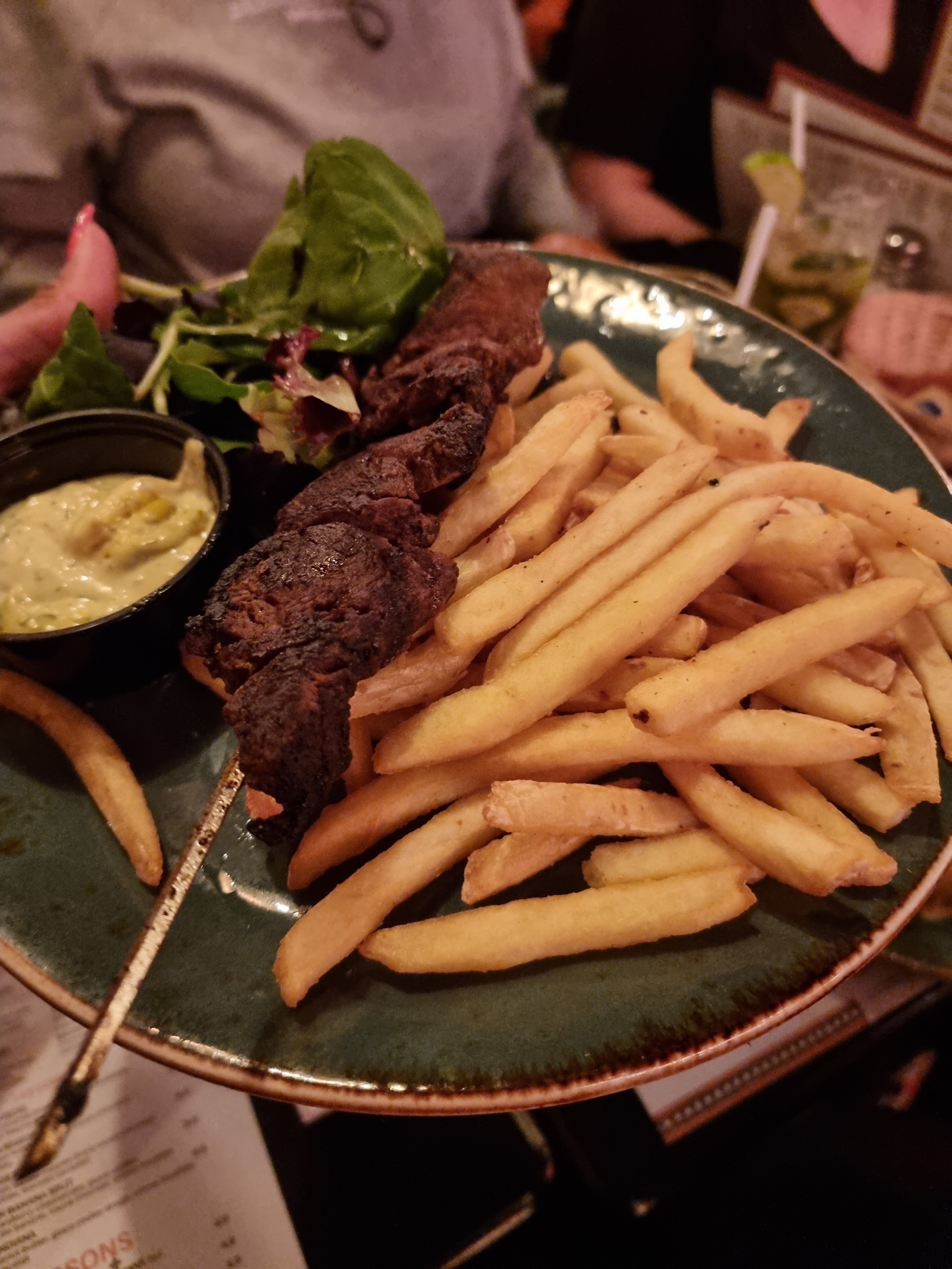 Le service était cool et les plats pas mauvais. Ils ont des frites de patate douce 😁😁😁 Et très sympa les mojitos